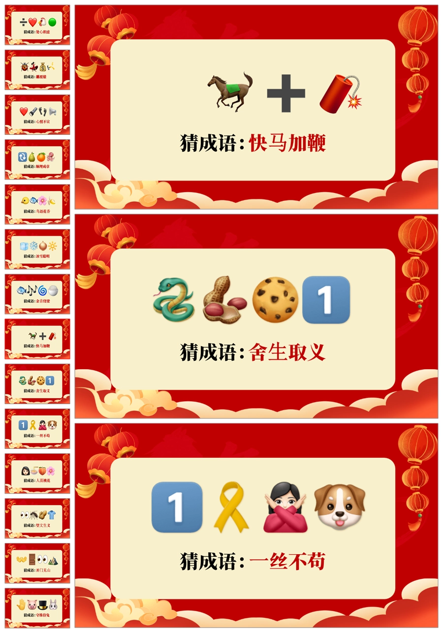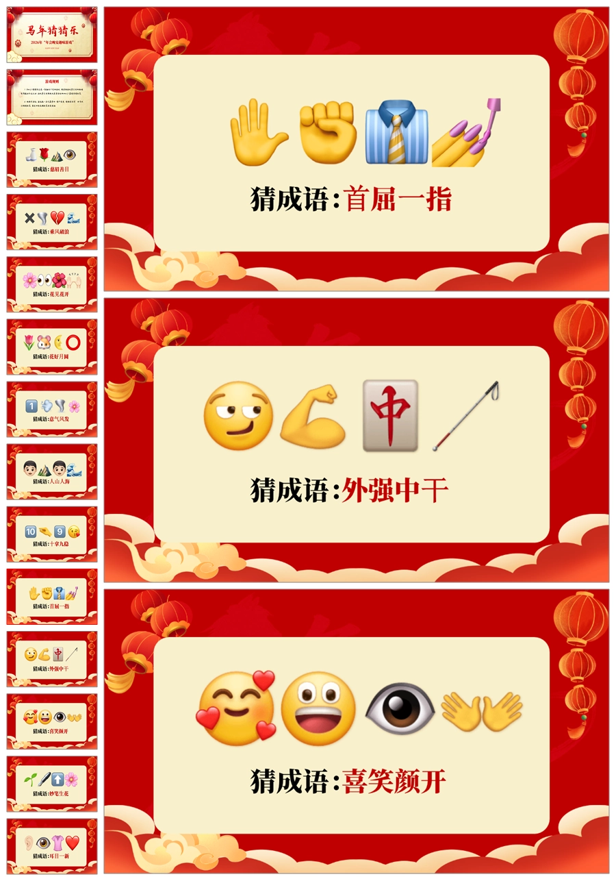 首页 小学班会 【5695】【通用】马年猜猜乐【猜成语110题】马年元旦联欢主题班会ppt课件