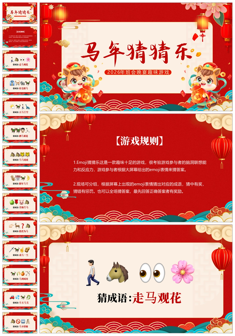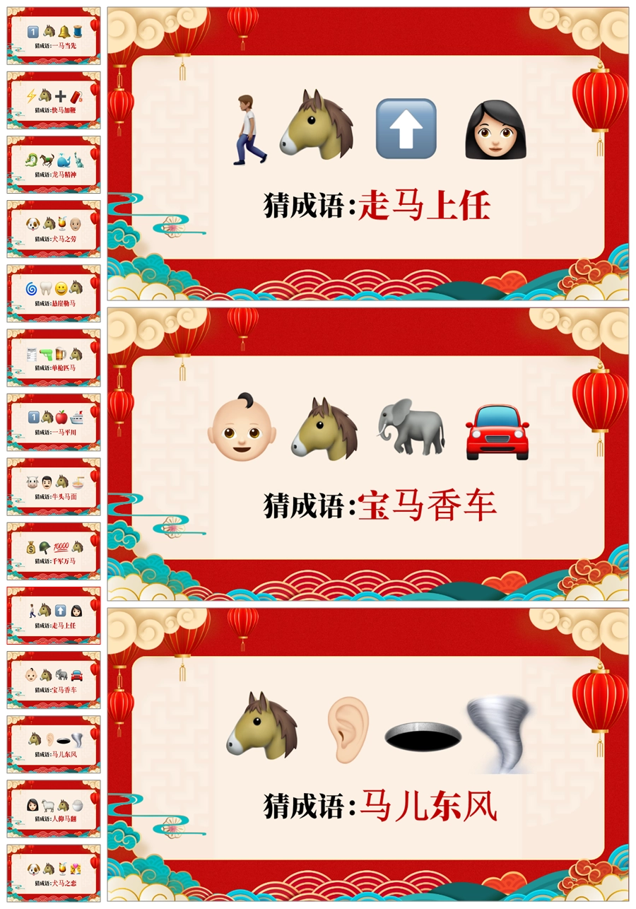 【5698】【通用】马年猜猜乐【马的成语33题】马年元旦联欢主题班会ppt课件