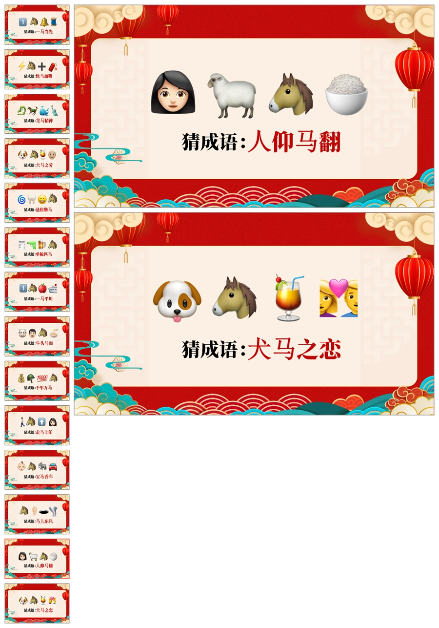 【5695】【通用】马年猜猜乐【猜成语110题】马年元旦联欢主题班会ppt课件