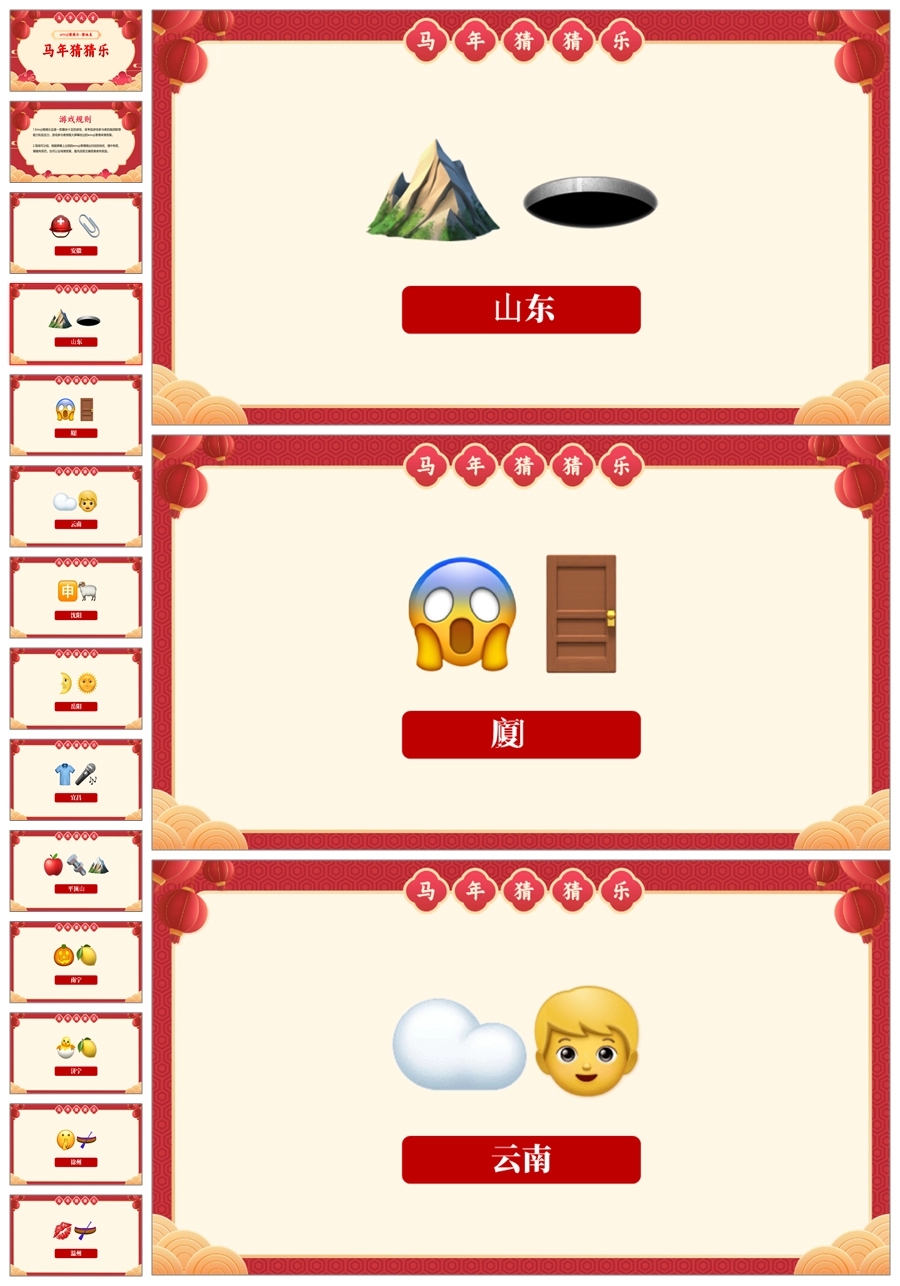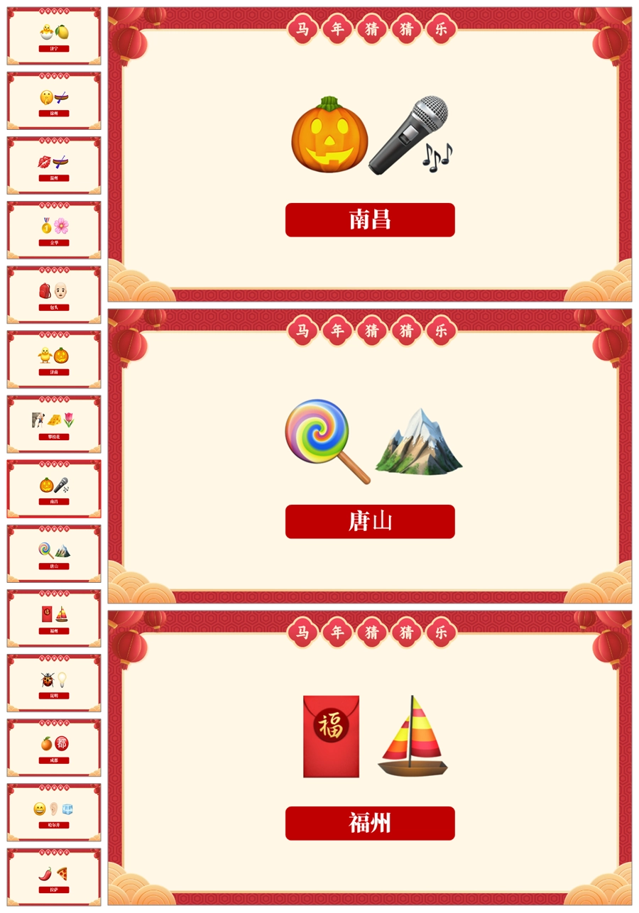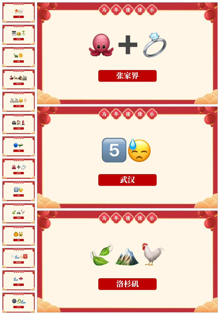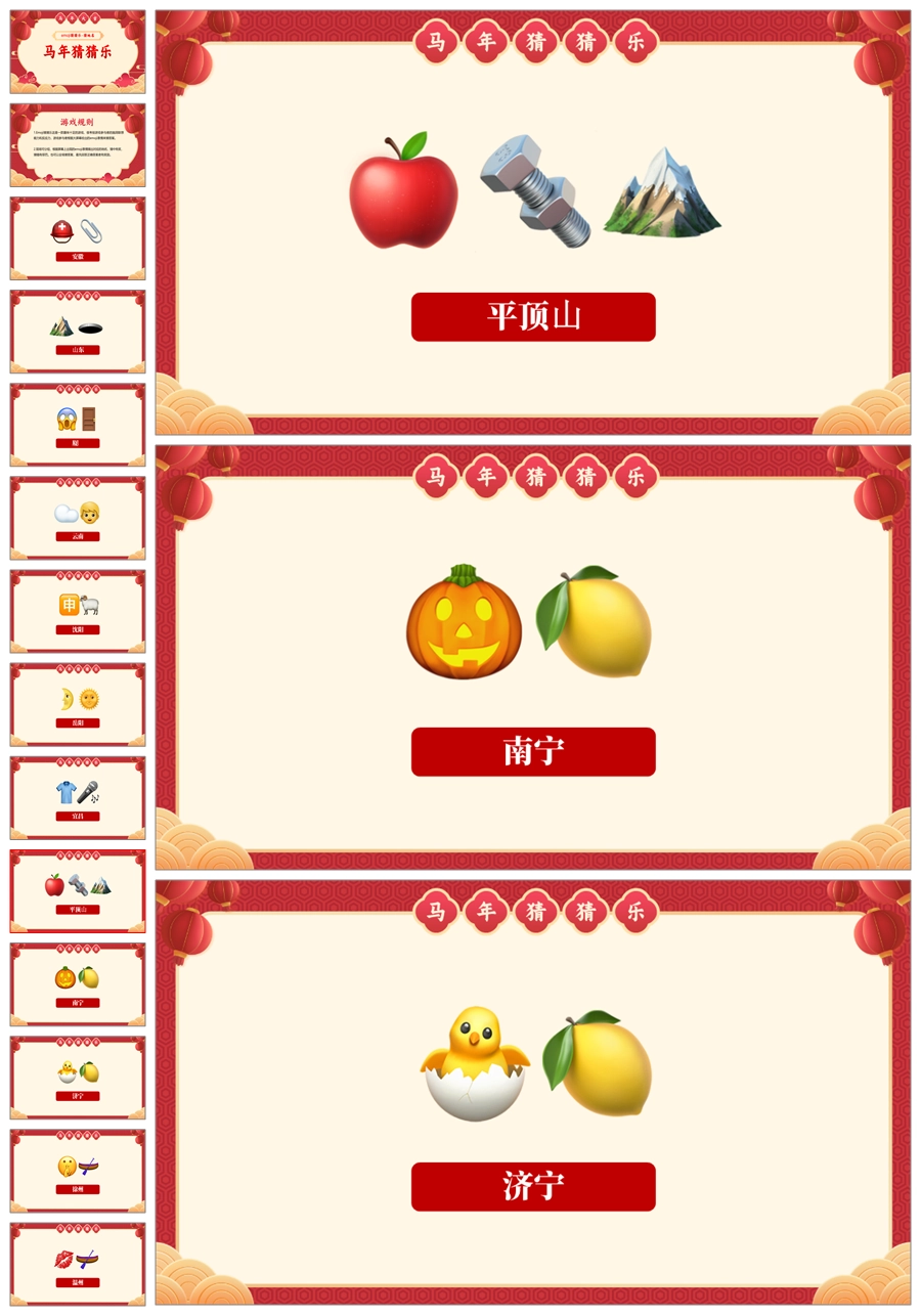 【5699】【通用】马年猜猜乐PPT(猜地名40题)马年元旦联欢主题班会ppt课件