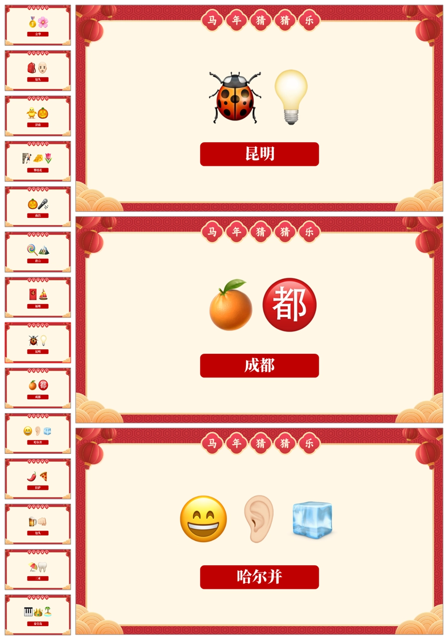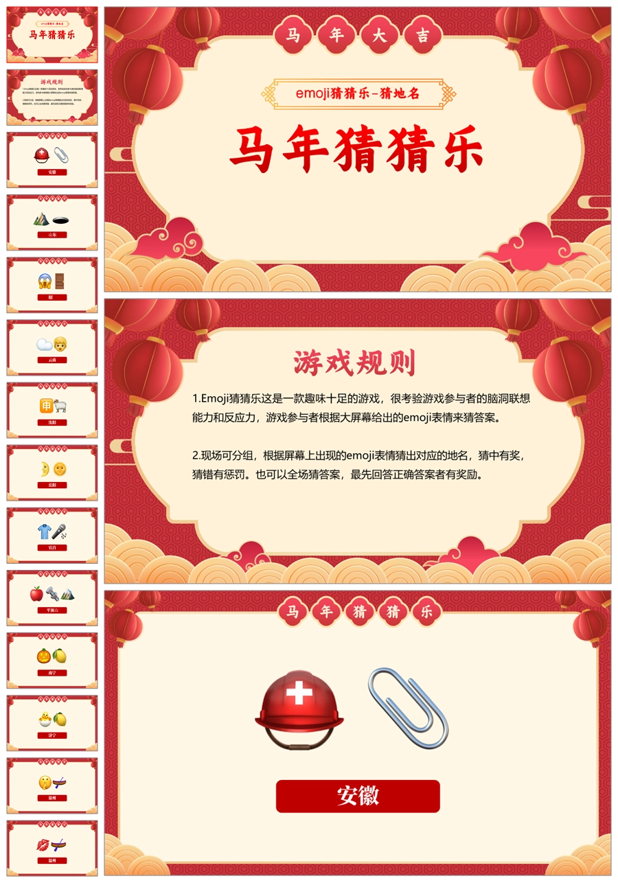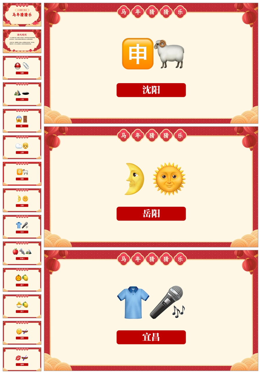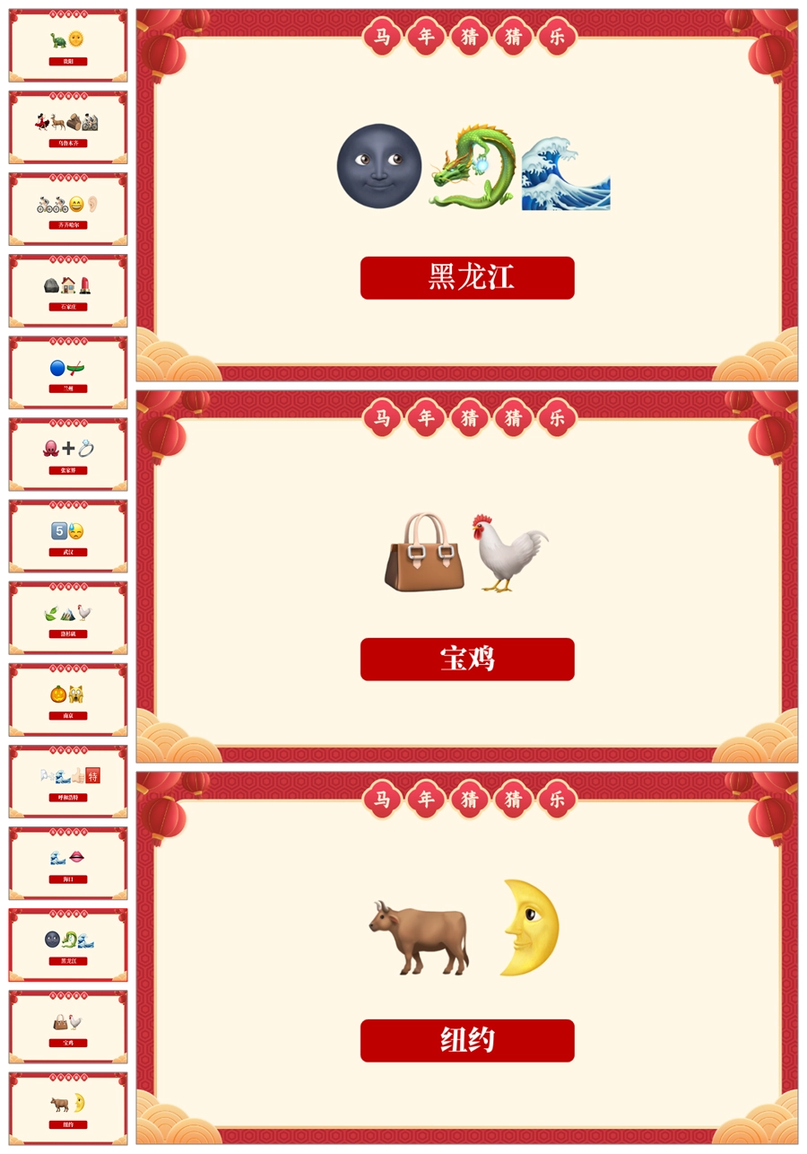 【5699】【通用】马年猜猜乐PPT(猜地名40题)马年元旦联欢主题班会ppt课件
