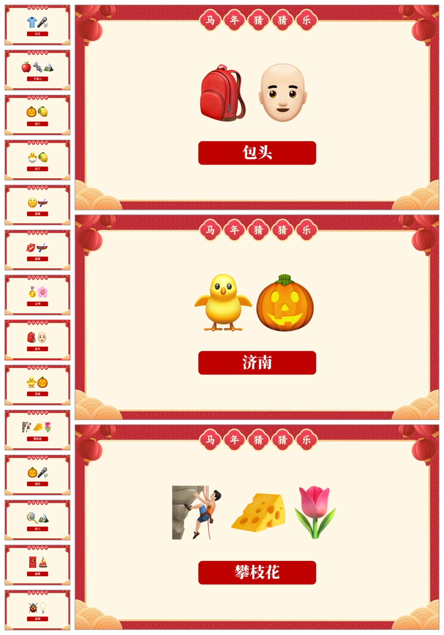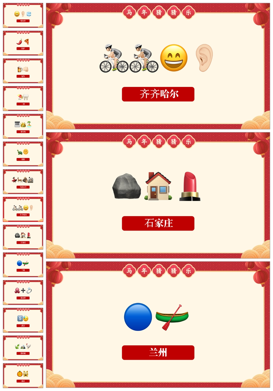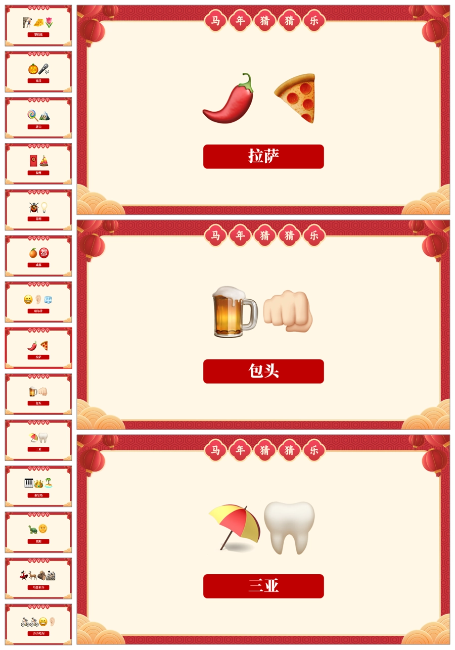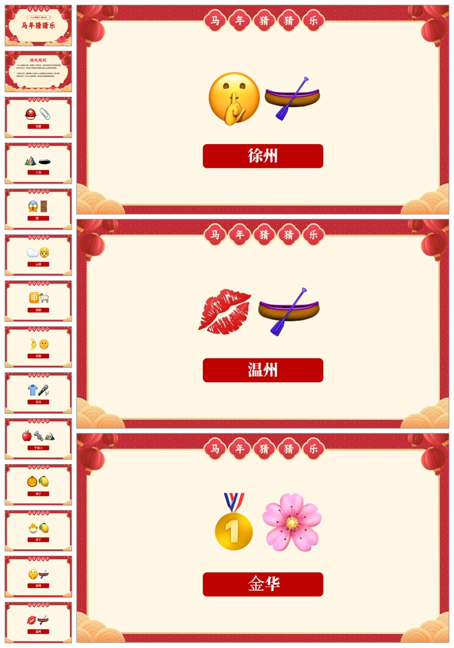 【5699】【通用】马年猜猜乐PPT(猜地名40题)马年元旦联欢主题班会ppt课件