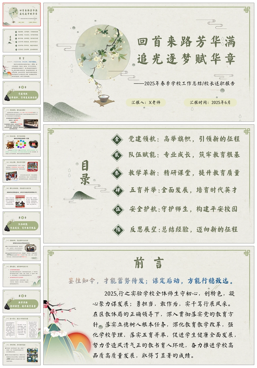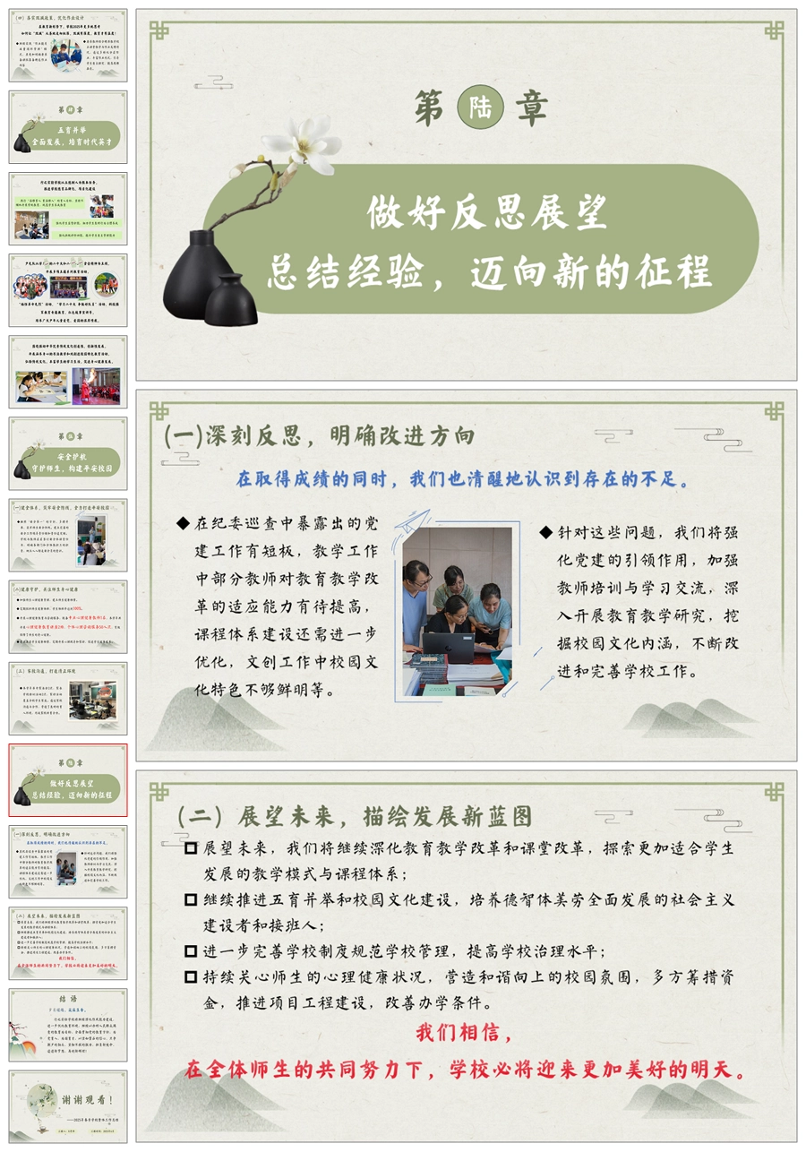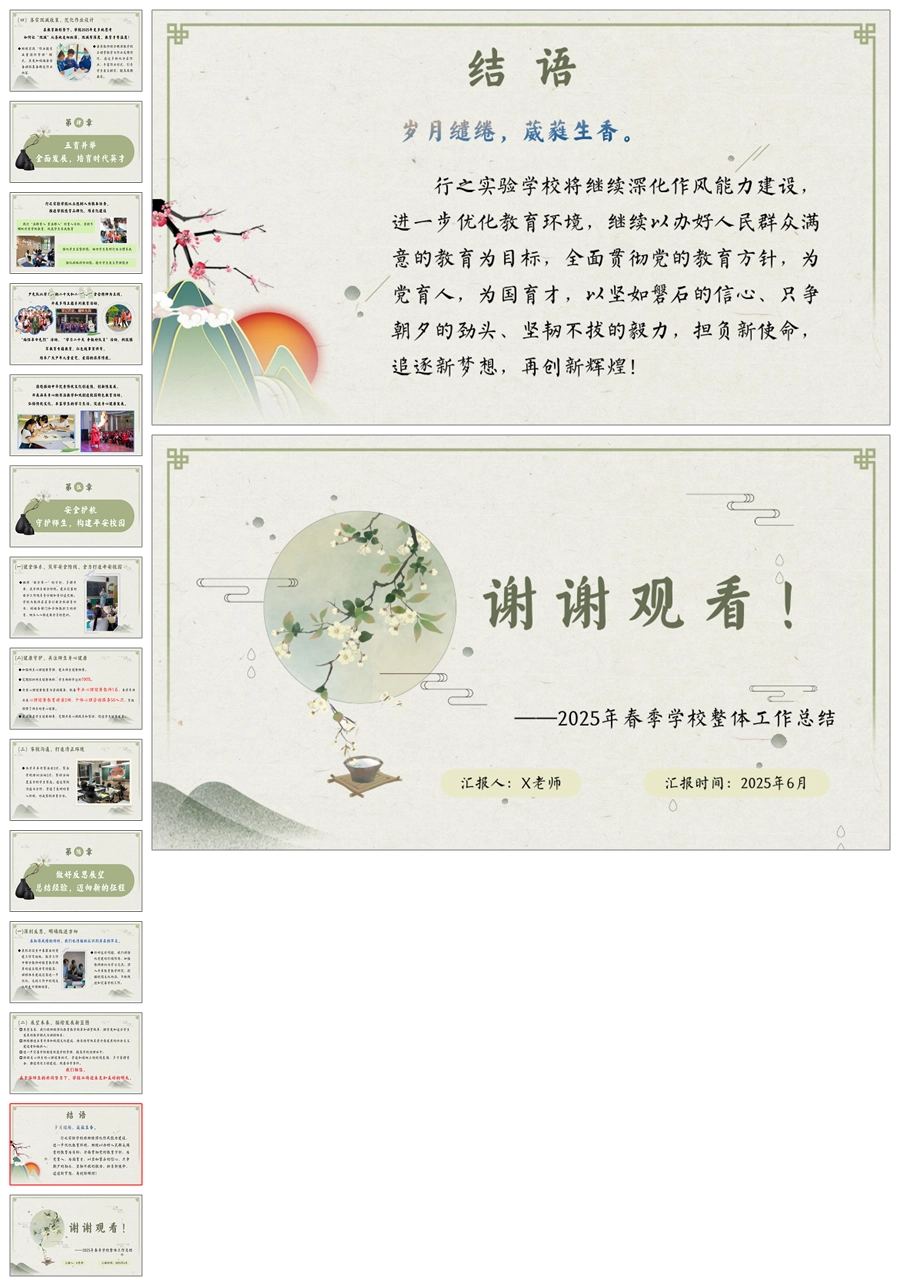 【5704】学校整体工作总结《回首来路芳华满 追光逐梦赋华章》ppt课件+发言稿