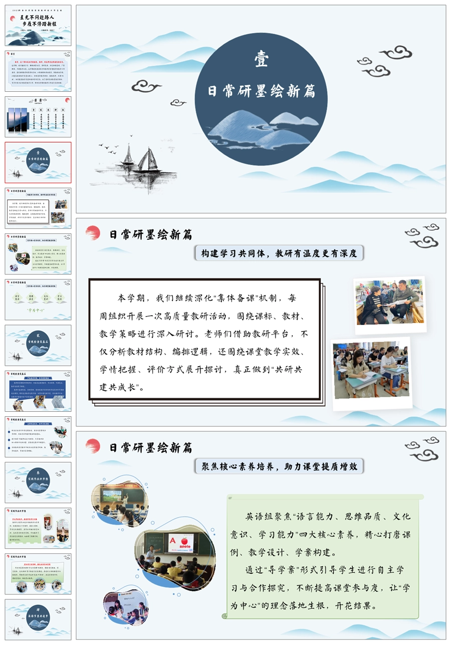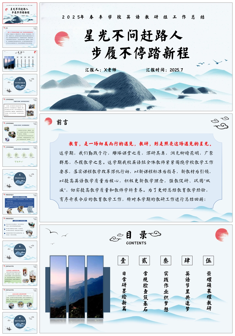 【5709】学校英语工作总结《星光不问赶路人 步履不停踏新程》ppt课件+发言稿