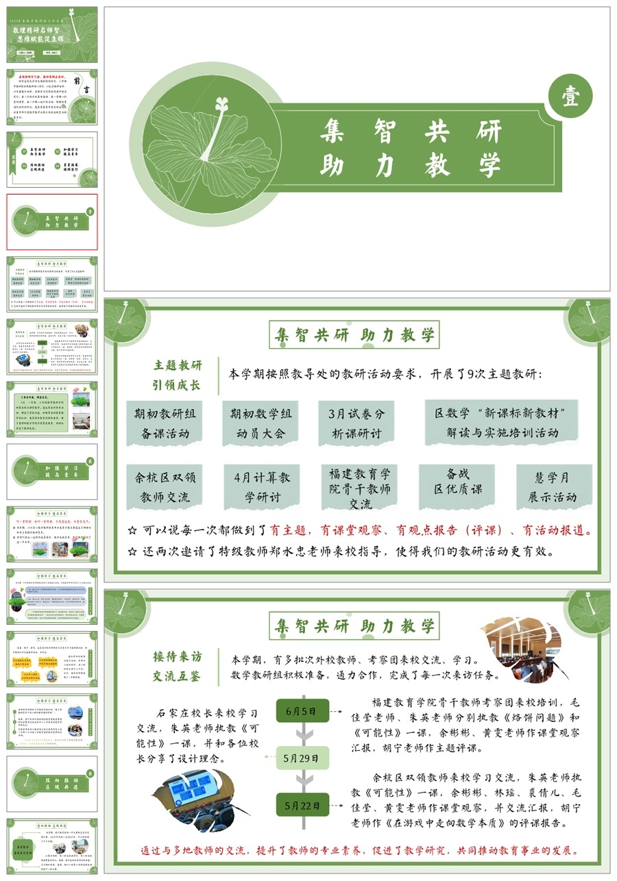 【5711】学校数学教研组工作总结《数理精研启师智 思维赋能促生辉》ppt课件+发言稿