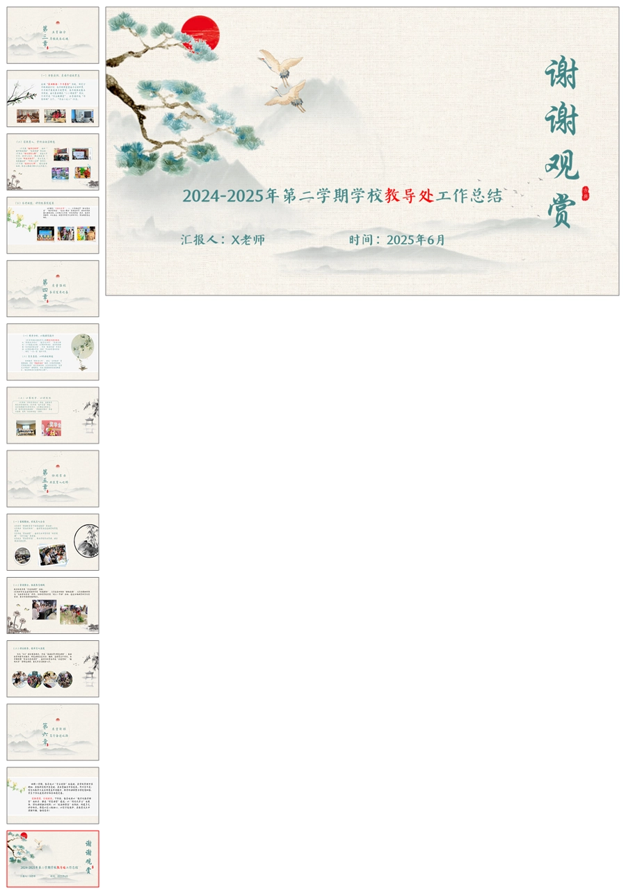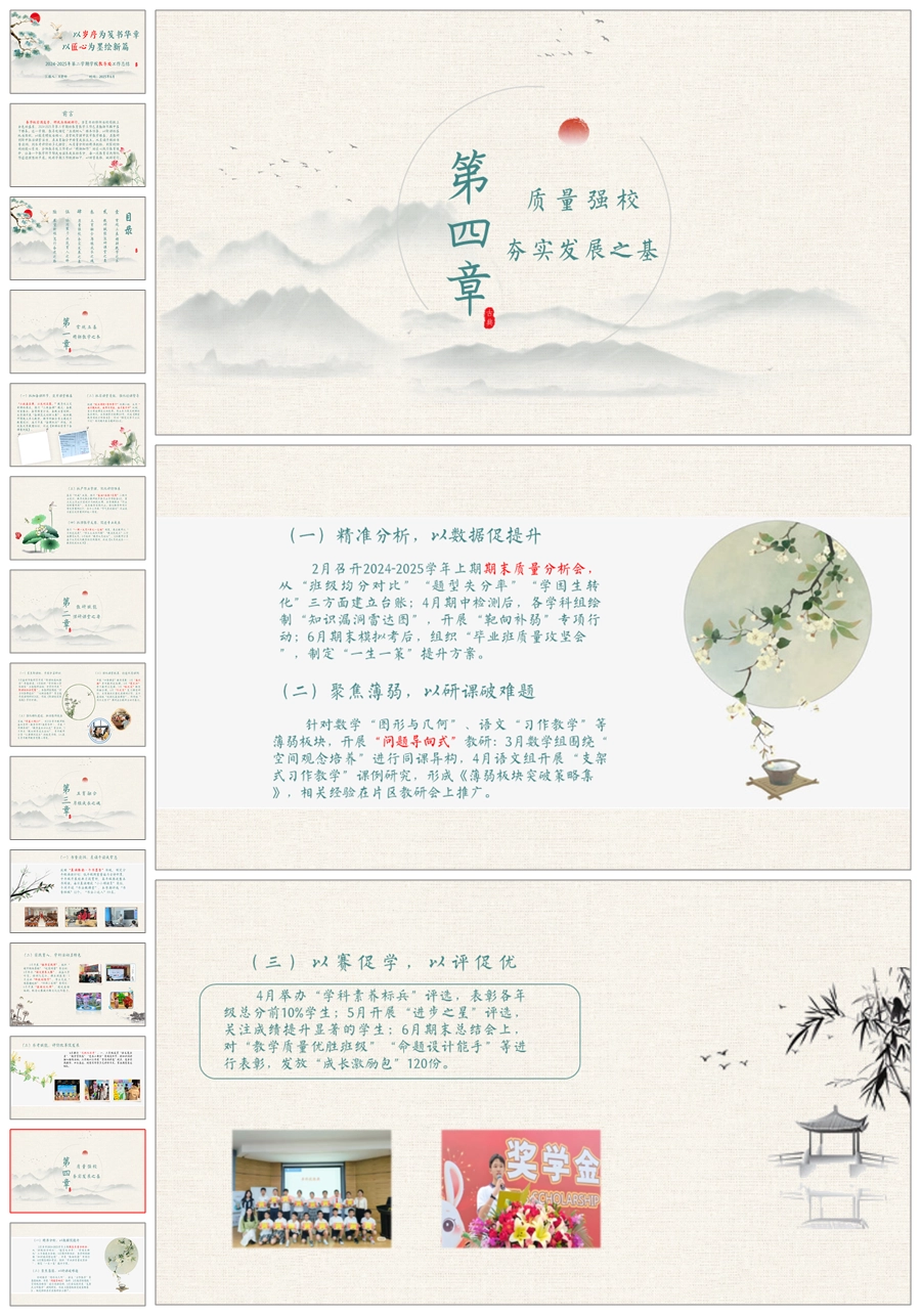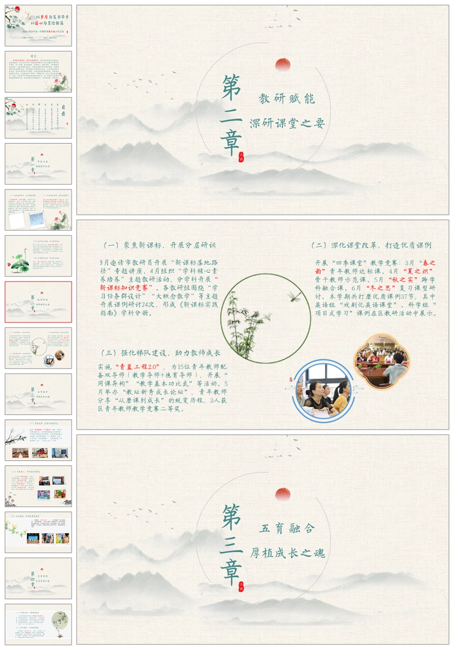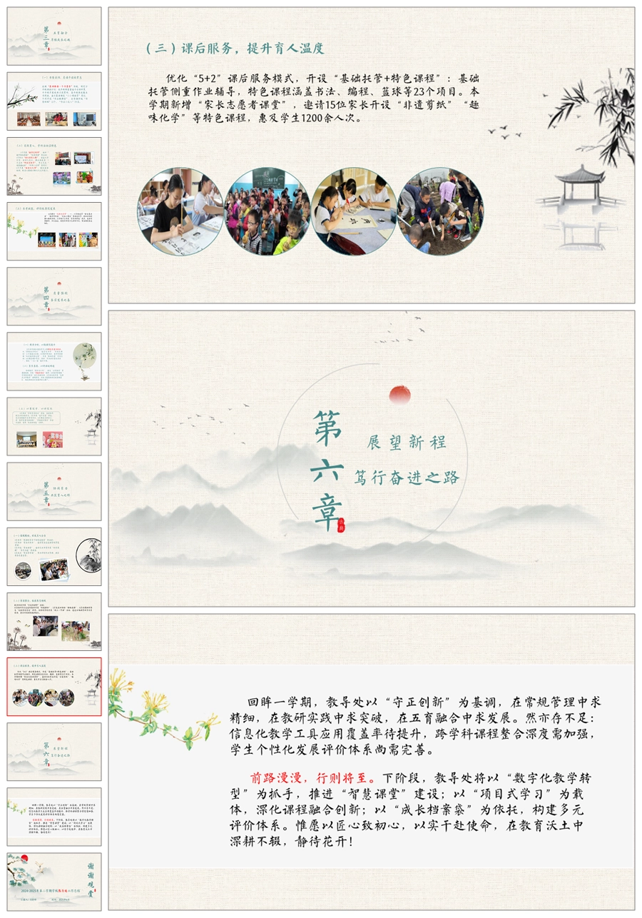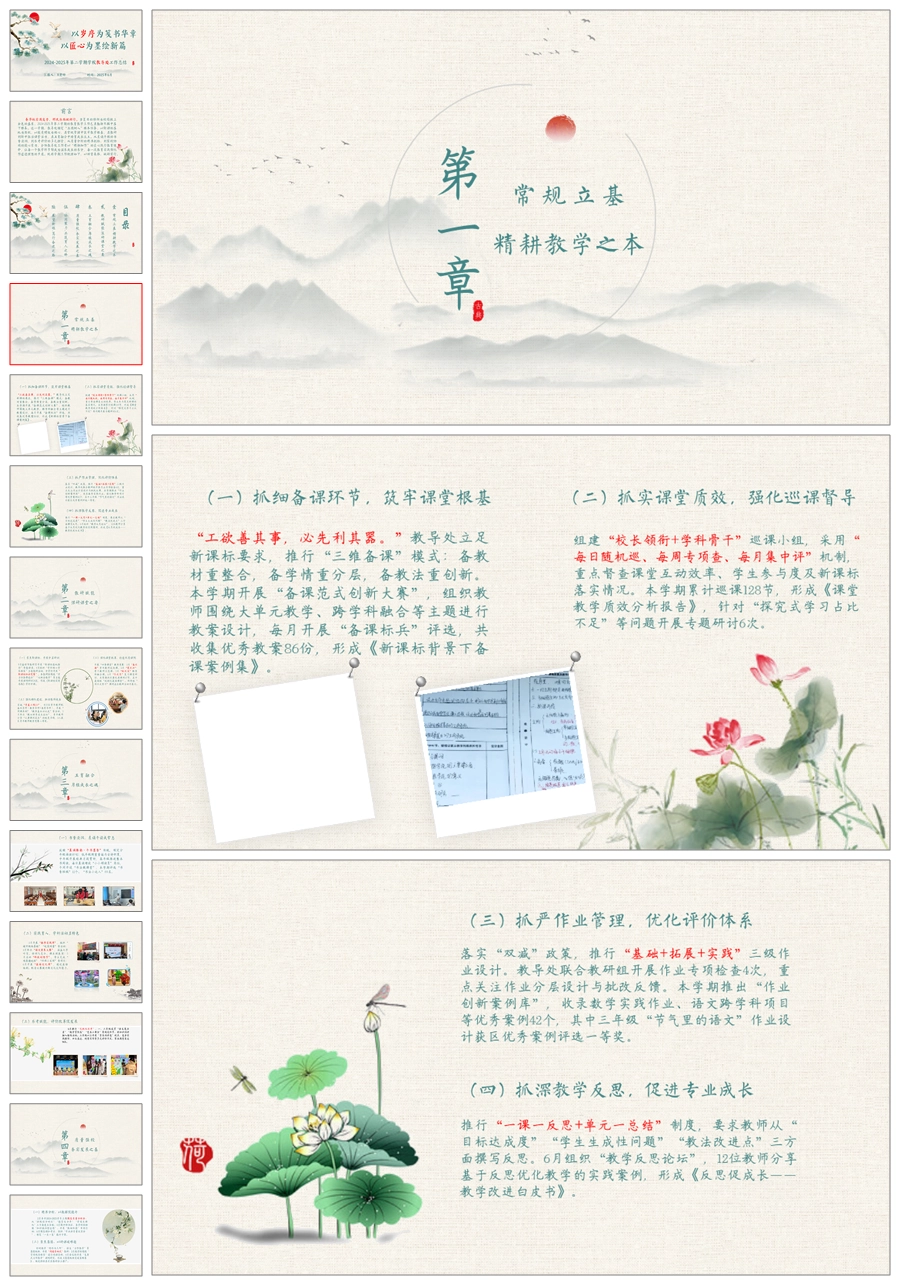 【5715】学校教导处工作总结《以岁序为笺书华章,以匠心为墨绘新篇》ppt课件+发言稿
