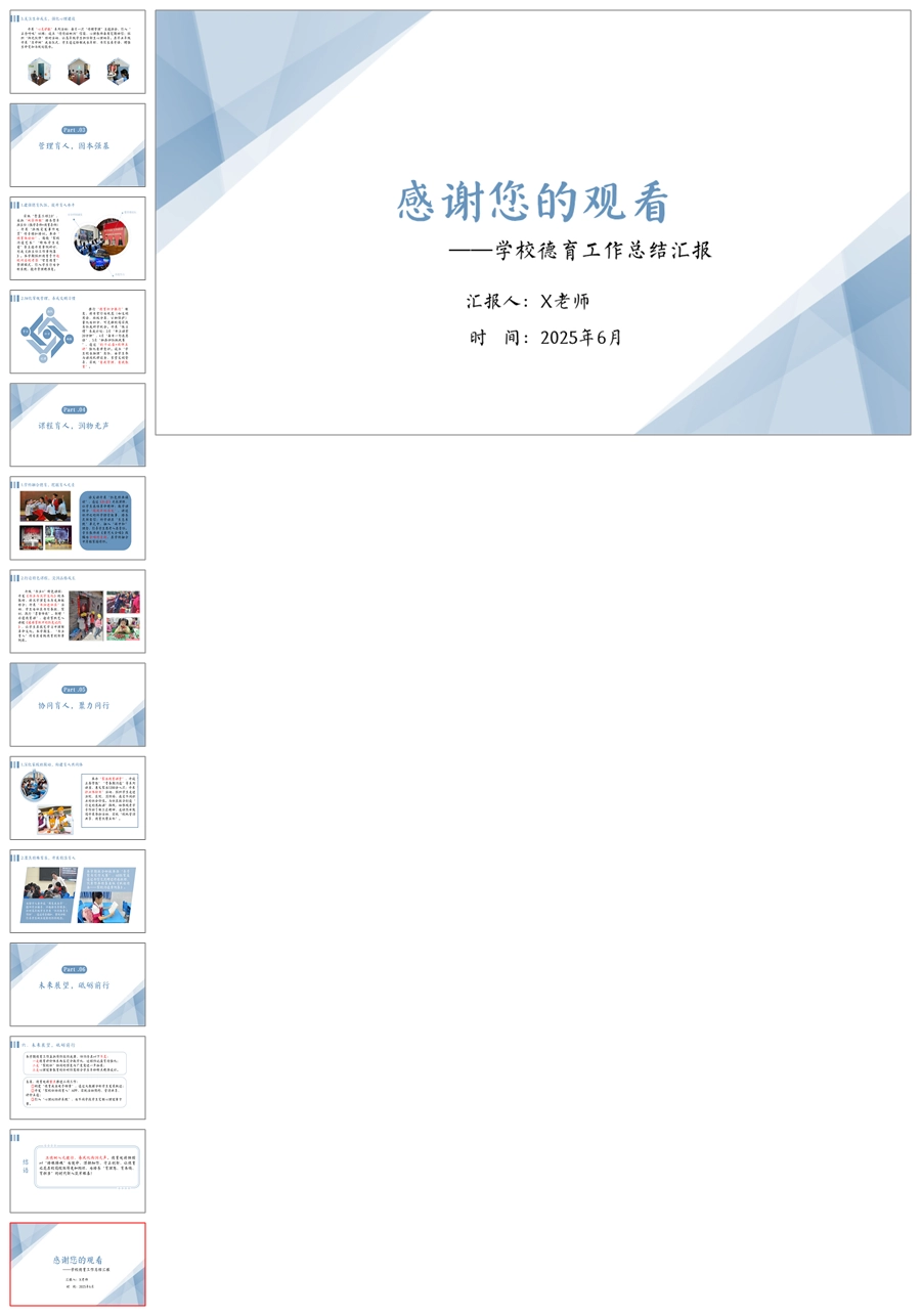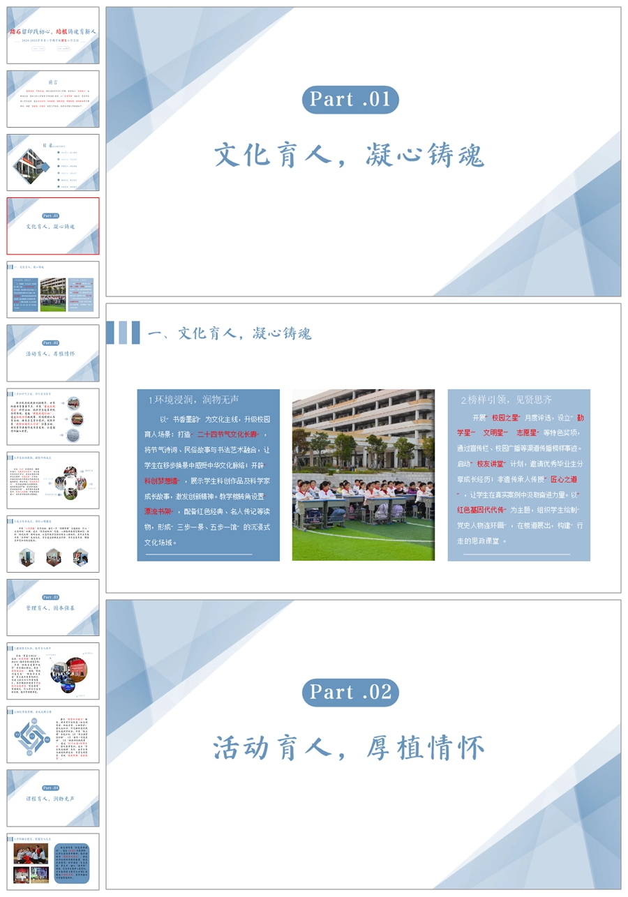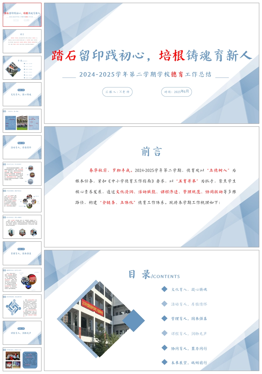【5721】学校德育工作总结《踏石留印践初心,培根铸魂育新人》ppt课件+发言稿