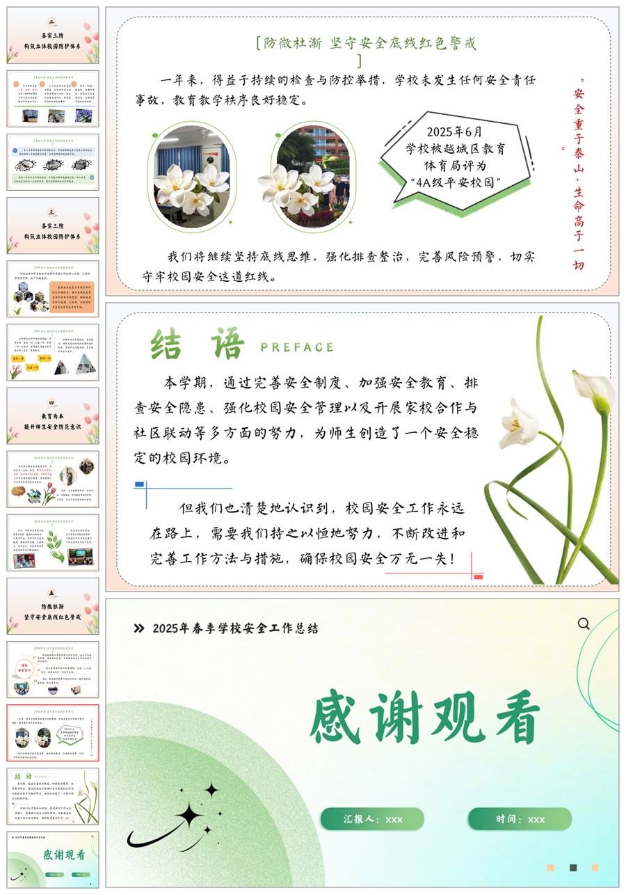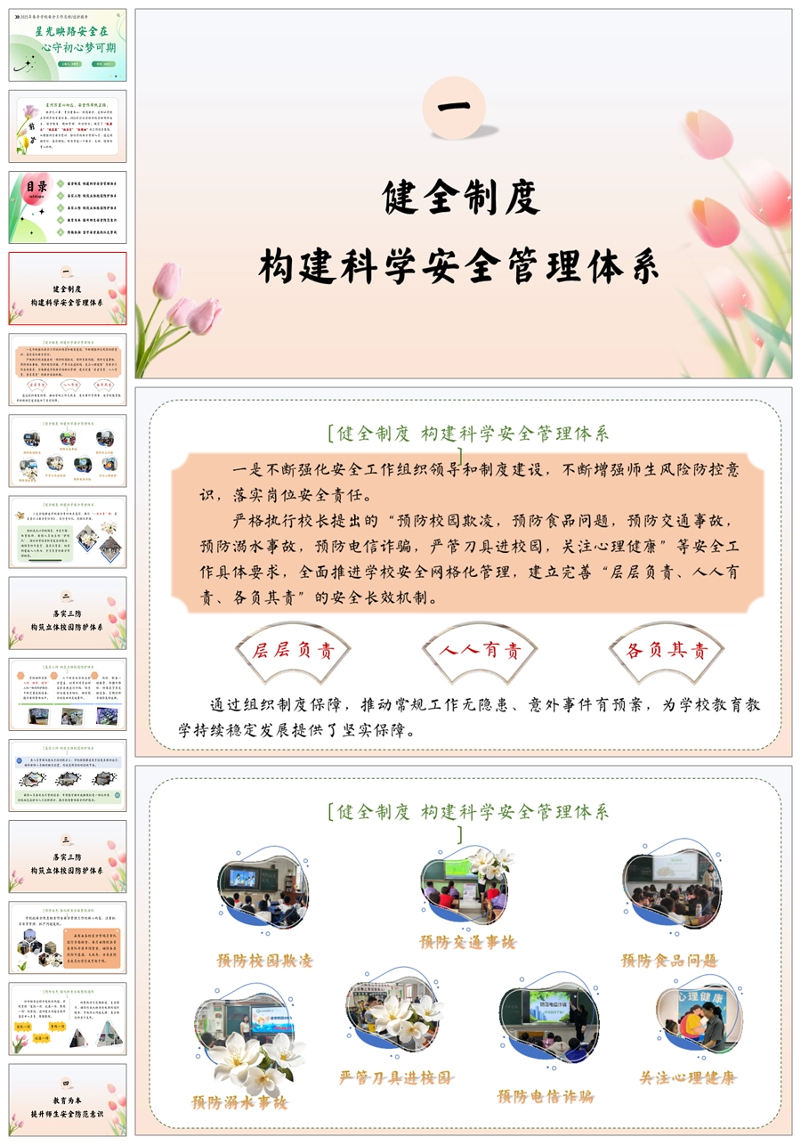 【5727】学校安全工作总结《星光映路安全在 心守初心梦可期》ppt课件+发言稿