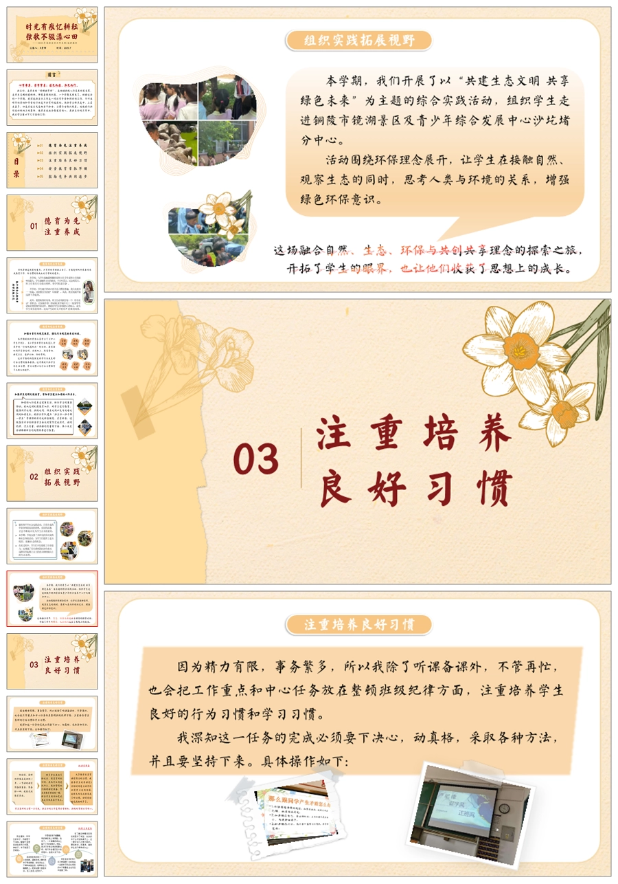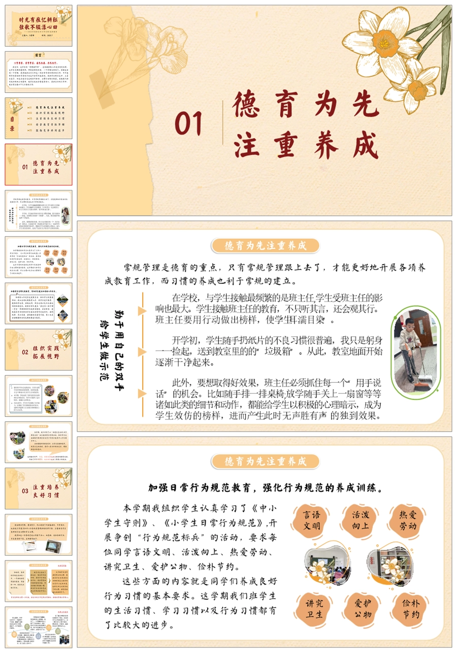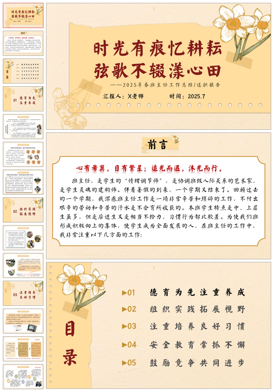 【5728】小学班主任工作总结《时光有痕忆耕耘 弦歌不辍漾心田》ppt课件+发言稿