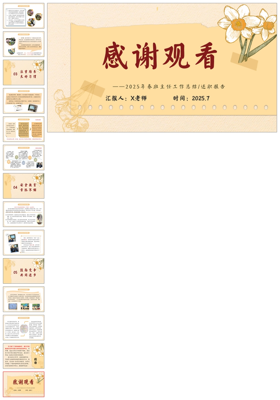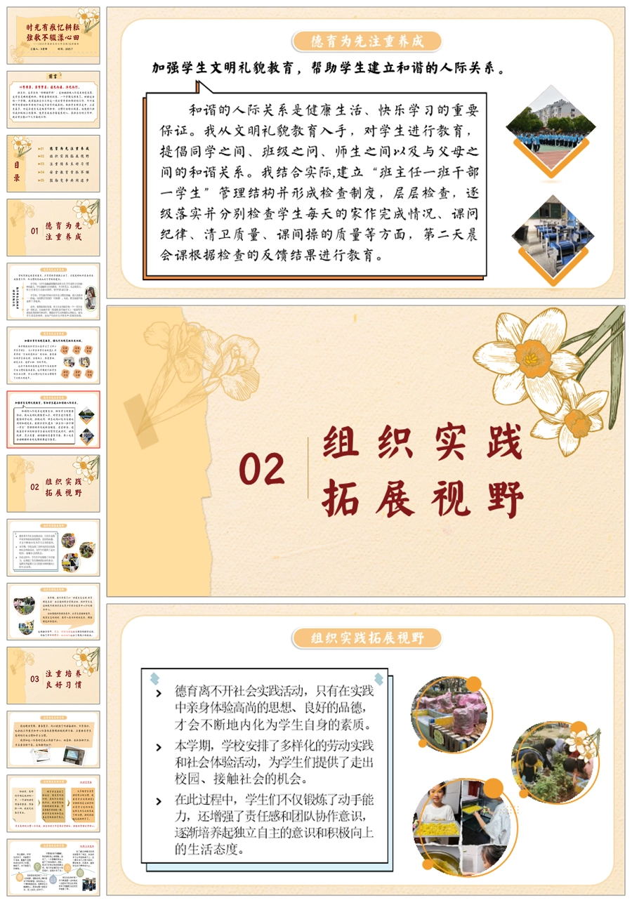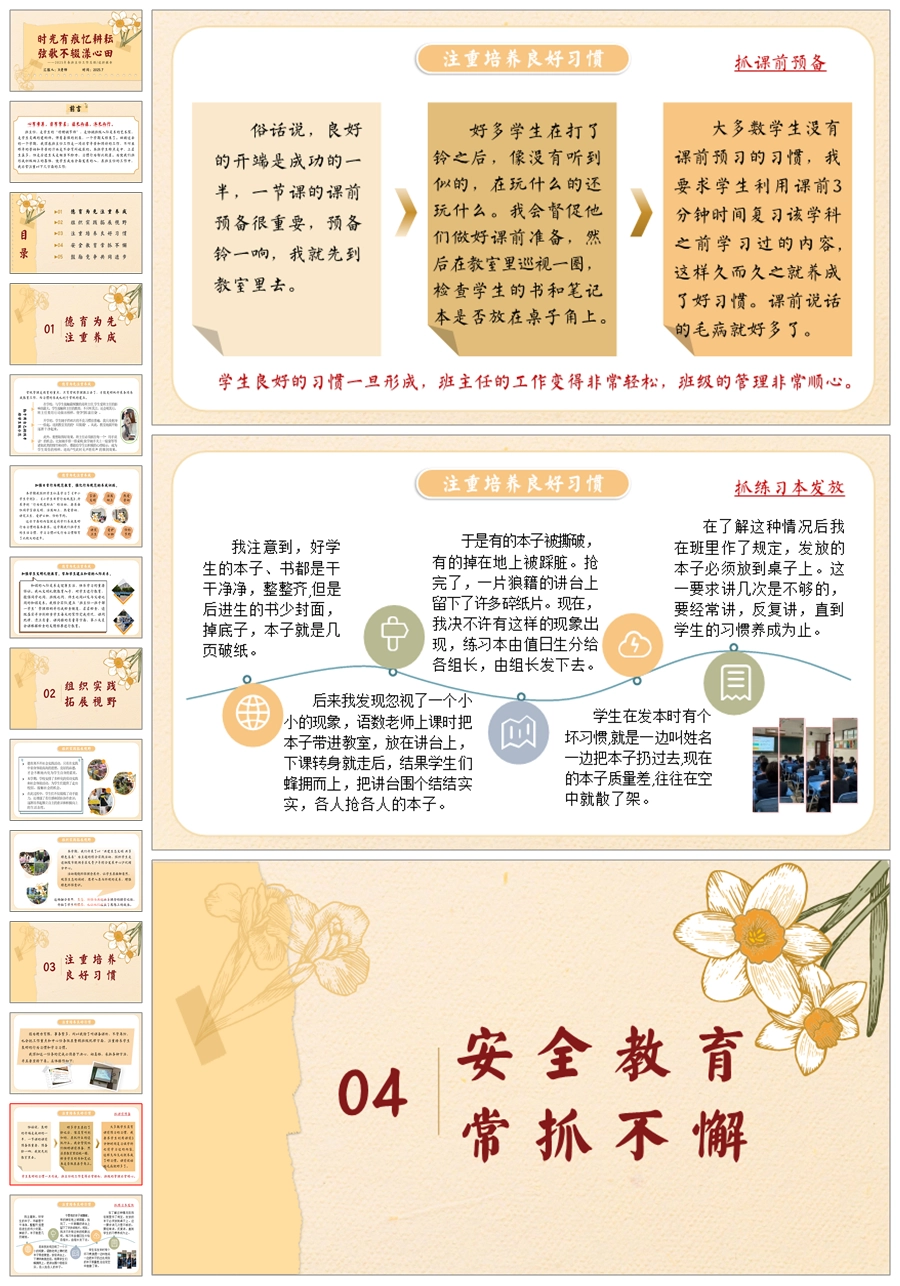 【5728】小学班主任工作总结《时光有痕忆耕耘 弦歌不辍漾心田》ppt课件+发言稿