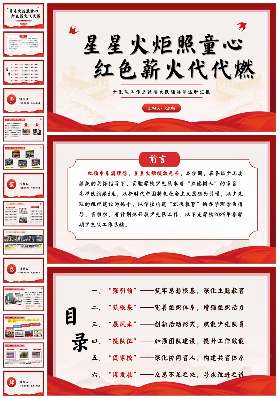 【5730】《星星火炬照童心,红色薪火代代燃》学校少先队工作总结》ppt课件+发言稿