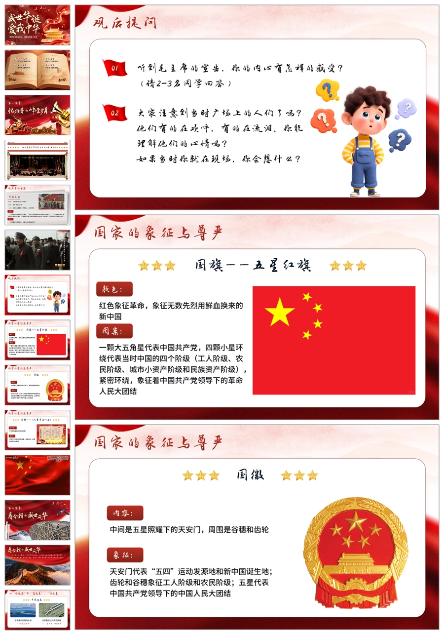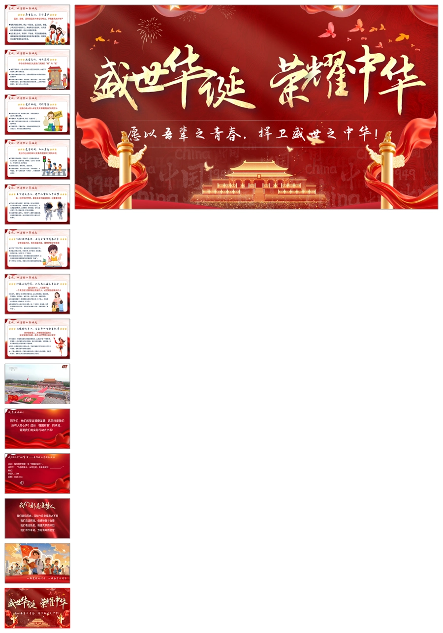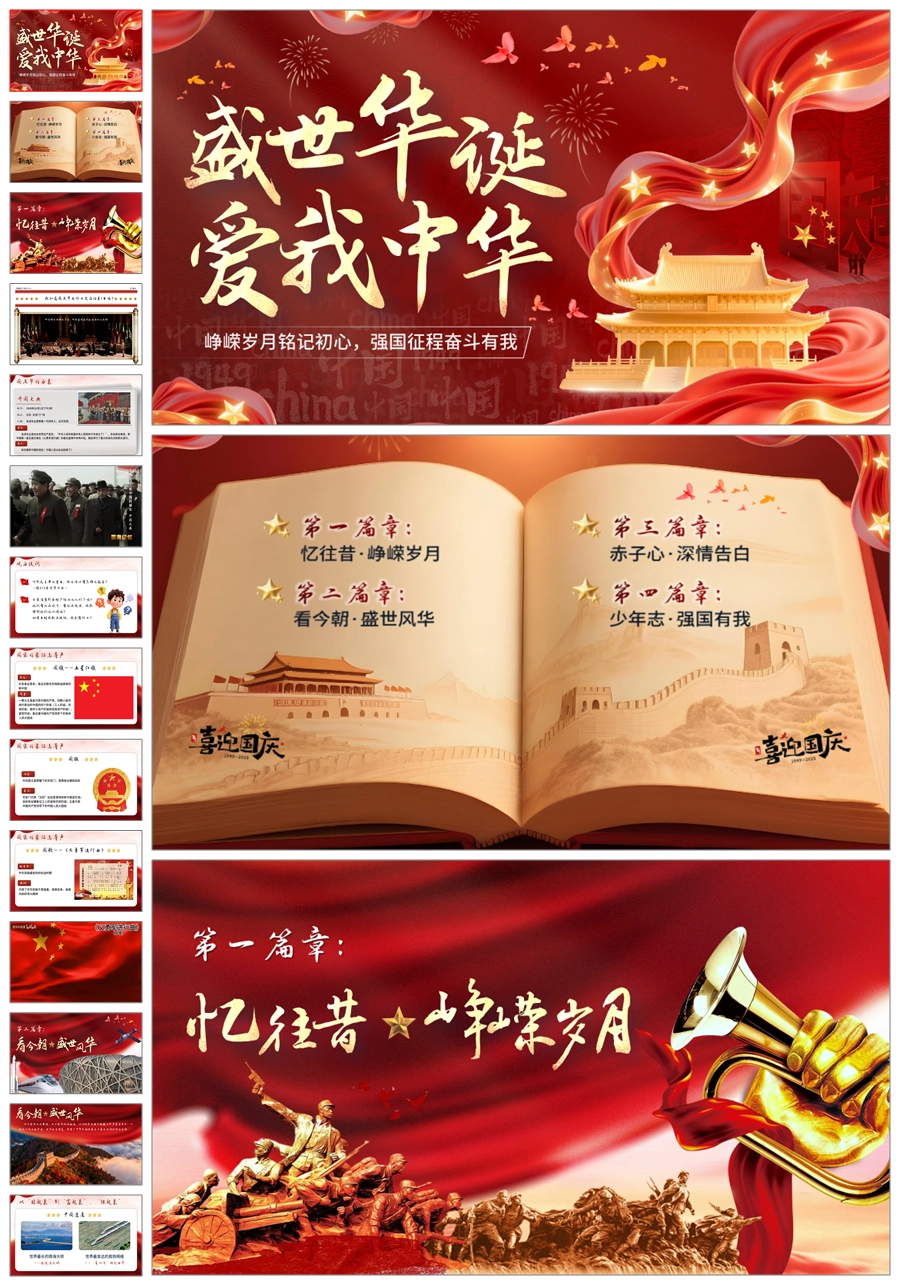 【5733】《盛世华诞,爱我中华》爱国主义教育主题班会PPT课件+视频+教案+发言稿