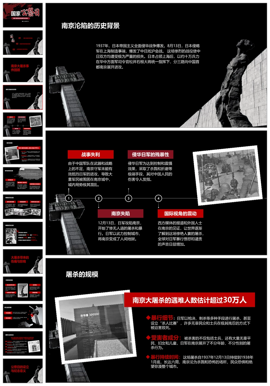 【5736】国家公祭日《南京大屠杀的历史回顾与纪念意义》爱国主义教育主题班会PPT课件+教案