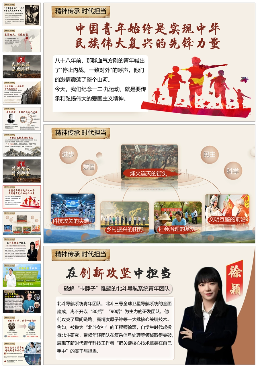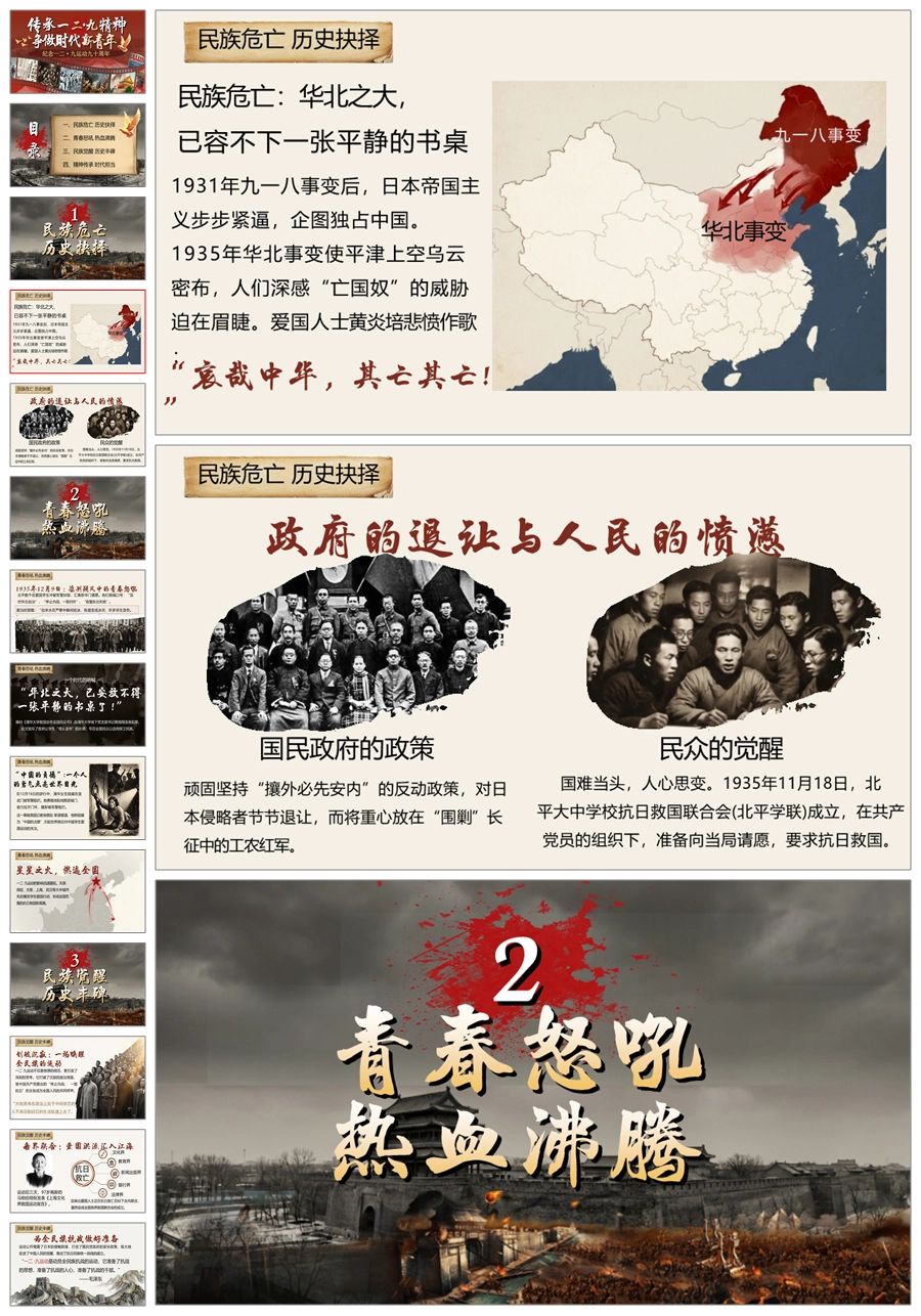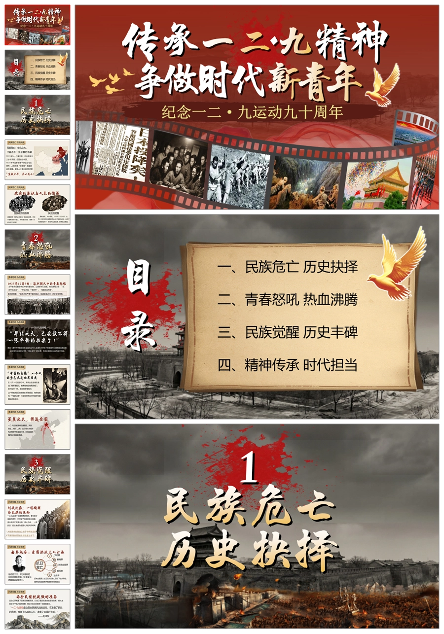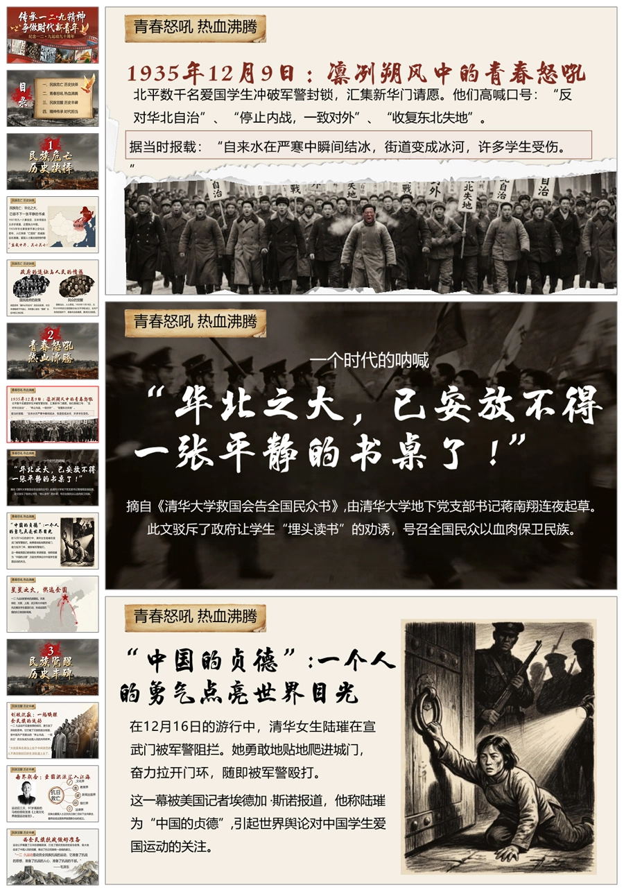 【5739】《传承一二九精神,争做时代新青年》爱国教育主题班会ppt课件+视频+发言稿