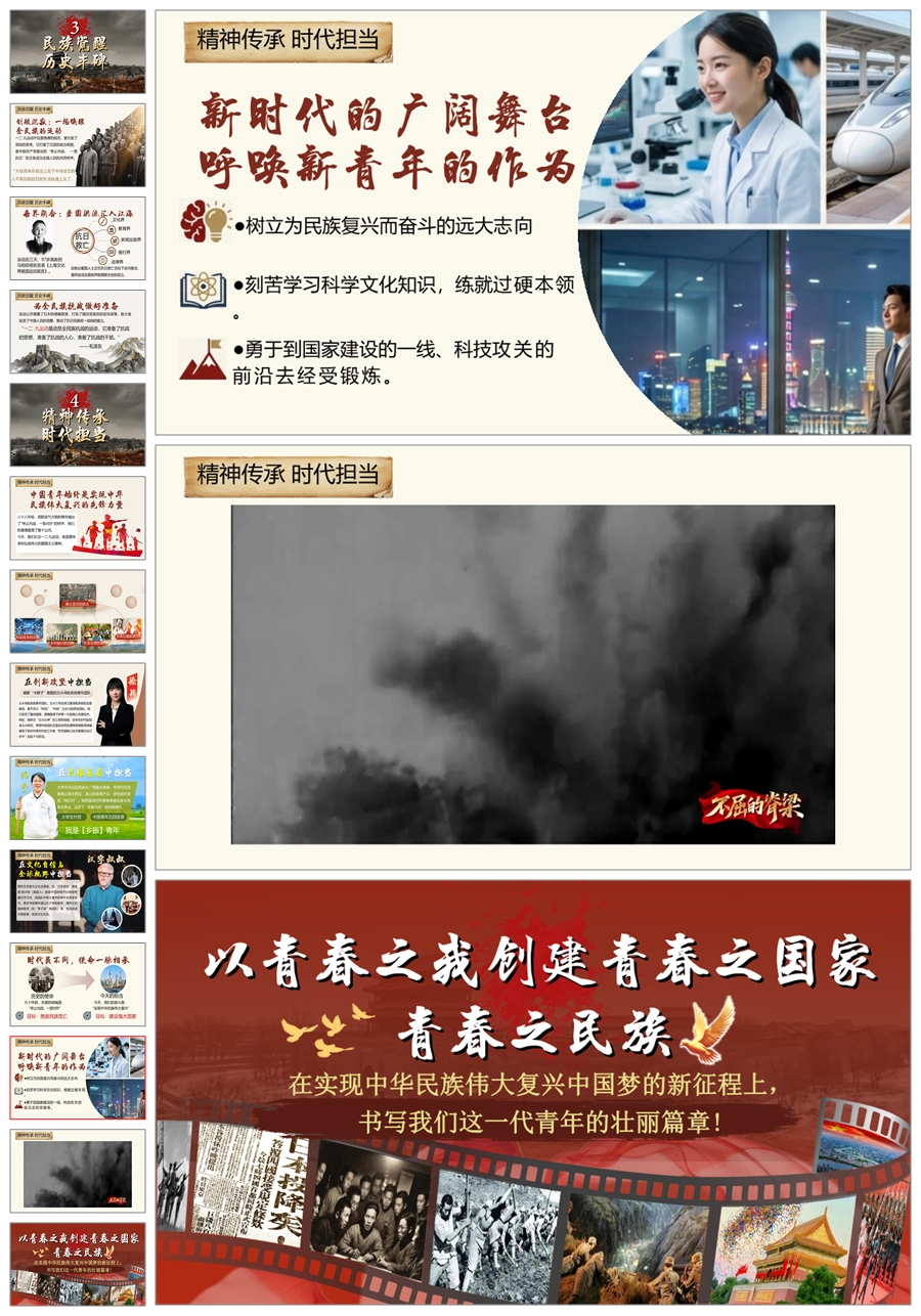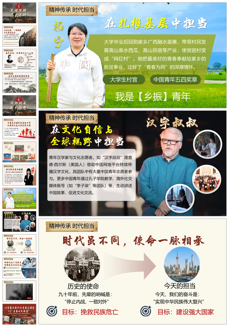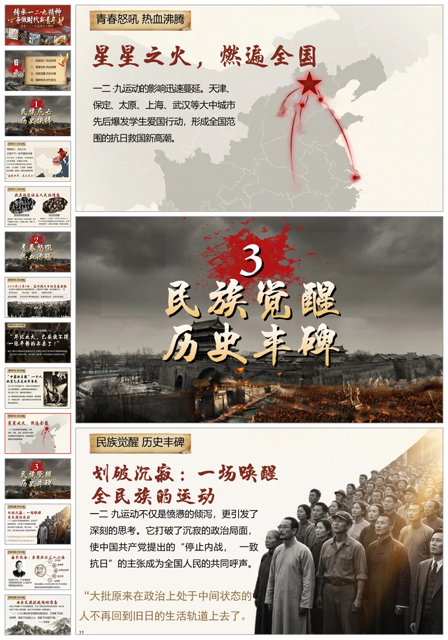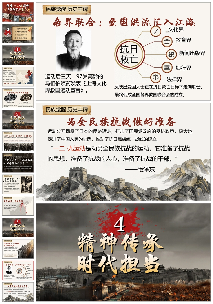 【5739】《传承一二九精神,争做时代新青年》爱国教育主题班会ppt课件+视频+发言稿