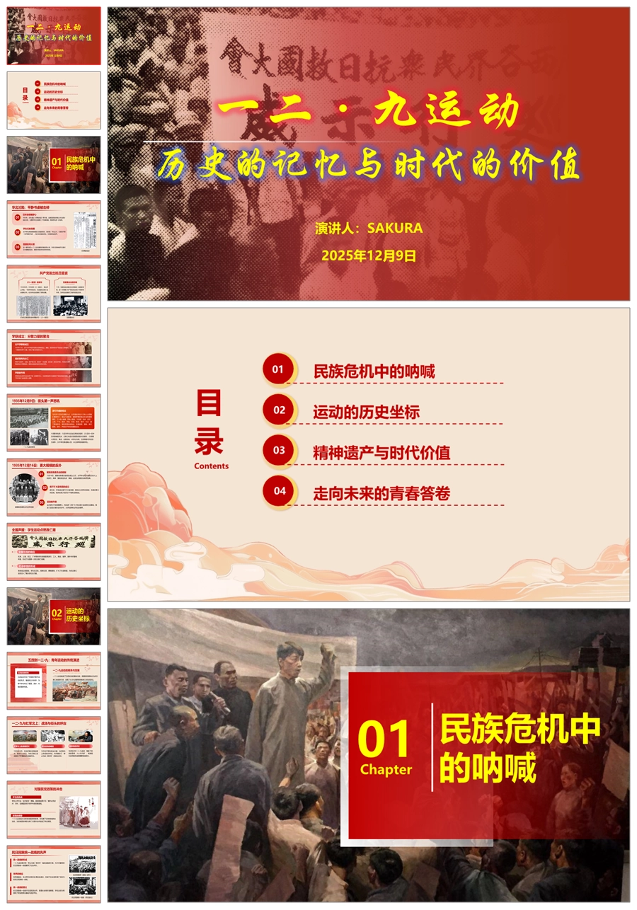 【5740】《一二九运动:历史的记忆与时代的价值》爱国教育主题班会ppt课件+发言稿