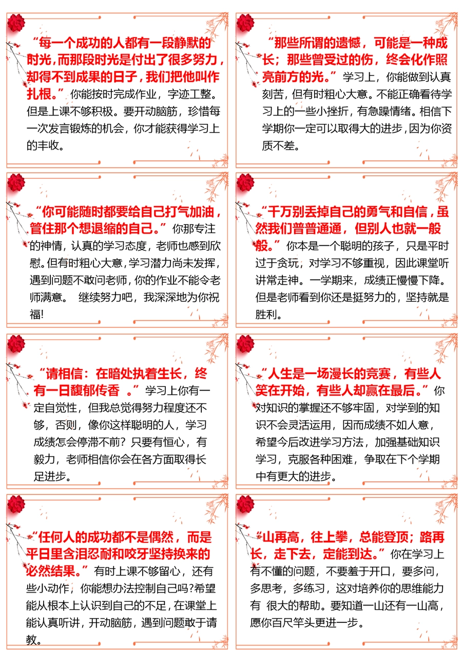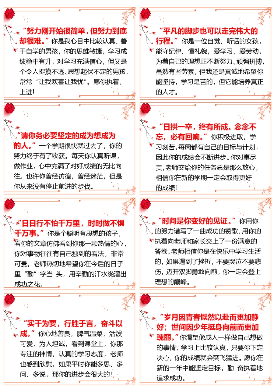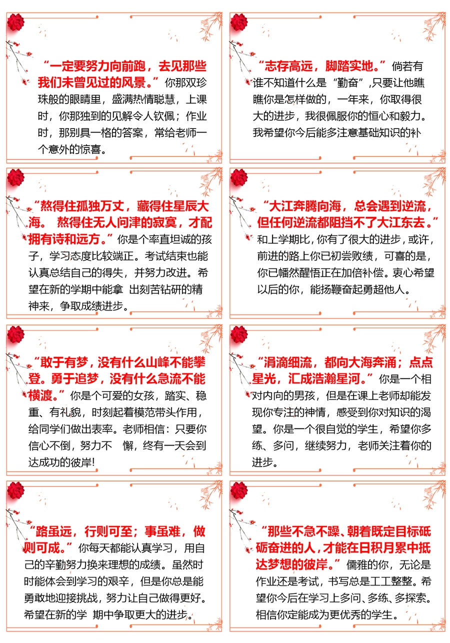 【期末学生评语】【人民日报】72则金句期末评语-每页8张