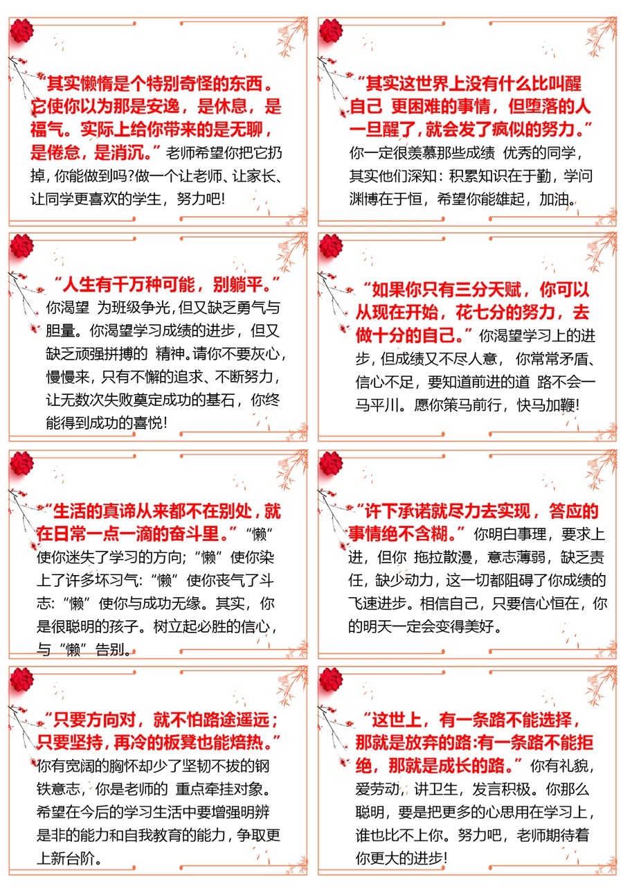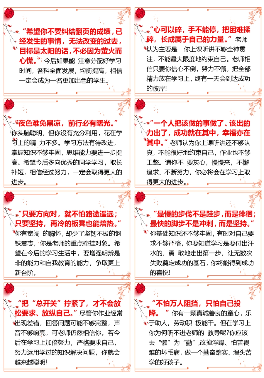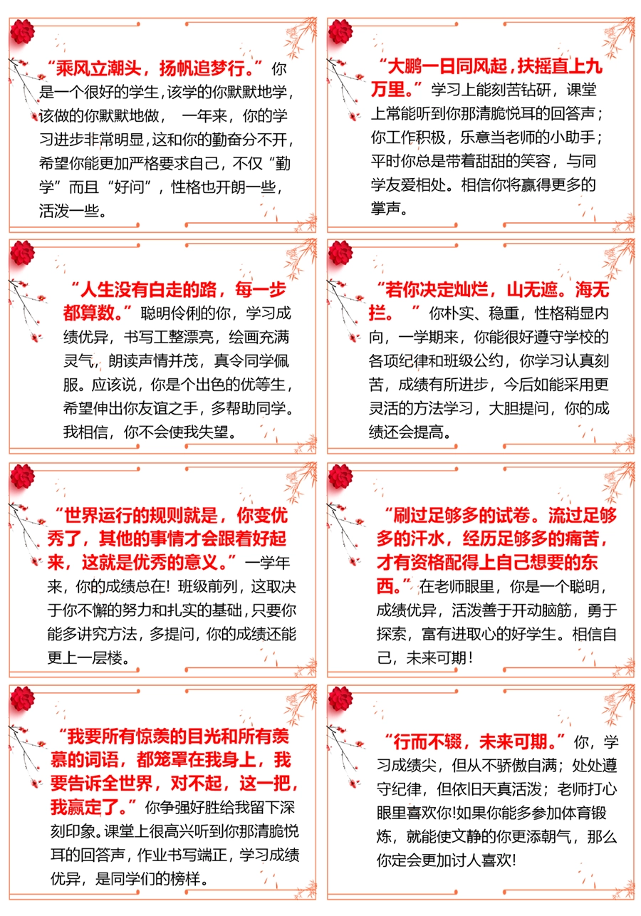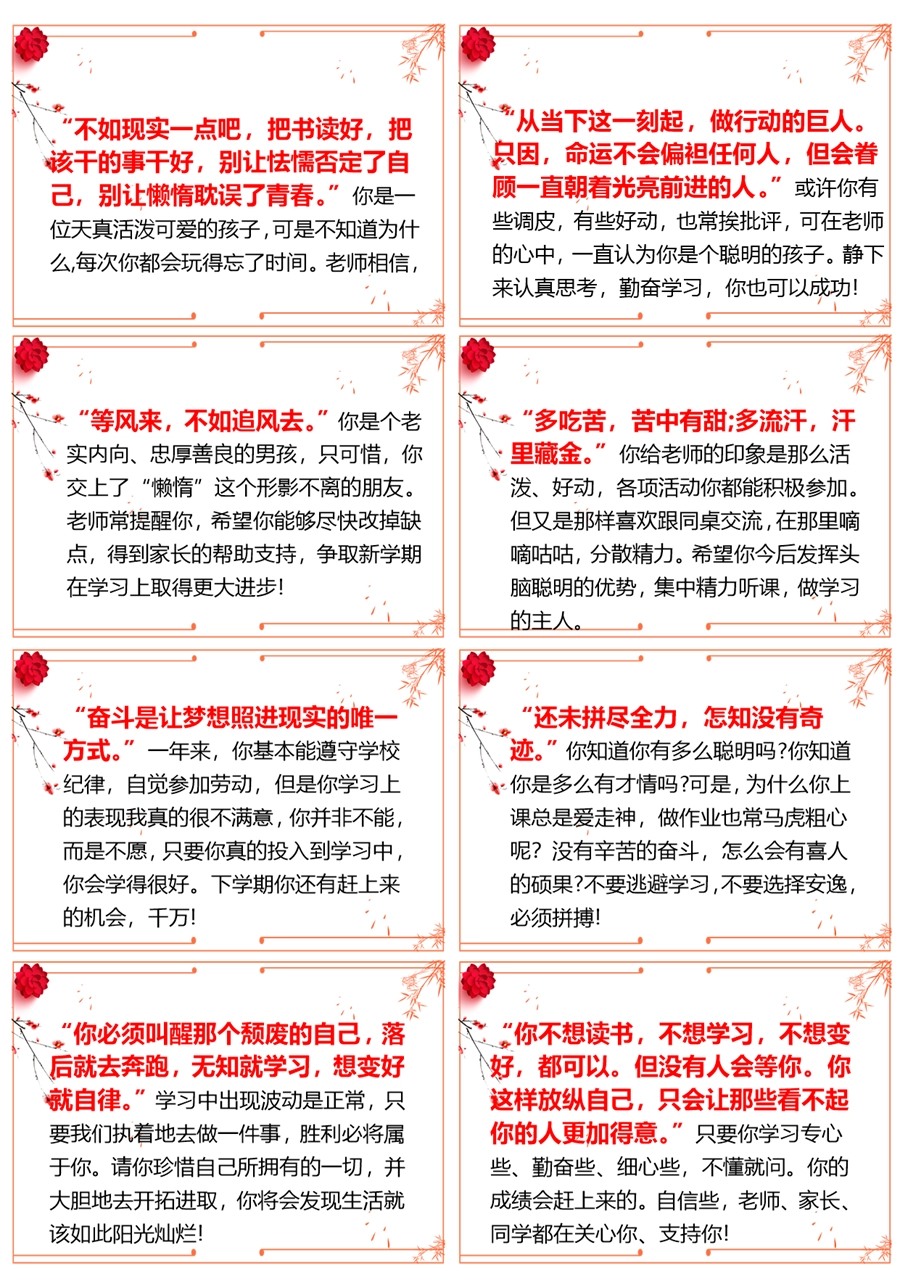【期末学生评语】【人民日报】72则金句期末评语-每页8张