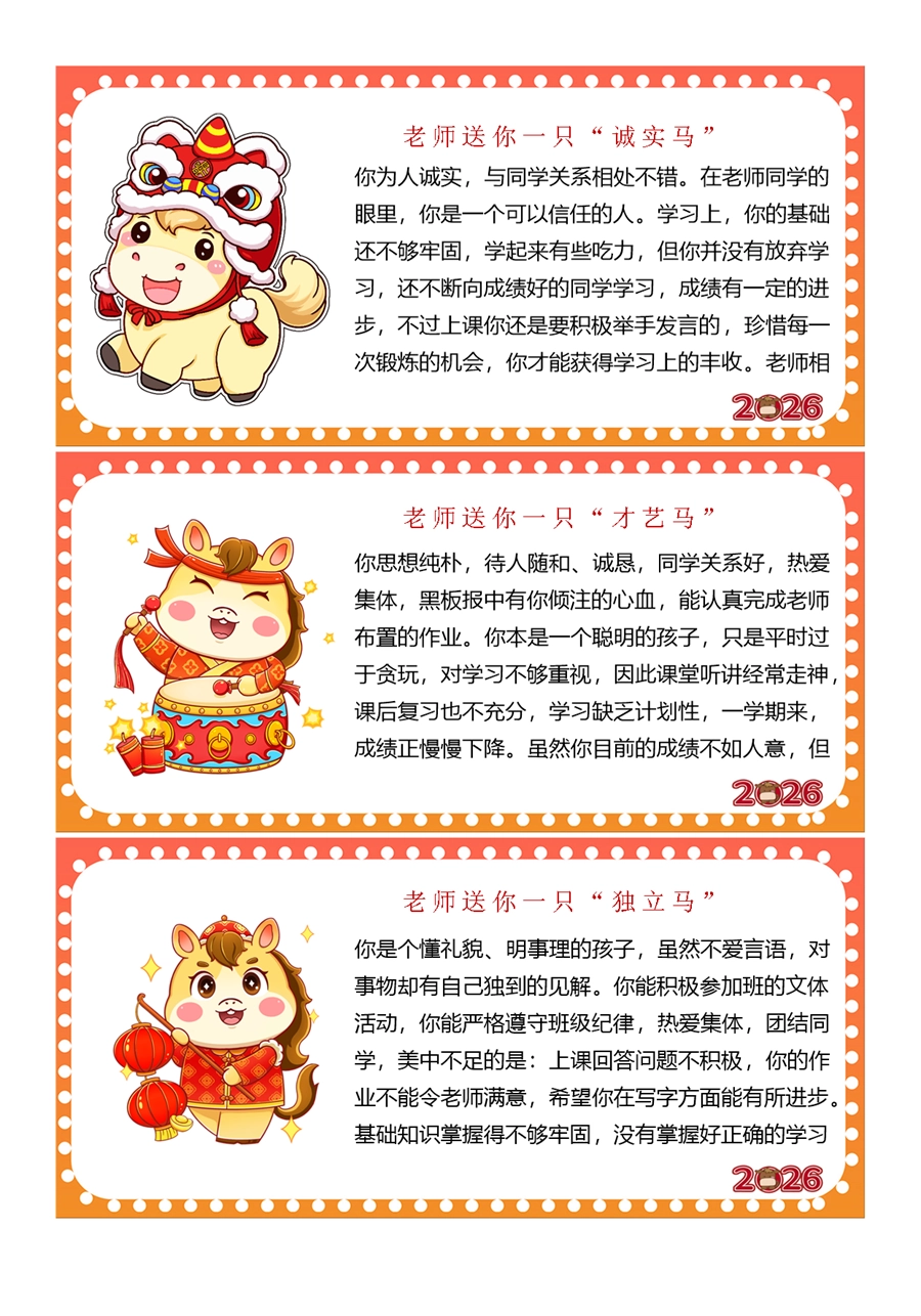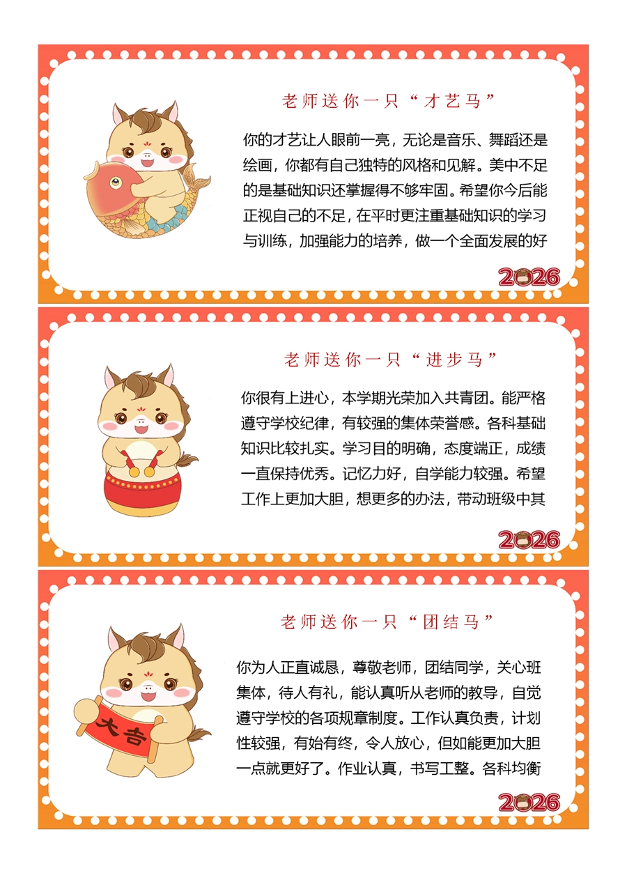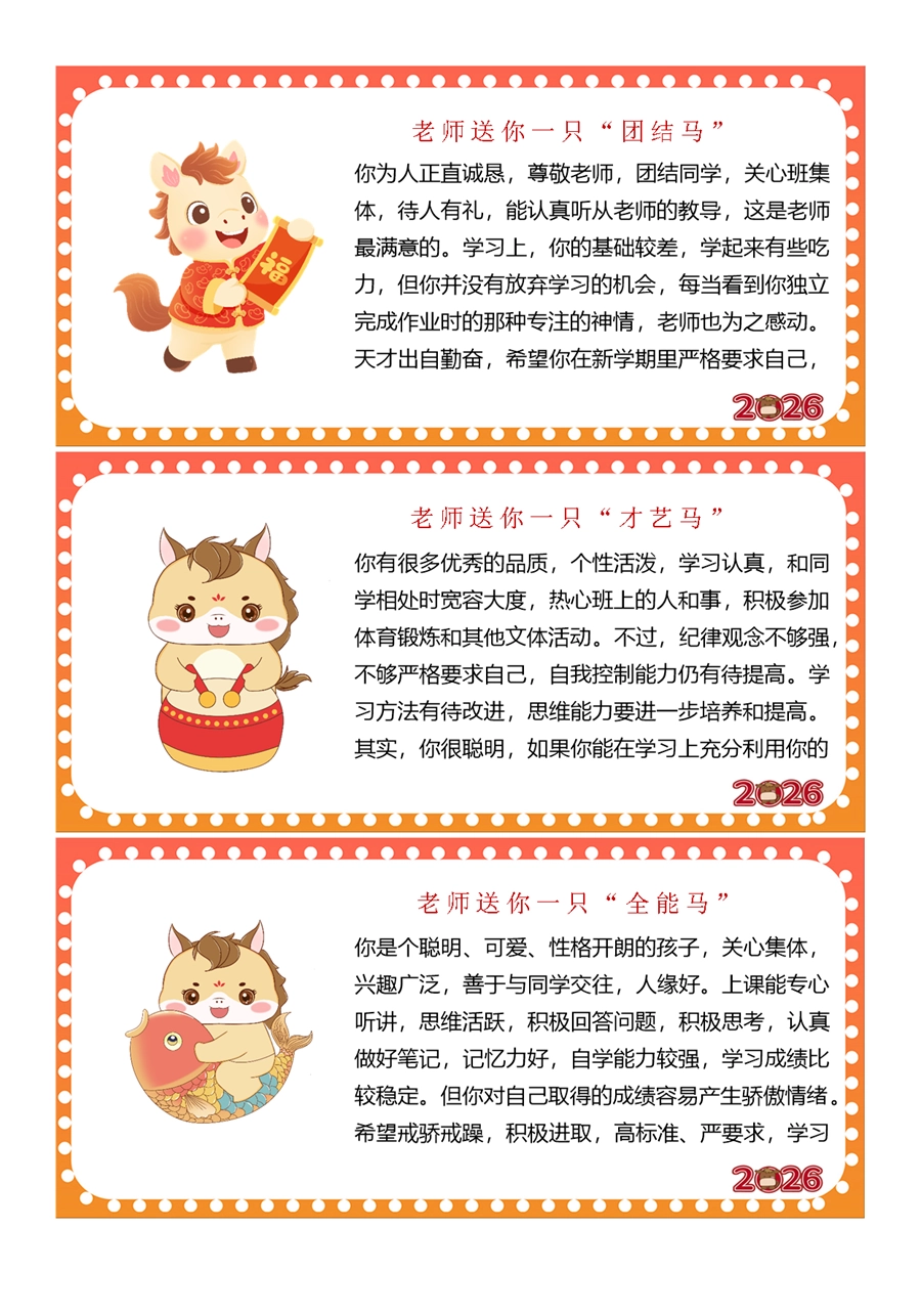 【期末学生评语】2026马年卡通特色评语(45条).docx