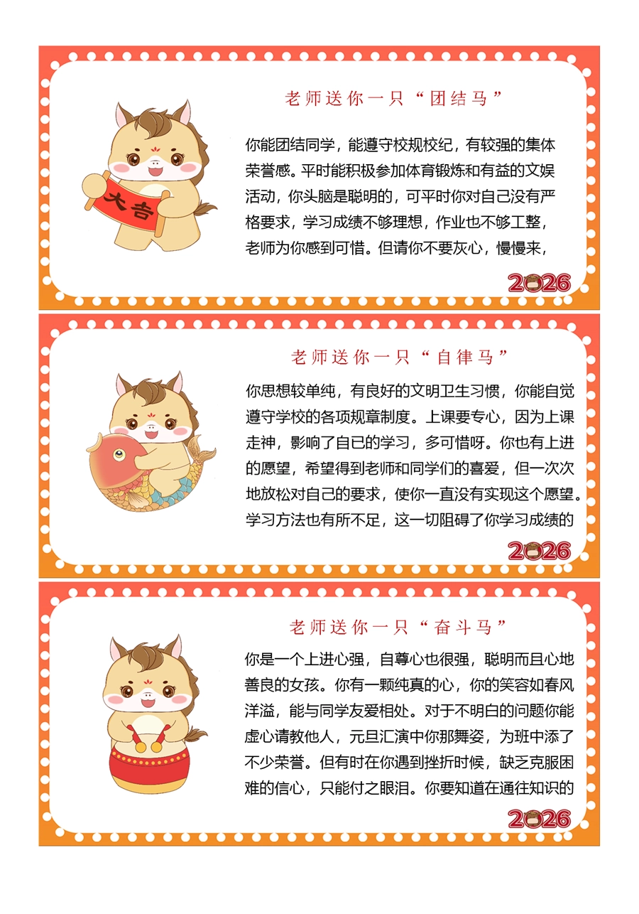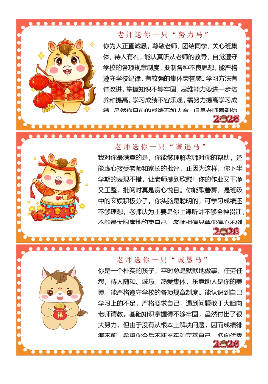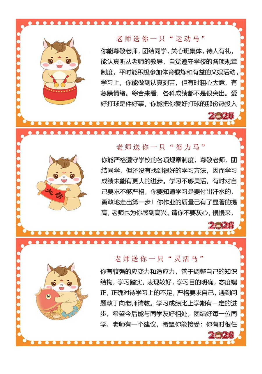 【期末学生评语】2026马年卡通特色评语(45条).docx
