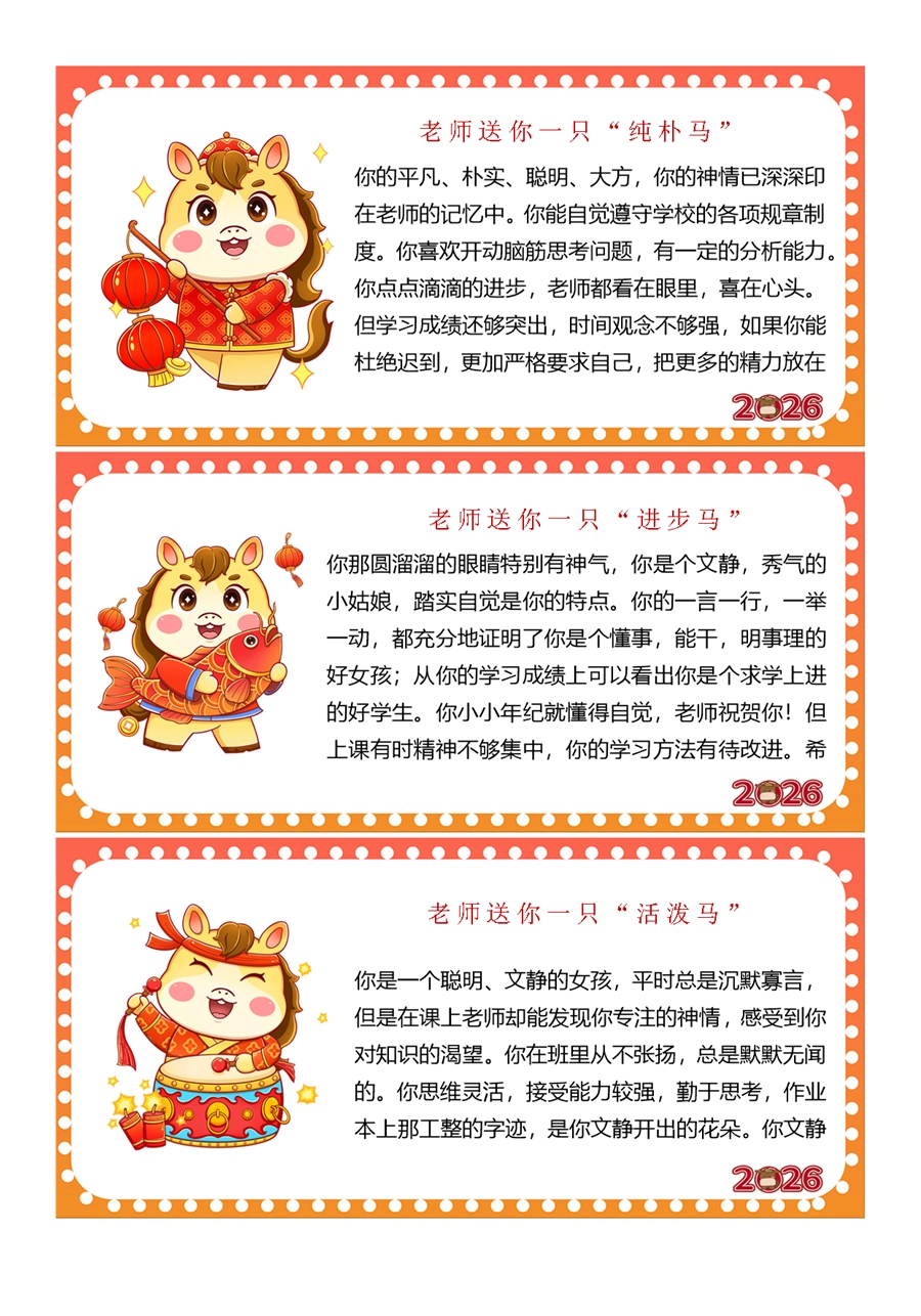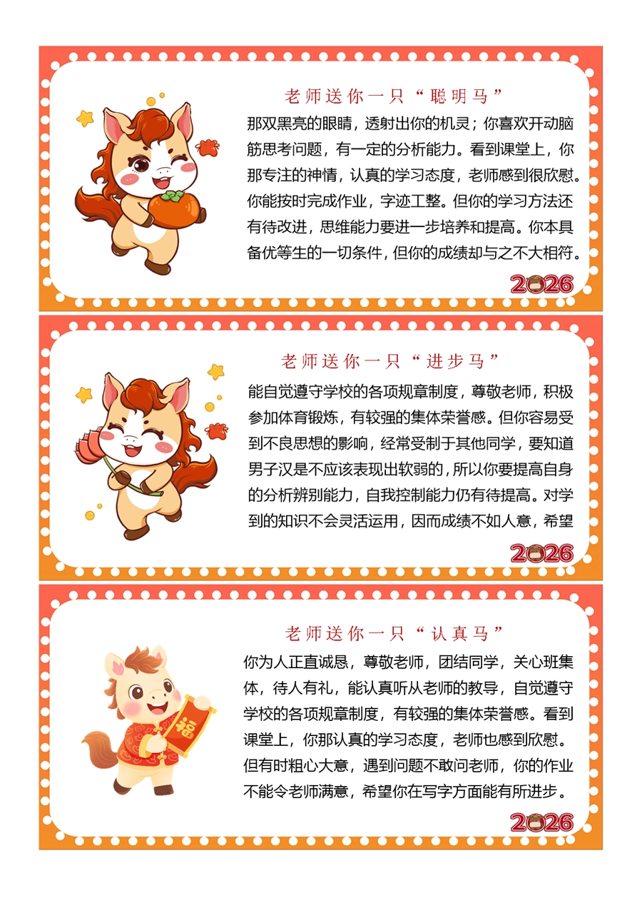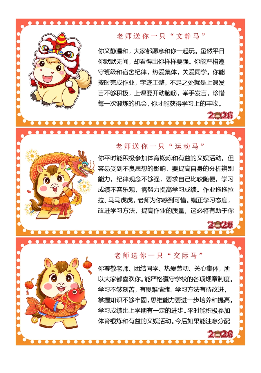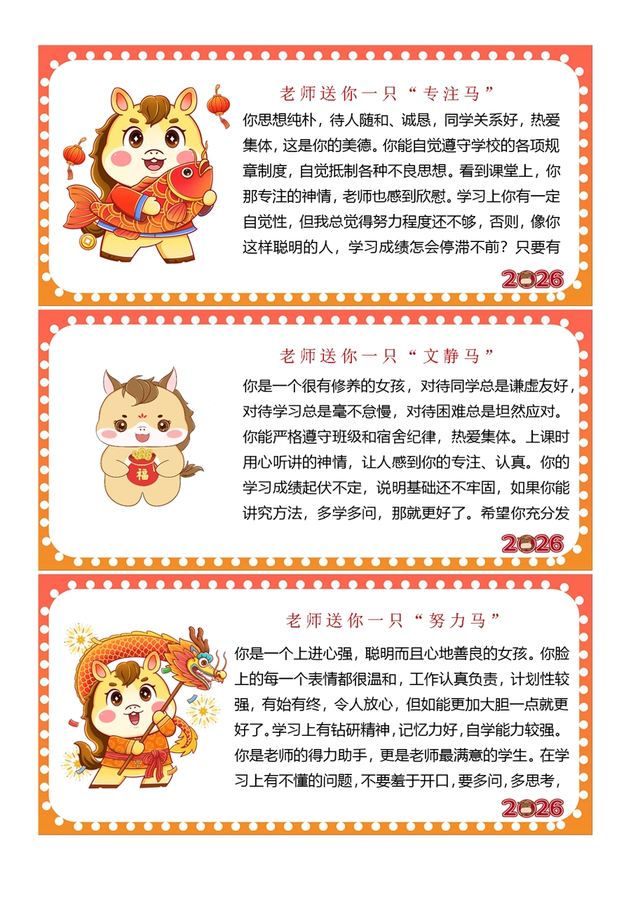【期末学生评语】2026马年特色评语学生期末评语图文评语(45条)