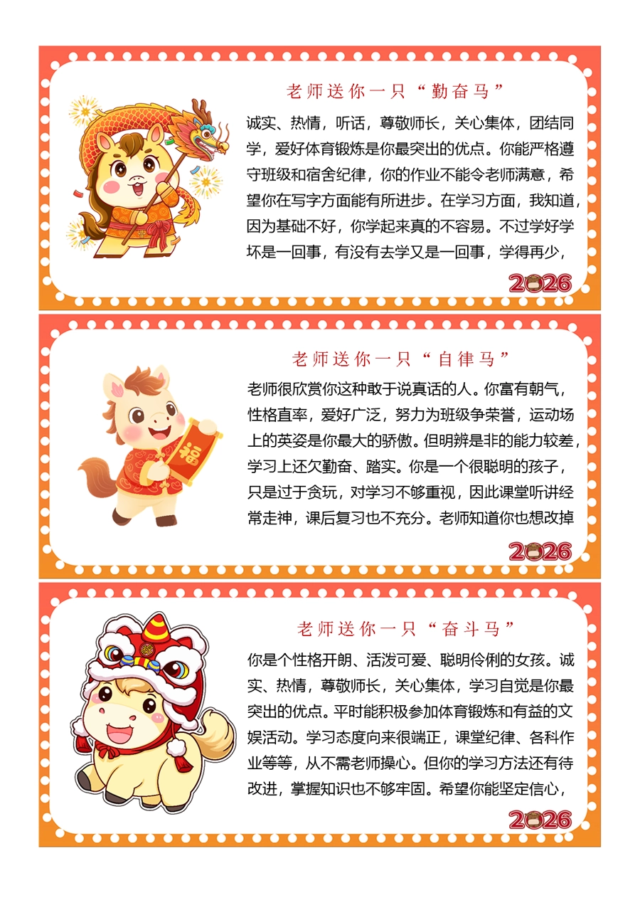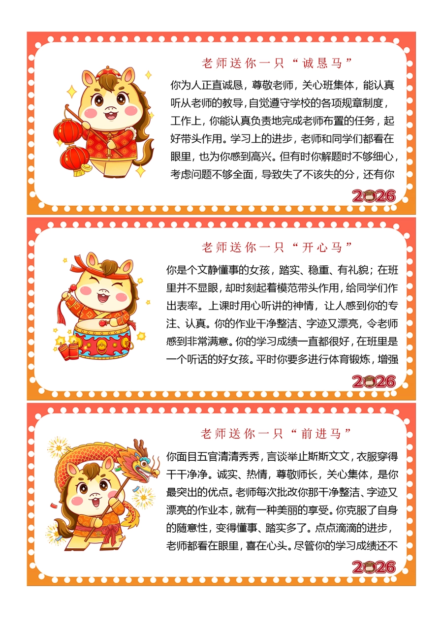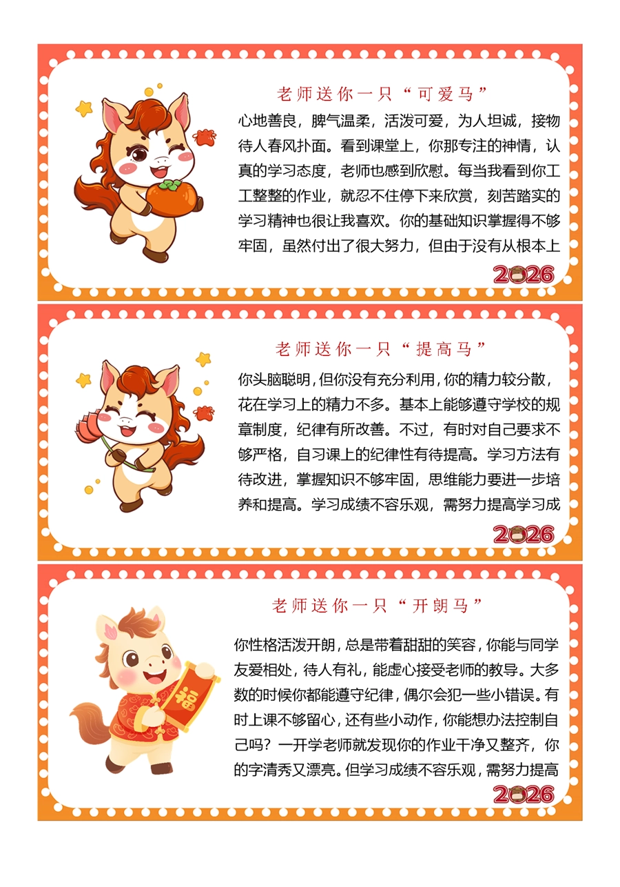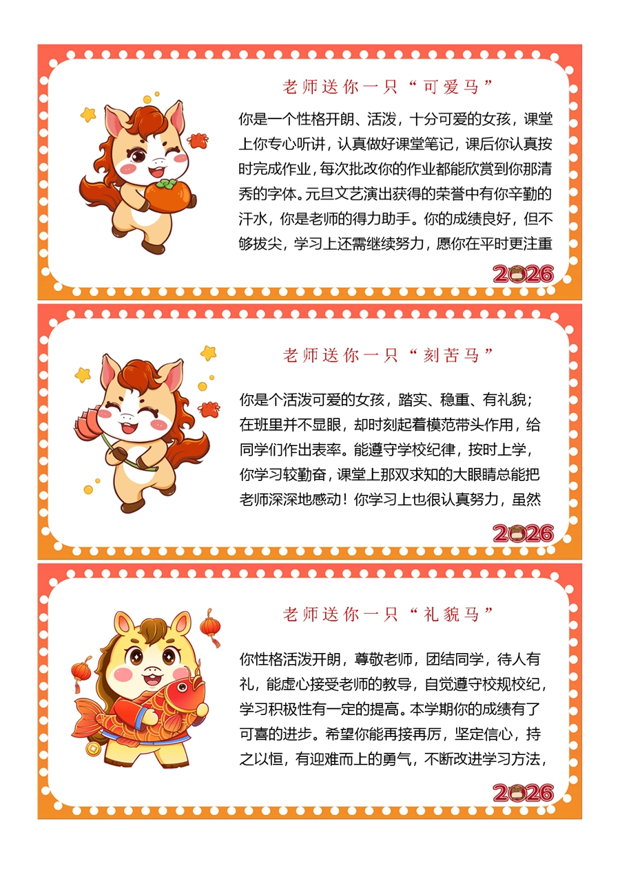 【期末学生评语】2026马年特色评语学生期末评语图文评语(45条)