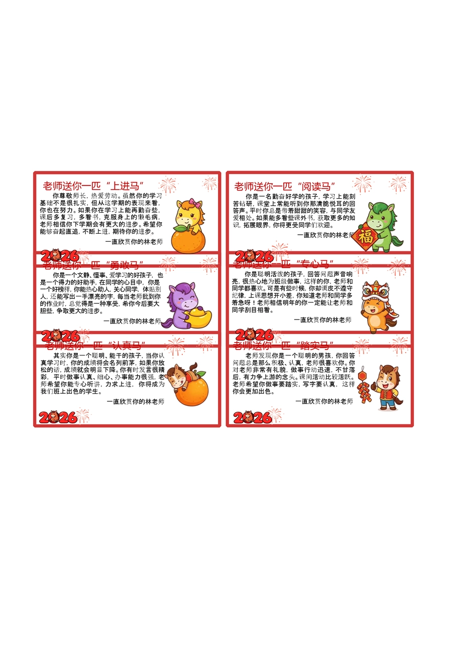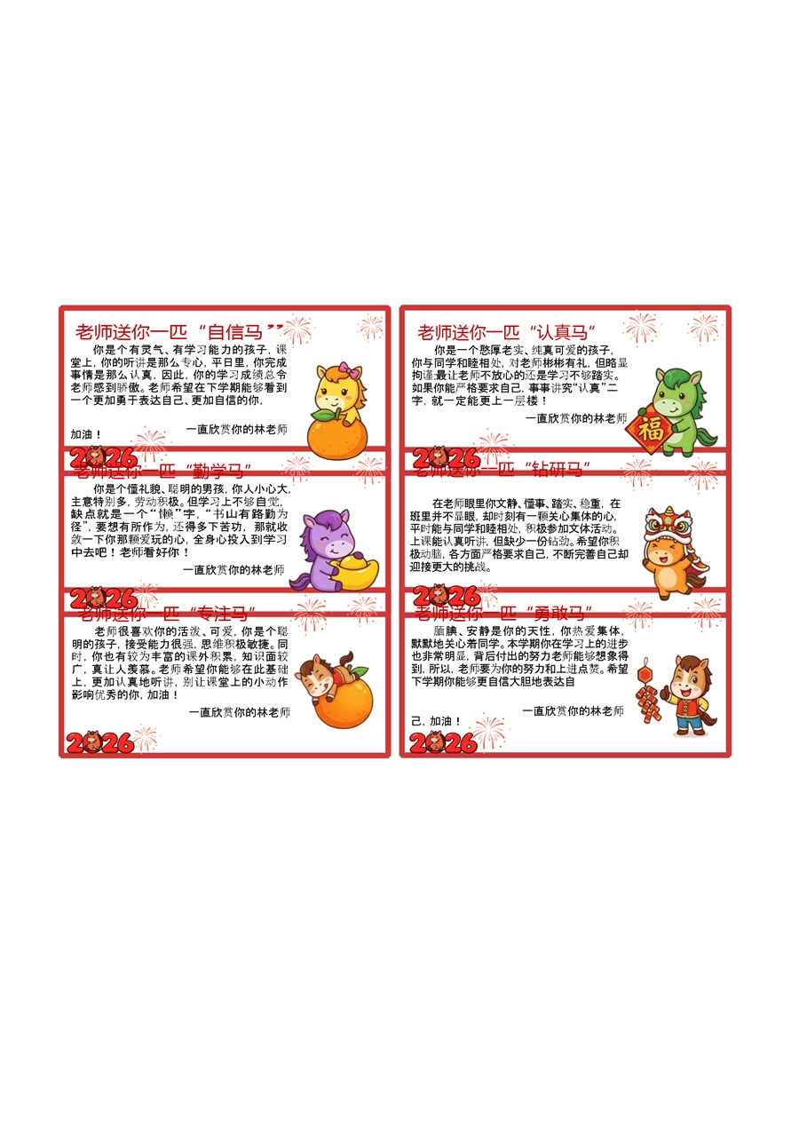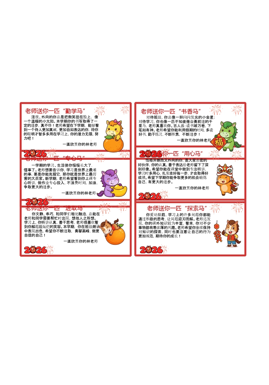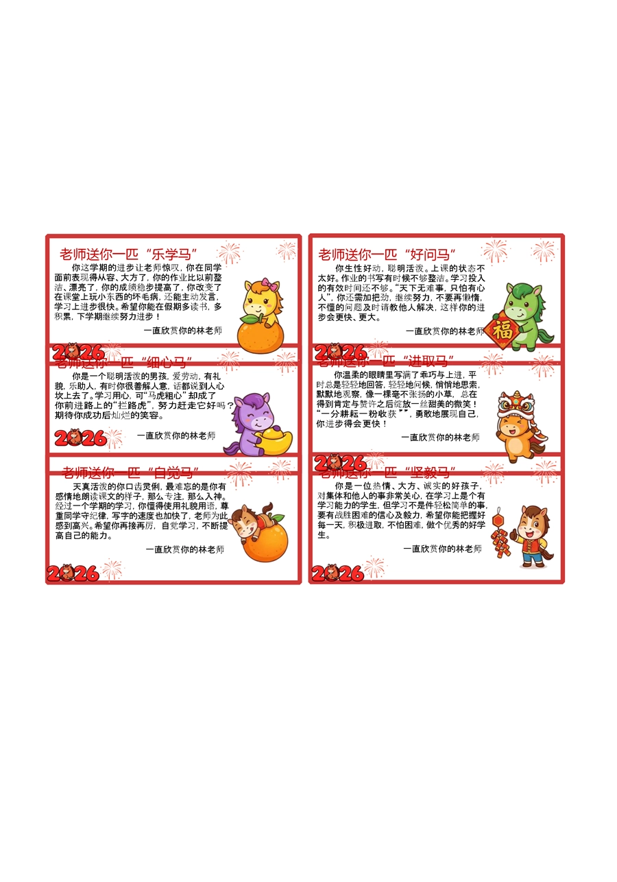 【期末学生评语】54个马年期末评语