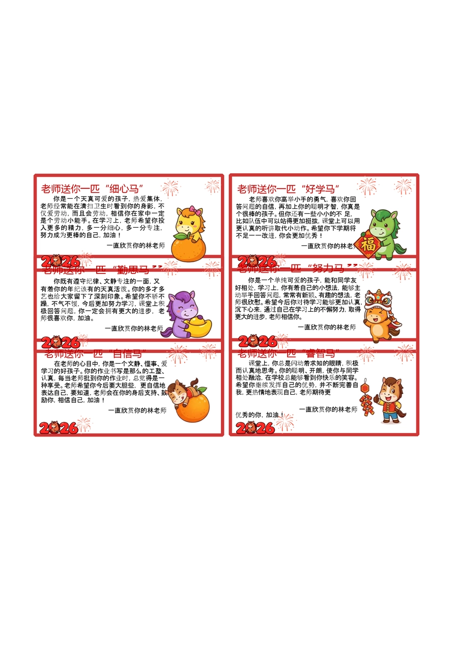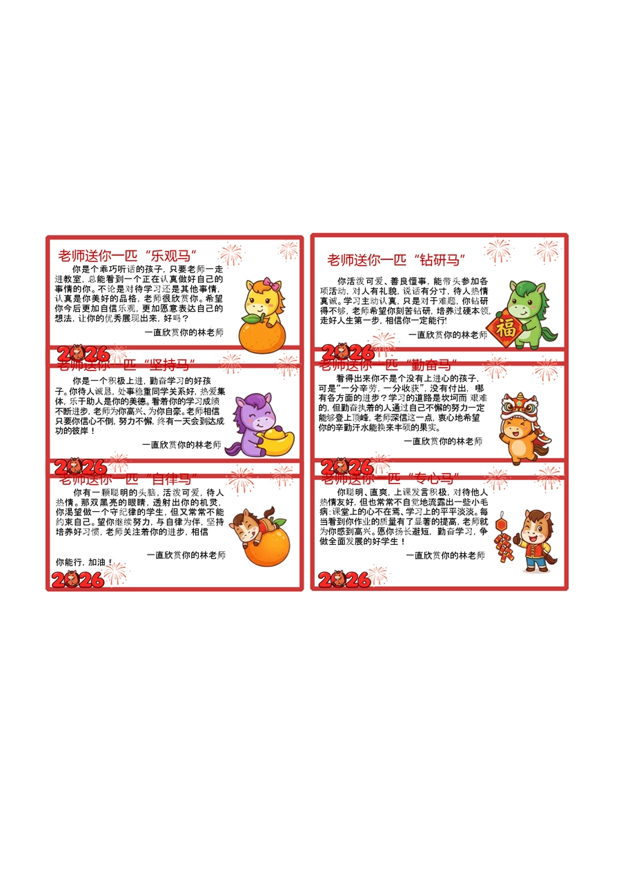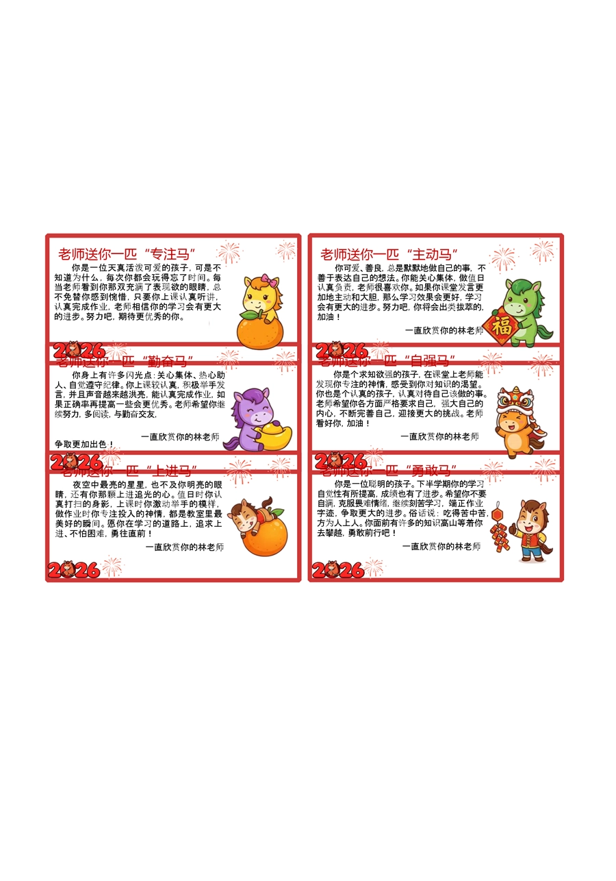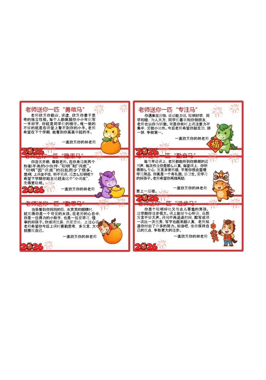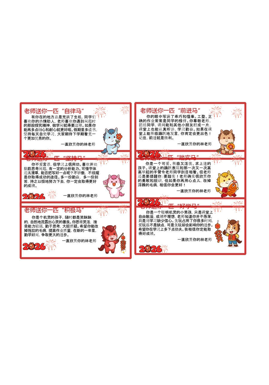 【期末学生评语】54个马年期末评语