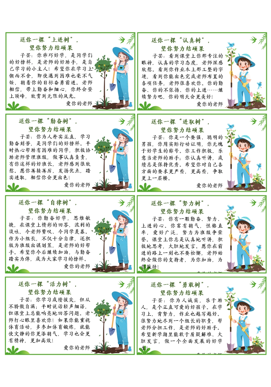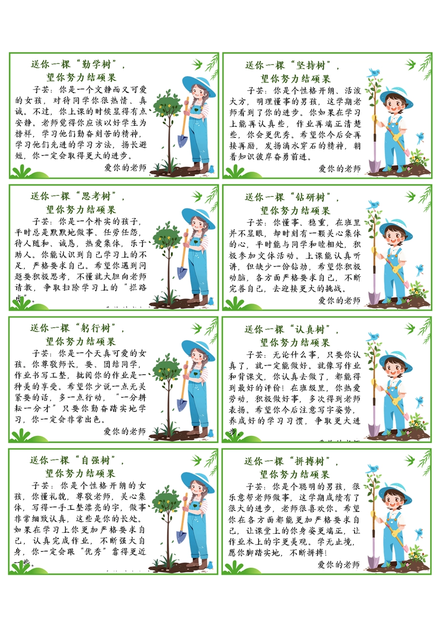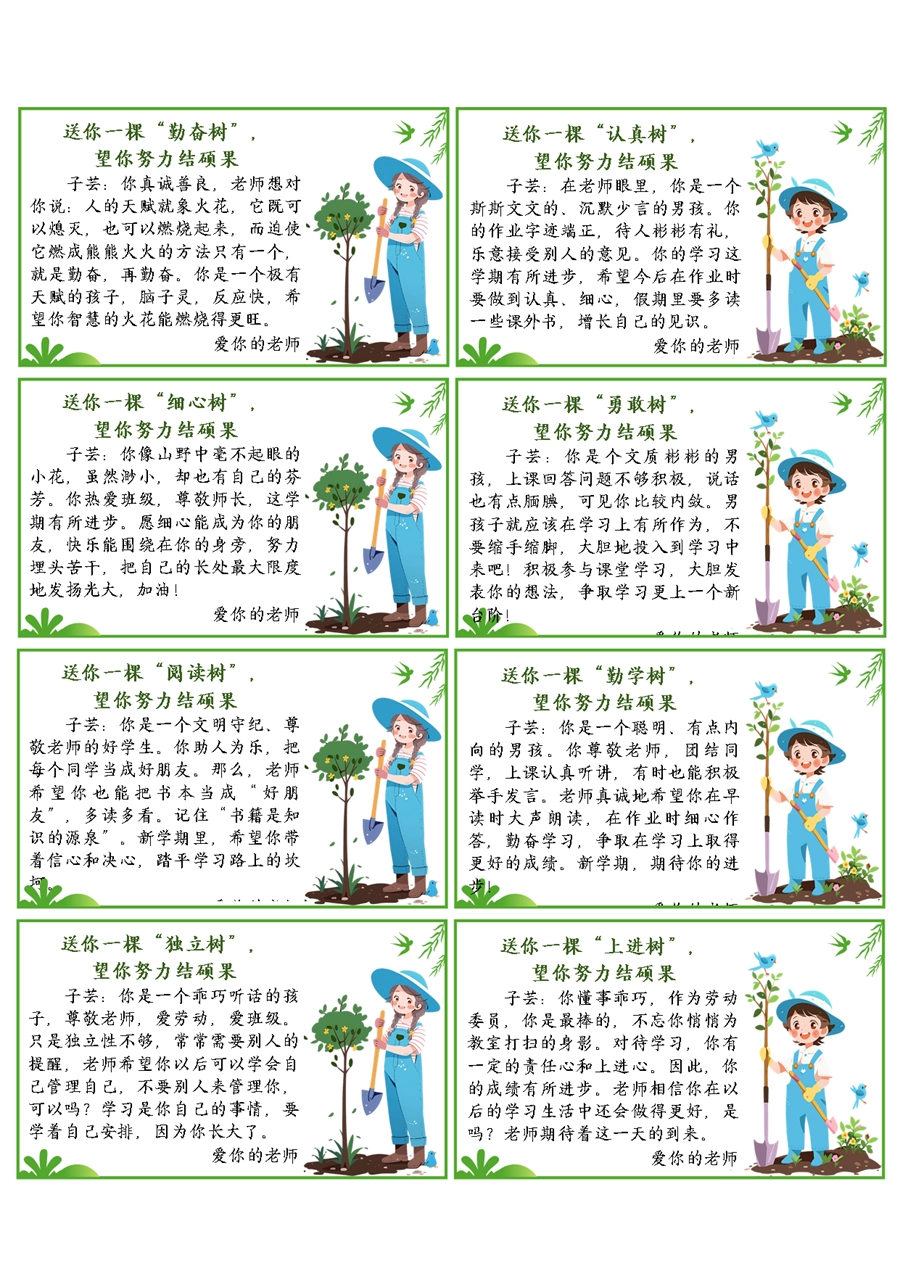 【期末学生评语】送你一棵树期末评语60条(6x10cm)