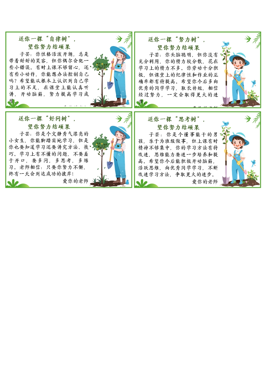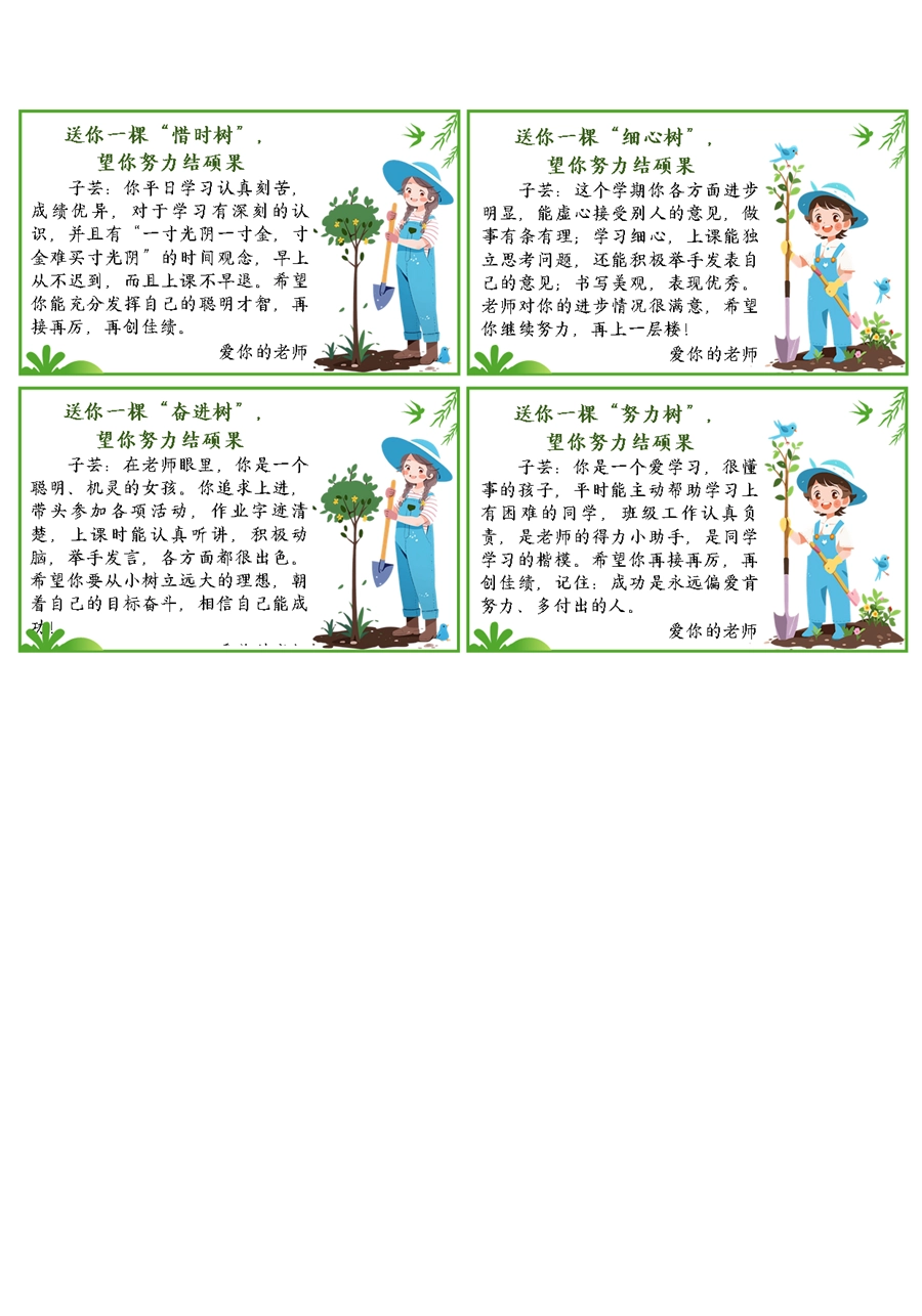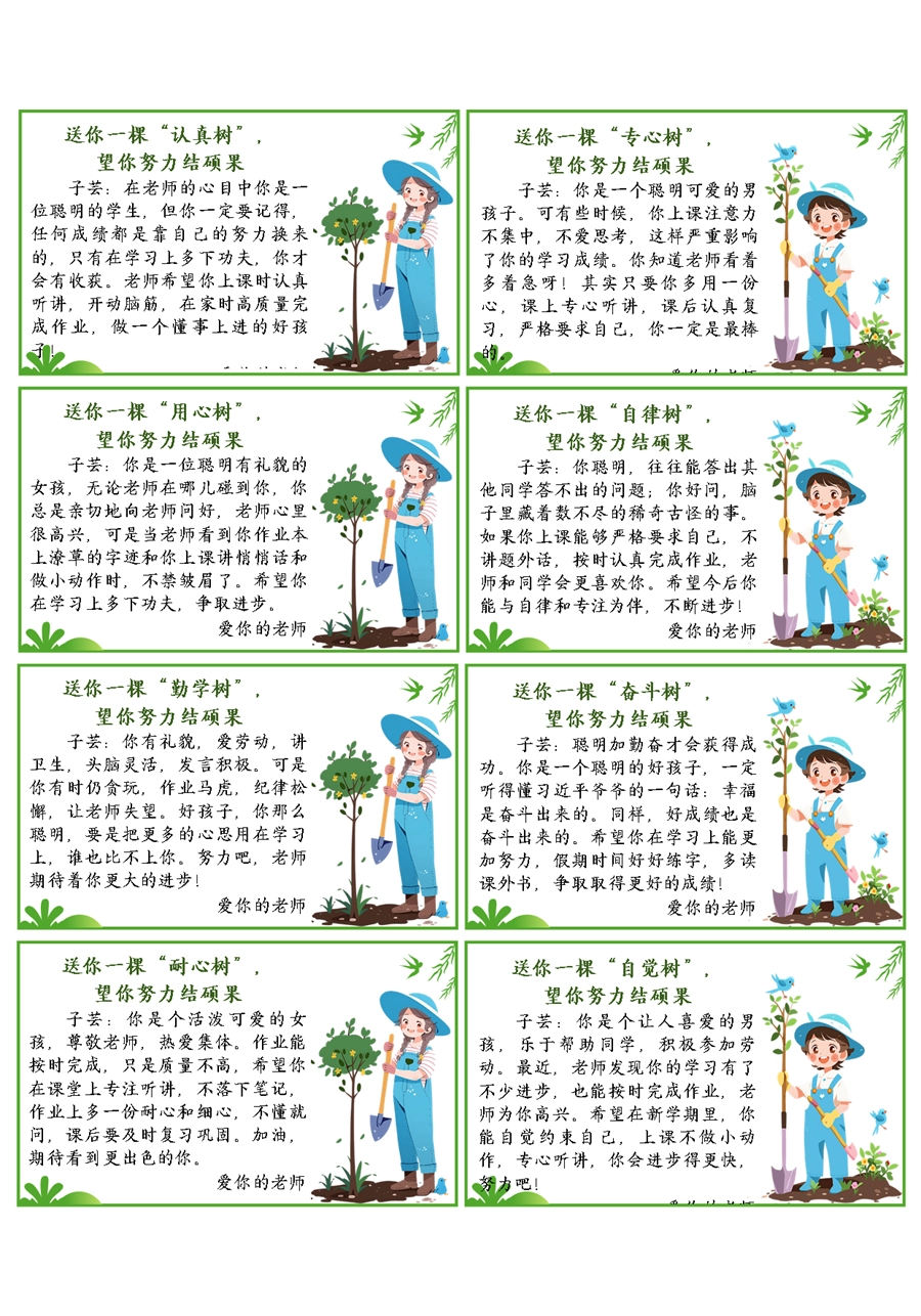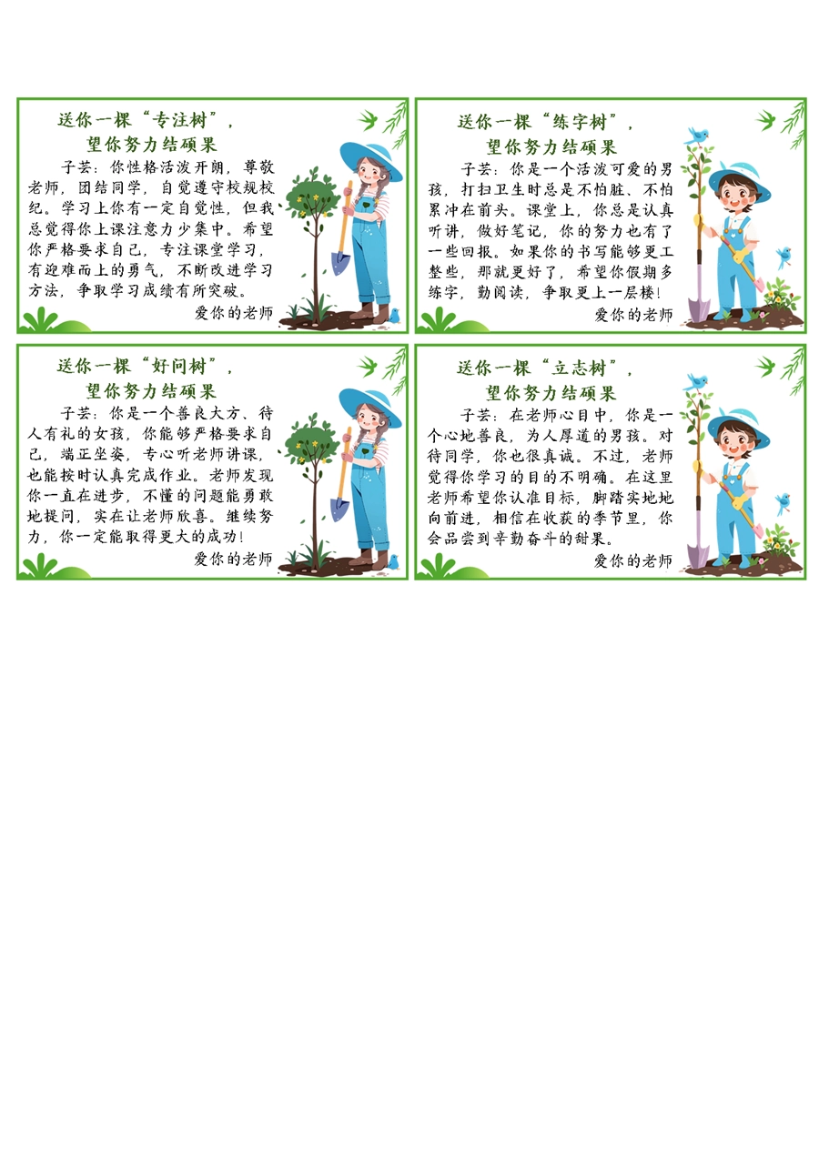 【期末学生评语】送你一棵树期末评语60条(6x10cm)