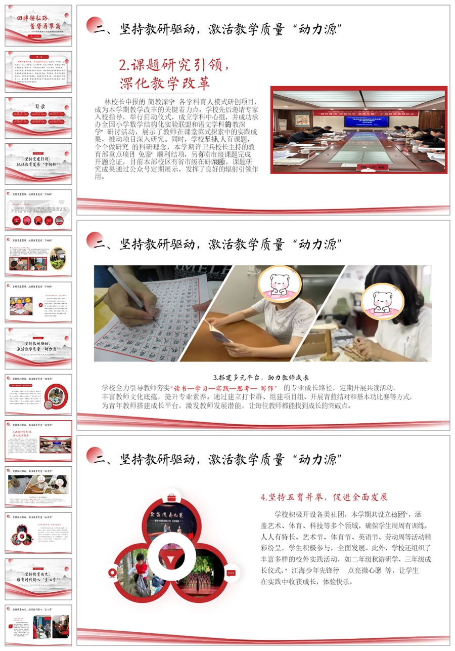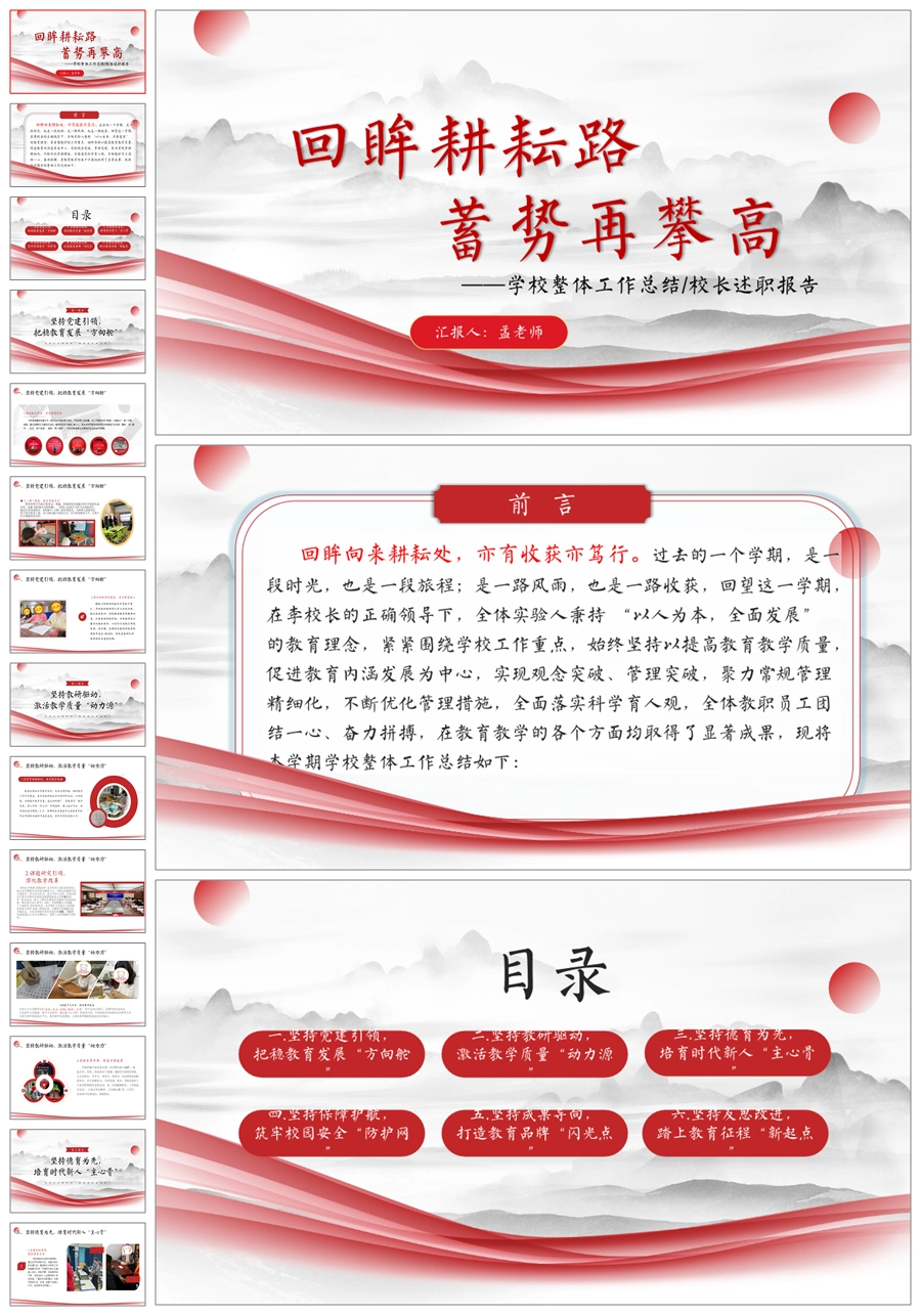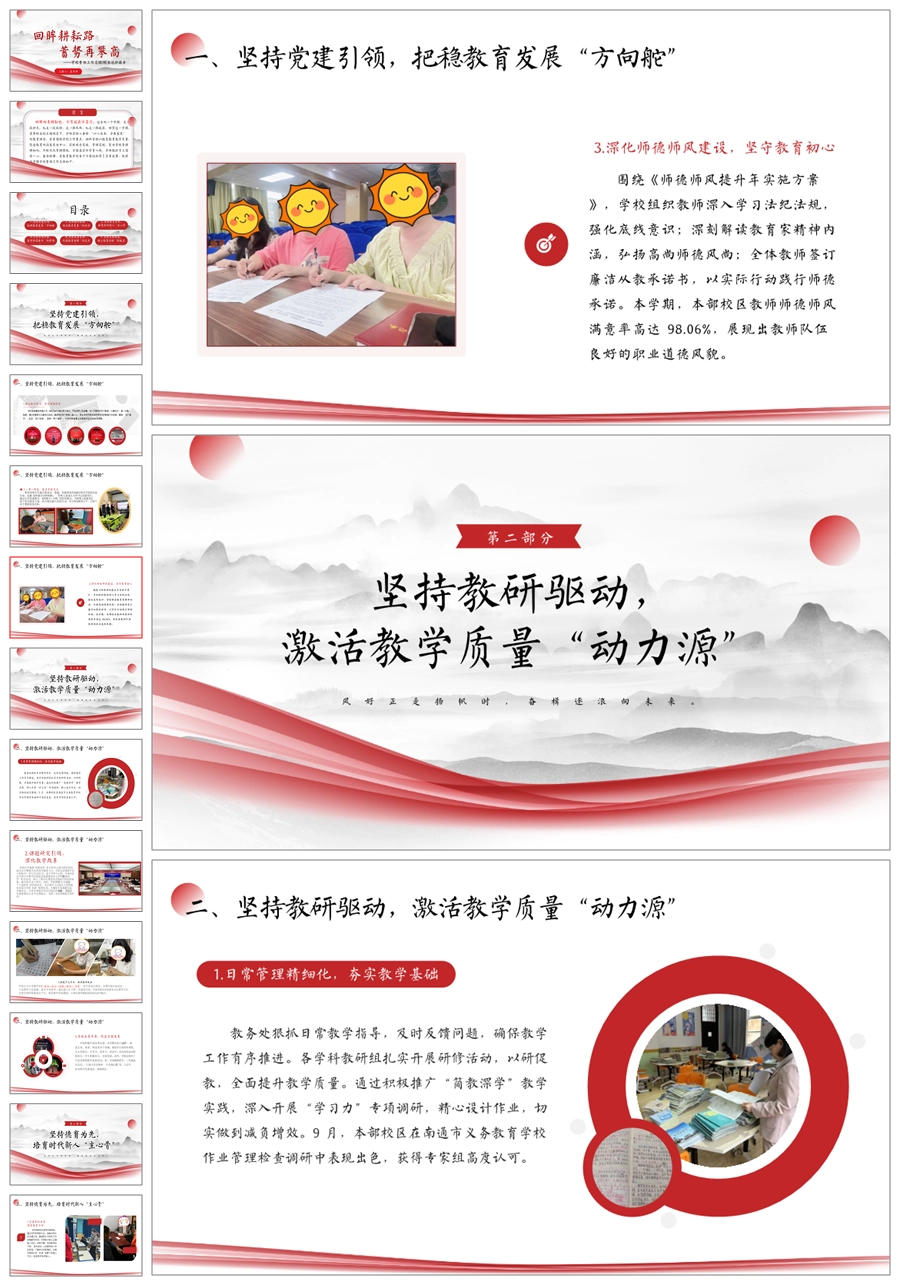 《回眸耕耘路,蓄势再攀高》学校整体工作总结ppt课件+发言稿
