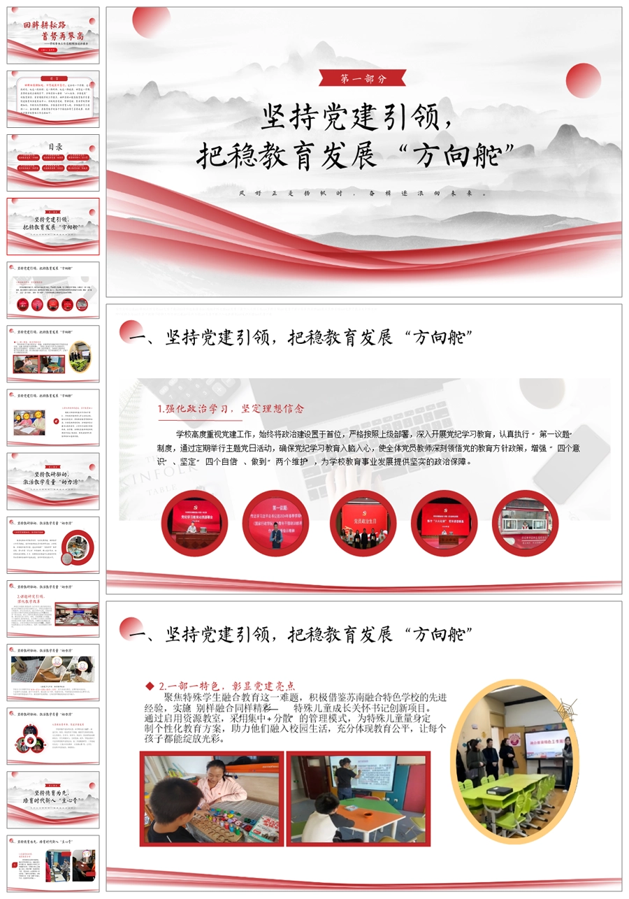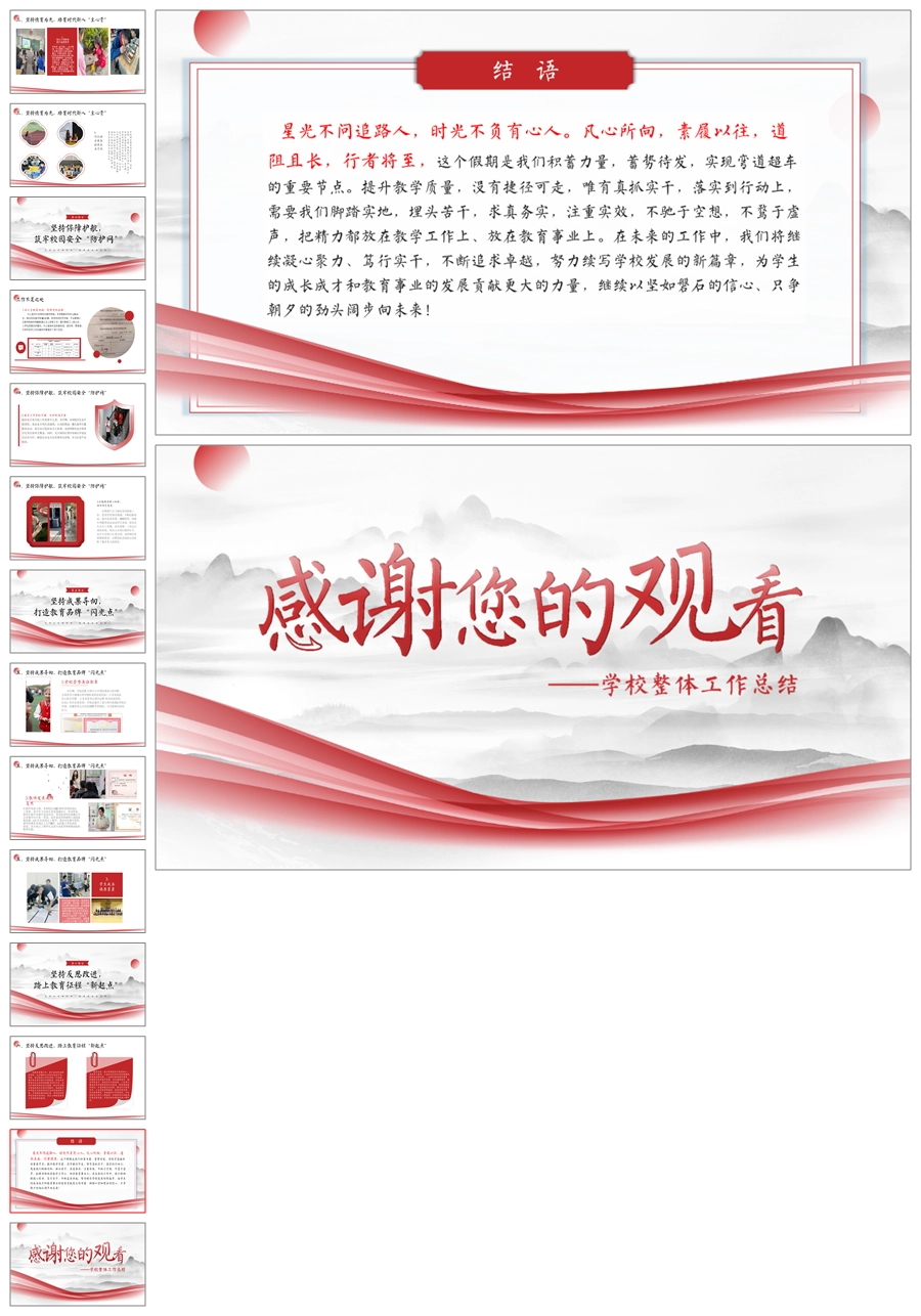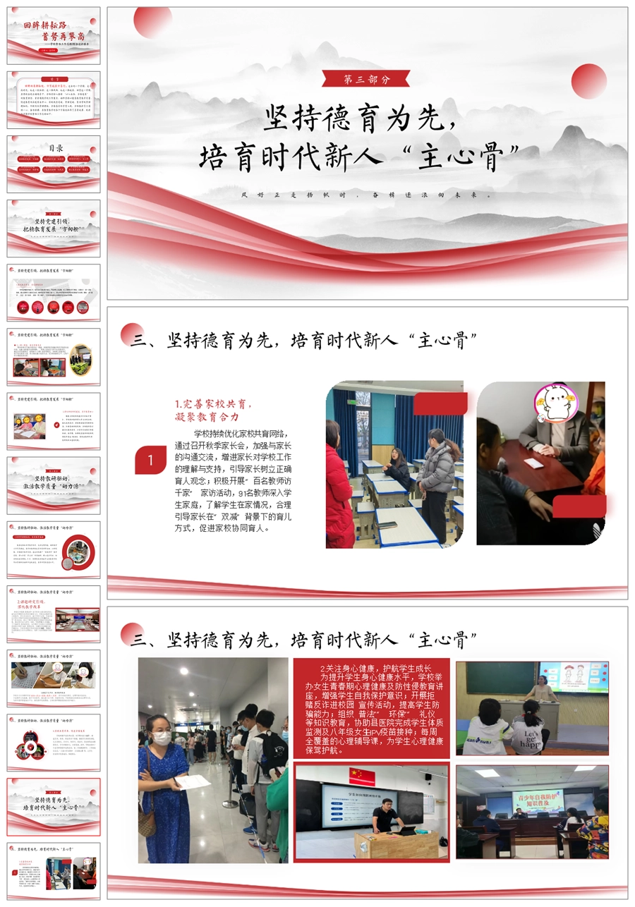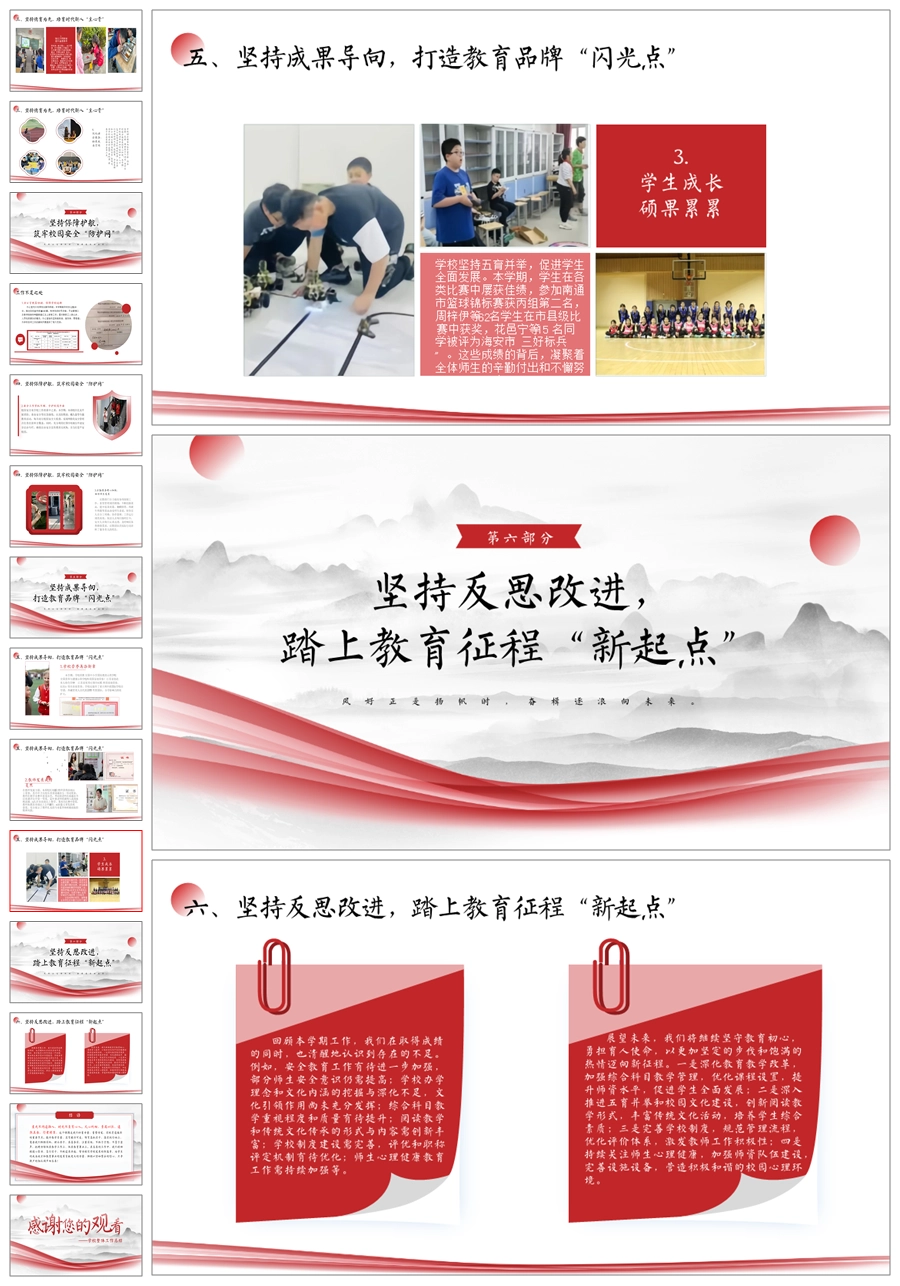 《回眸耕耘路,蓄势再攀高》学校整体工作总结ppt课件+发言稿