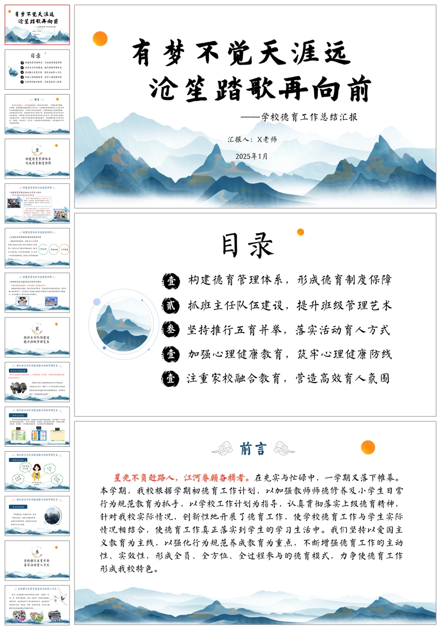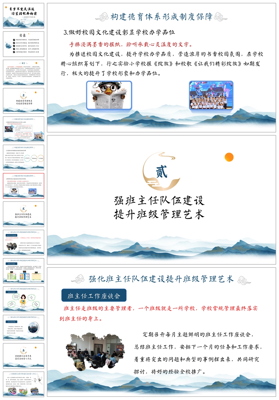 《有梦不觉天涯远》学校德育工作总结ppt课件+发言稿