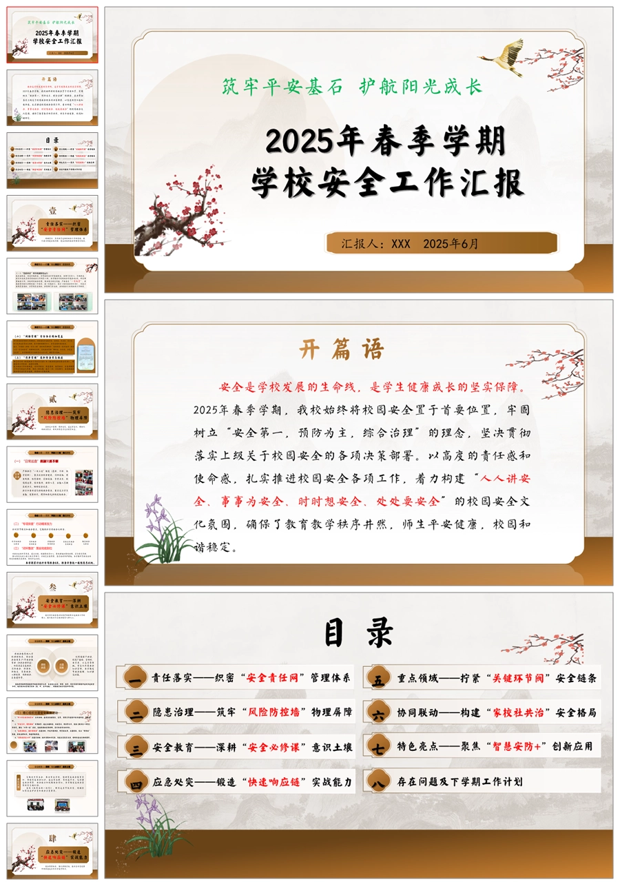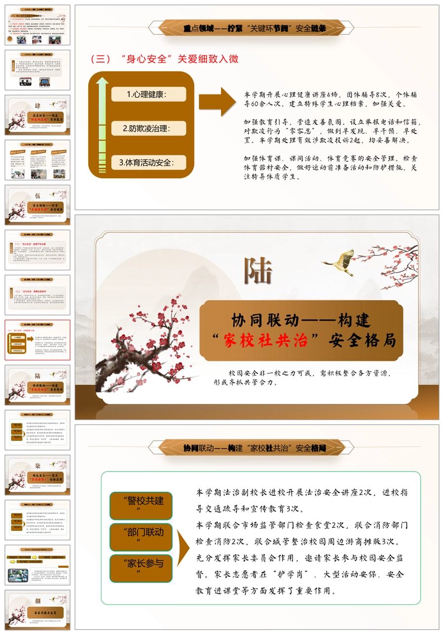 《筑牢平安基石 护航阳光成长》学校安全工作总结ppt课件+发言稿