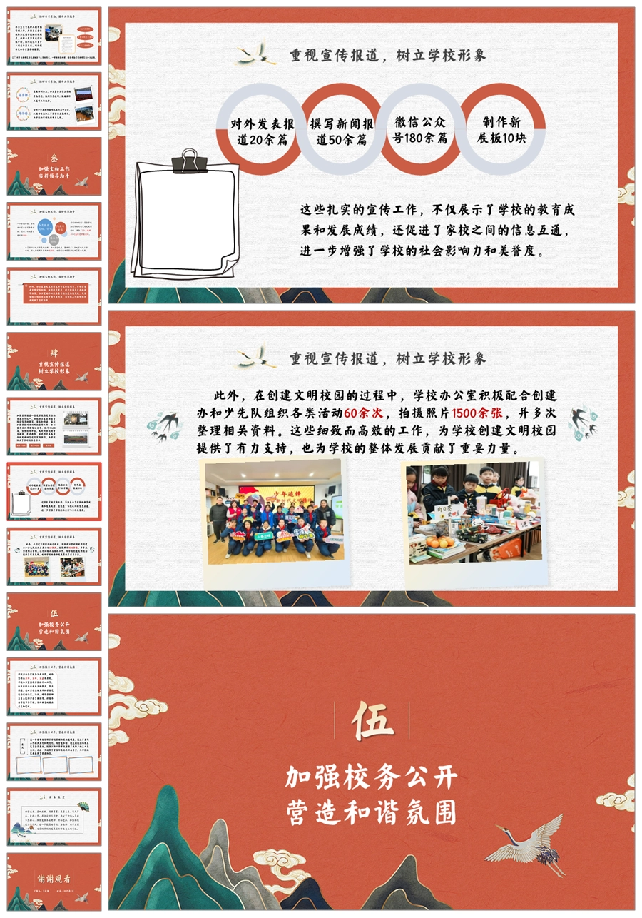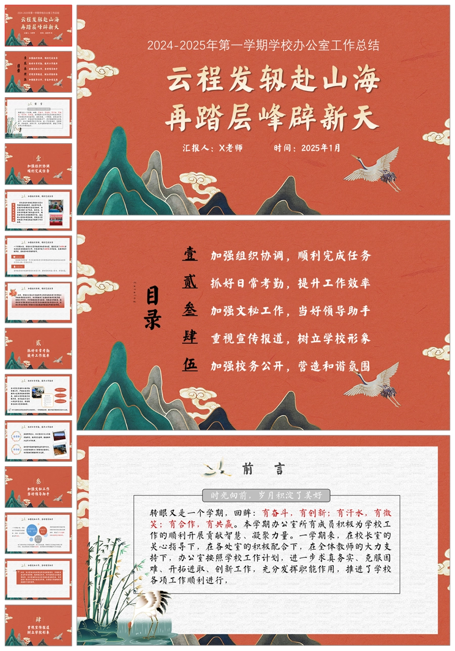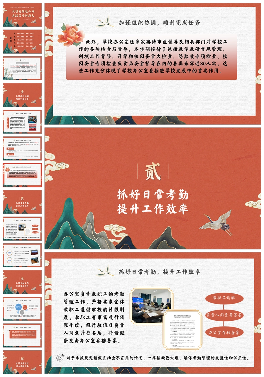 学校办公室工作总结(层峰辟新天)ppt课件+发言稿