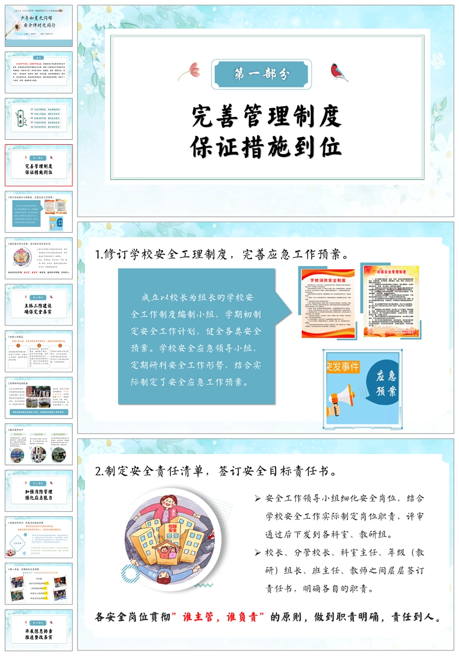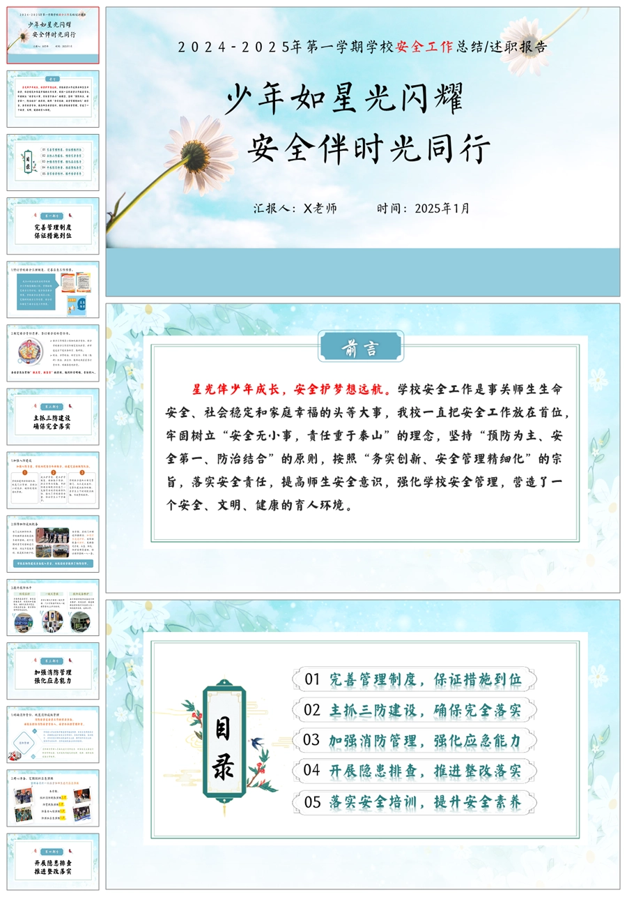 学校安全工作总结(时光同行)ppt课件+发言稿