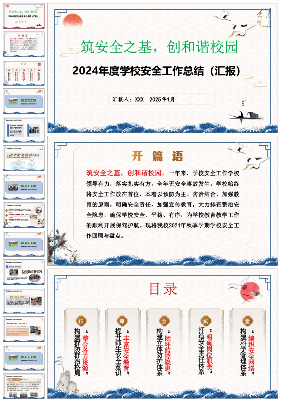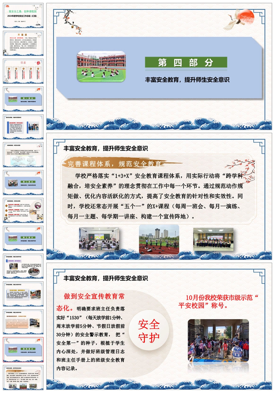学校安全工作总结(汇报)材料(筑安全之基)ppt课件+发言稿