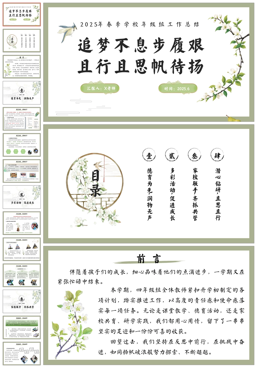 学校年级组工作总结-追梦不息步履艰ppt课件+发言稿