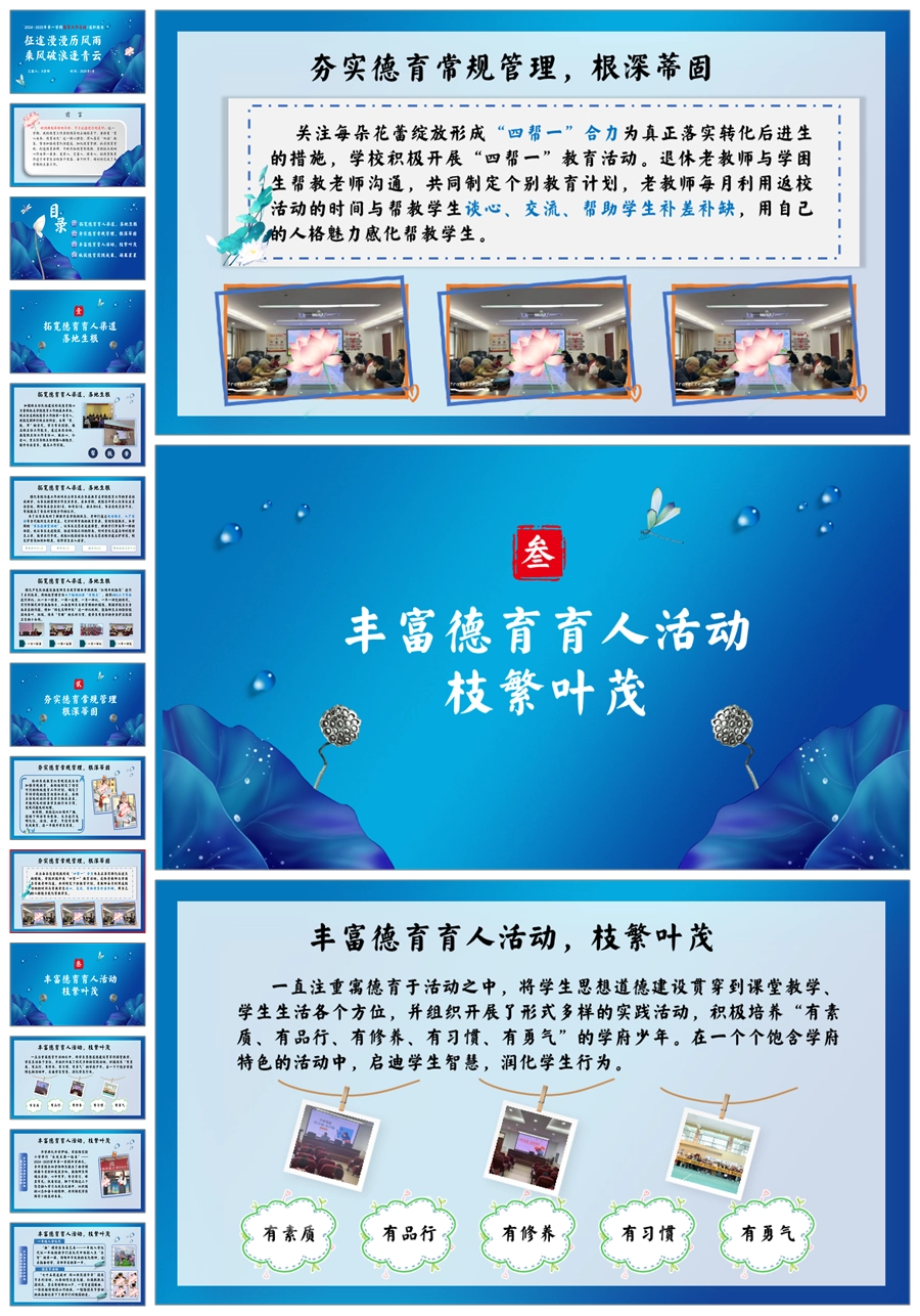 学校德育工作总结-征途漫漫历风雨 乘风破浪逐青云ppt课件+发言稿