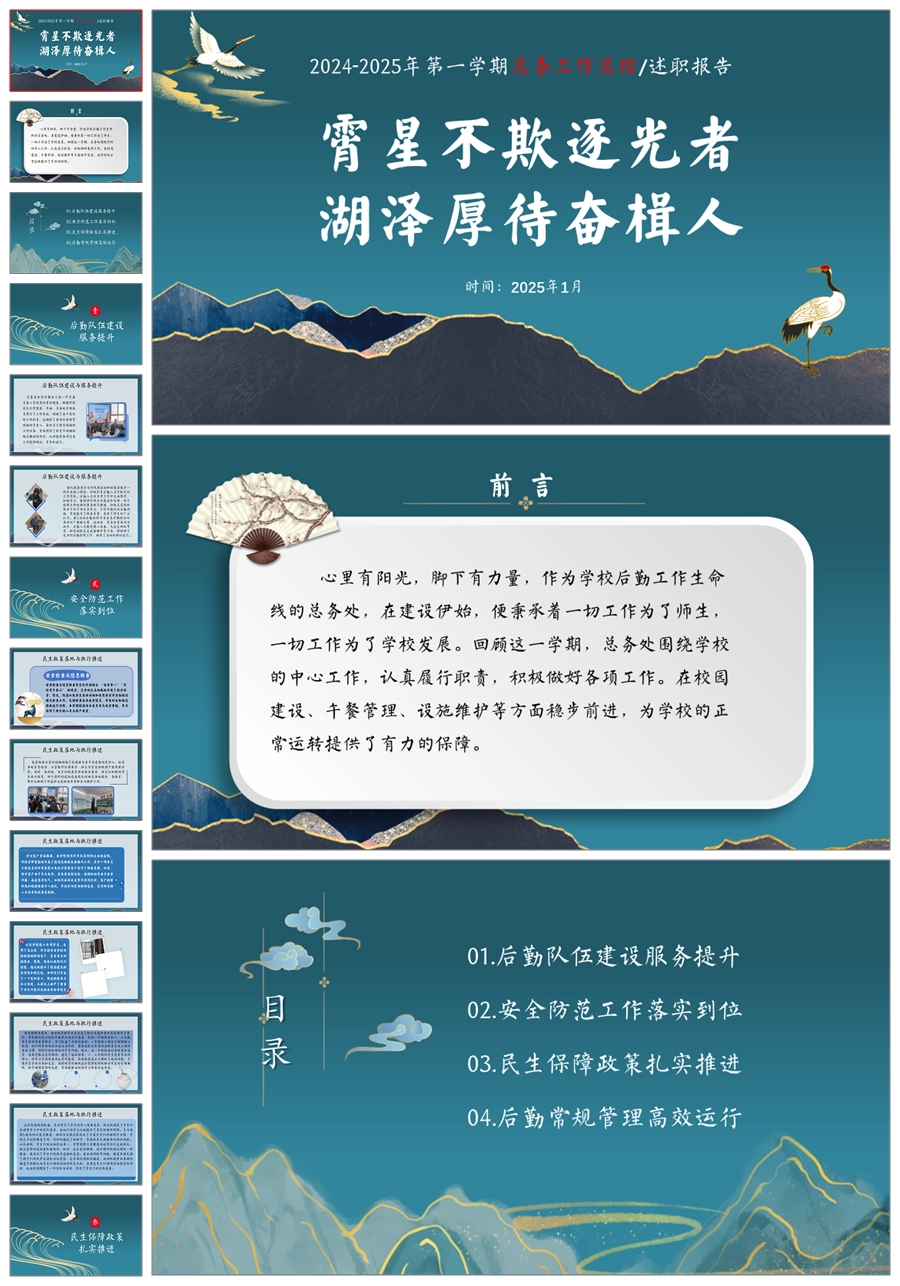 学校总务工作总结-霄星不欺逐光者 湖泽厚待奋楫人ppt课件+发言稿