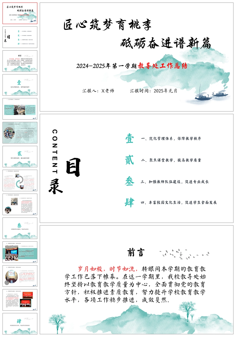 学校教导处工作总结(匠心筑梦育桃李)ppt课件+发言稿