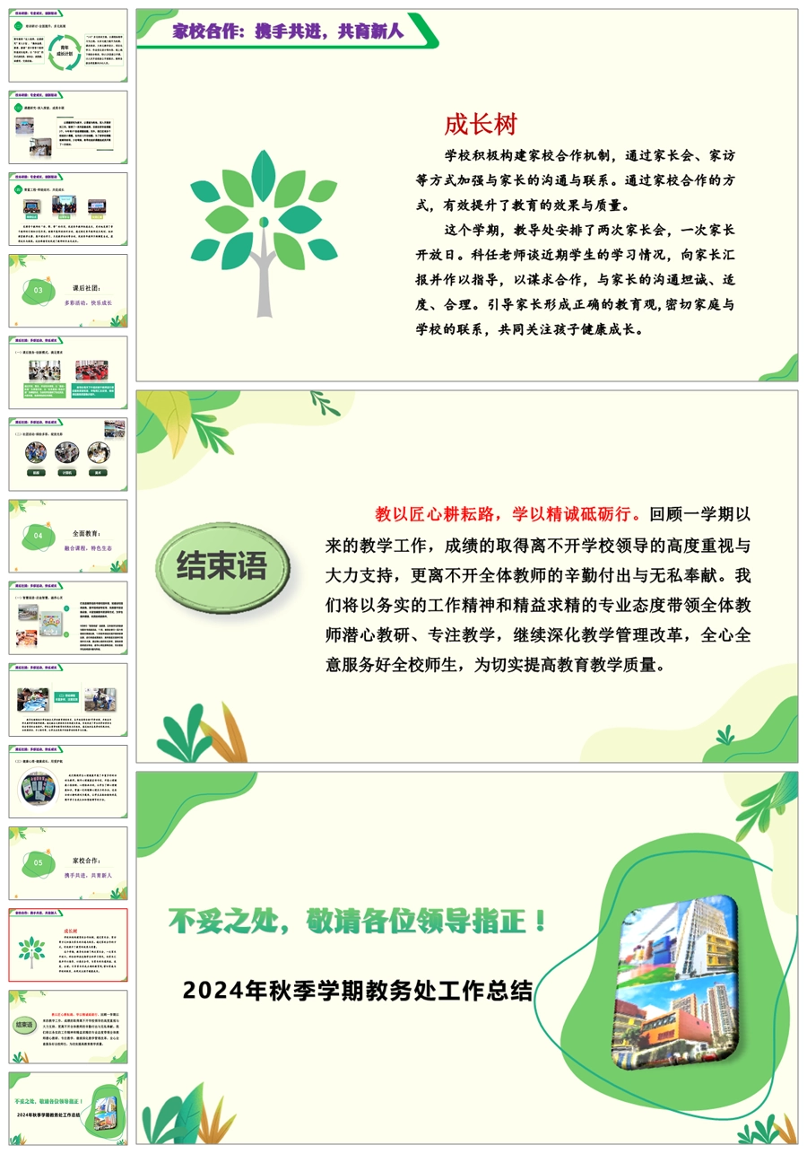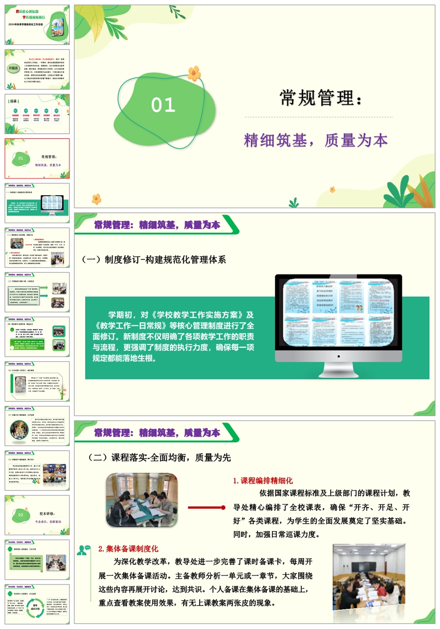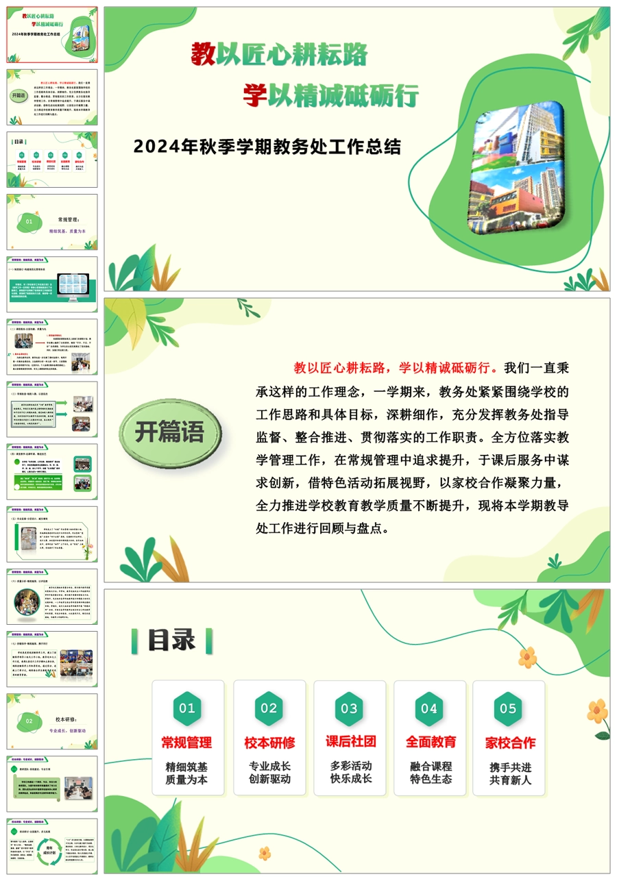 教以匠心耕耘路 学以精诚砥砺行》学校教务处工作总结ppt课件+发言稿