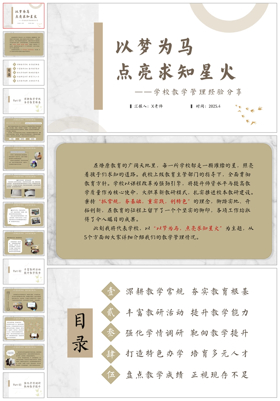 教学管理经验总结《以梦为马,点亮求知星火》ppt课件+发言稿
