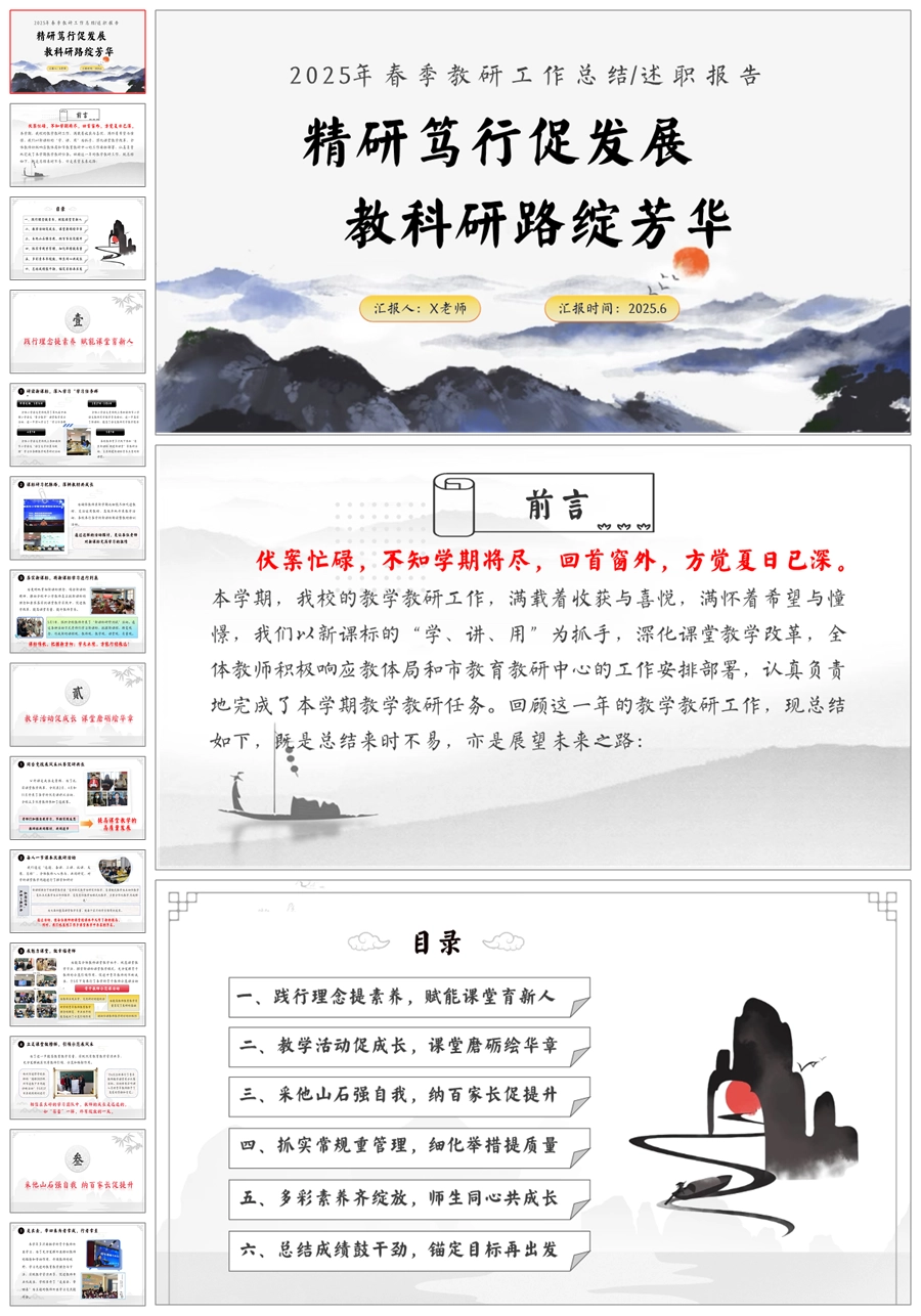 学校教研工作总结-精研笃行促发展ppt课件+发言稿