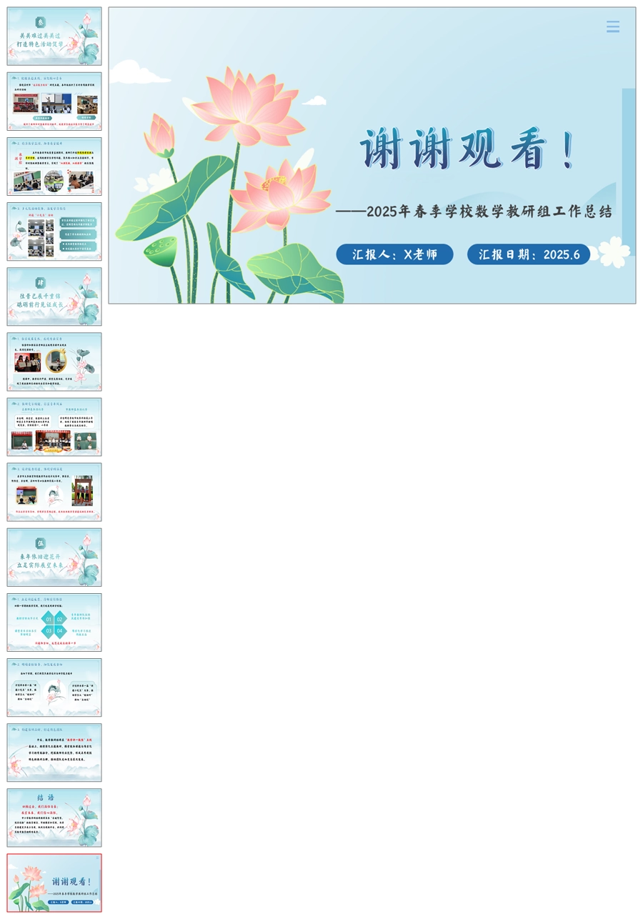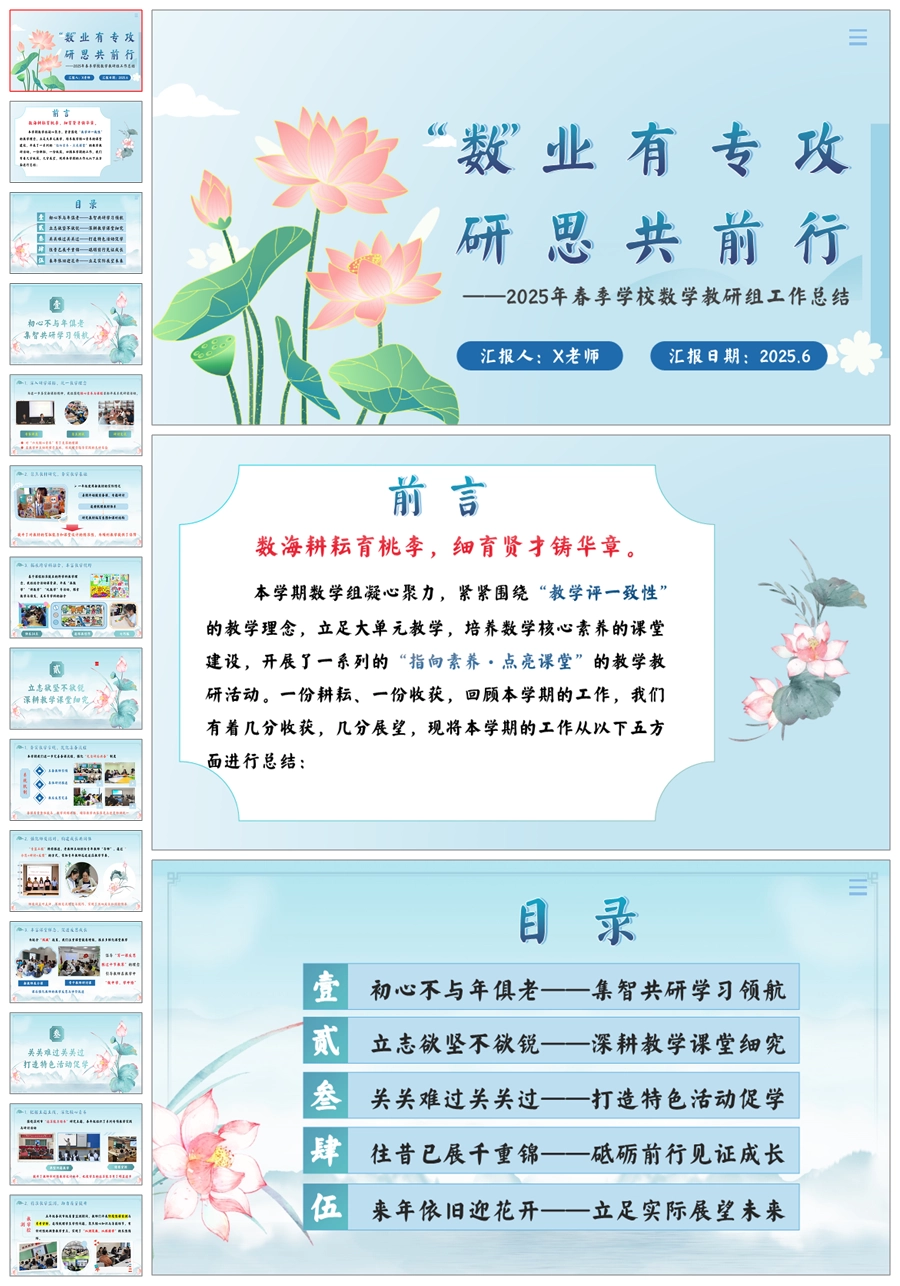学校数学教研组工作总结-“数”业有专攻ppt课件+发言稿