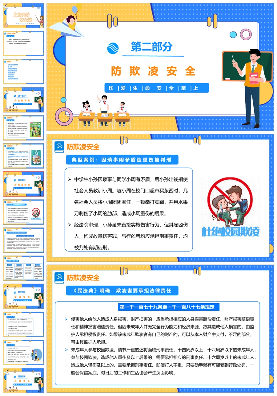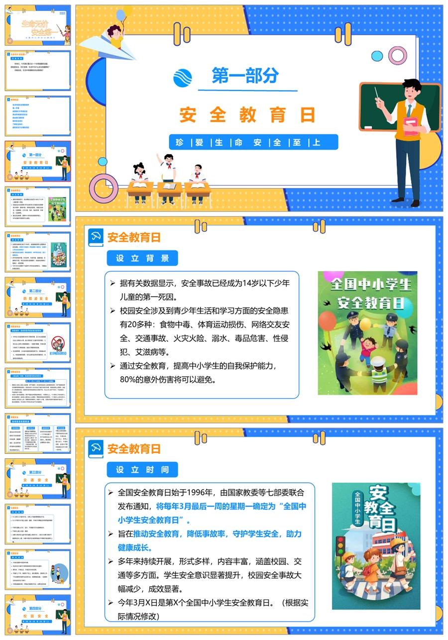 【5739】中小学生安全教育日班会《生命无价安全第一》ppt课件+教案