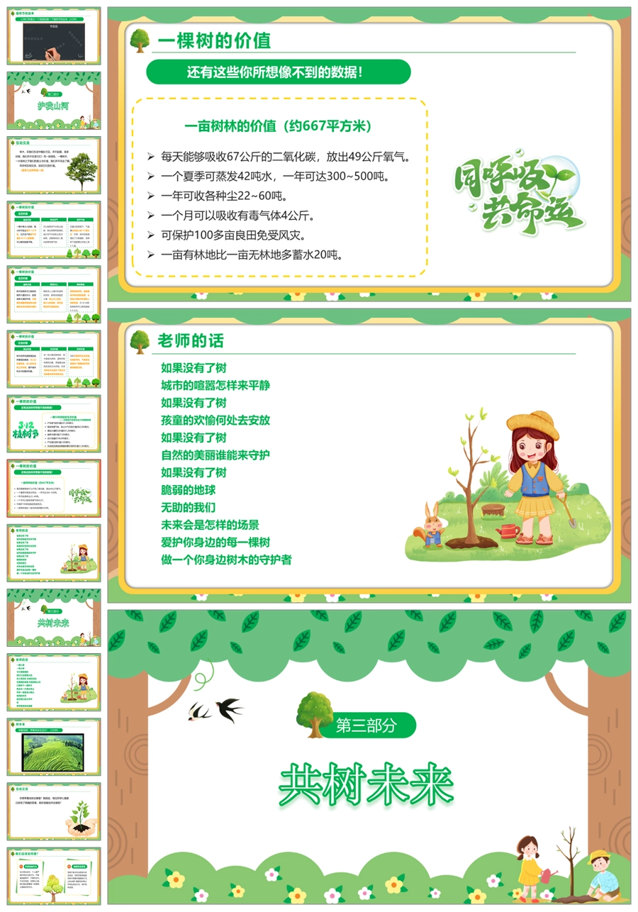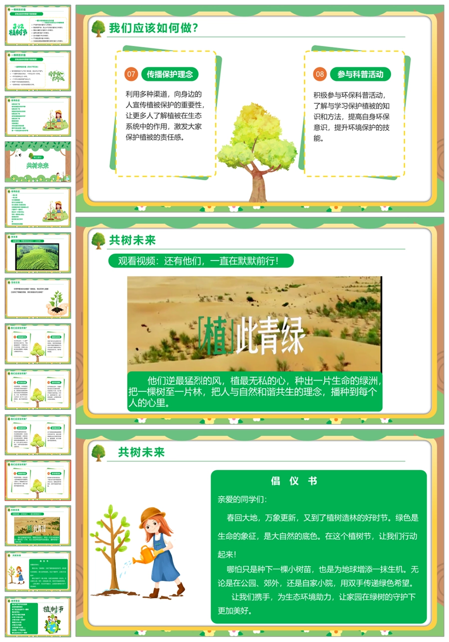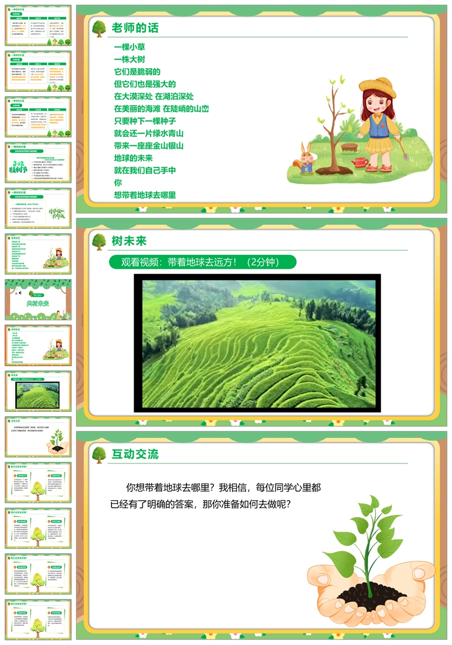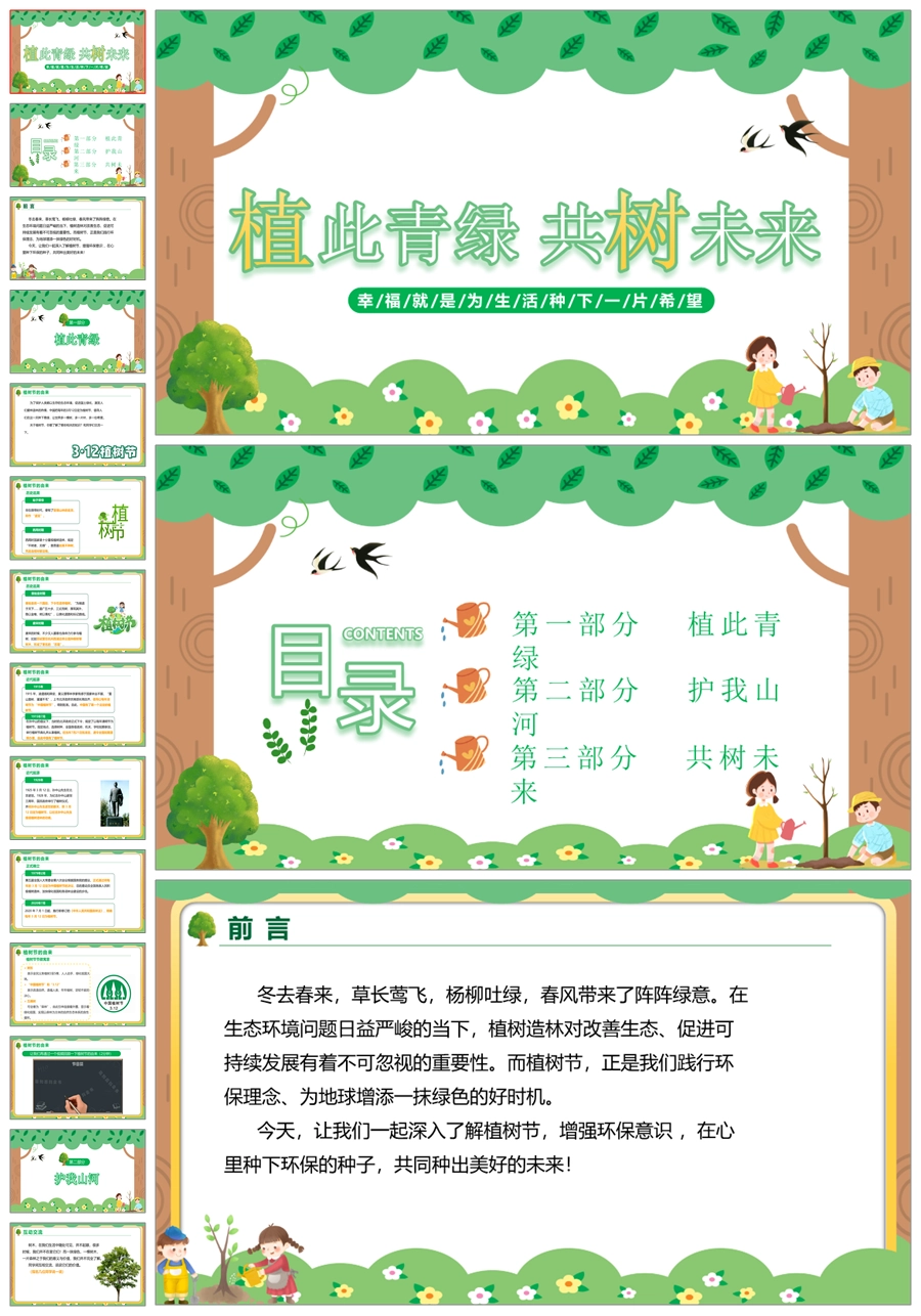 【5750】节日班会0312植树节班会《植此青绿共树未来》ppt课件+视频+教案