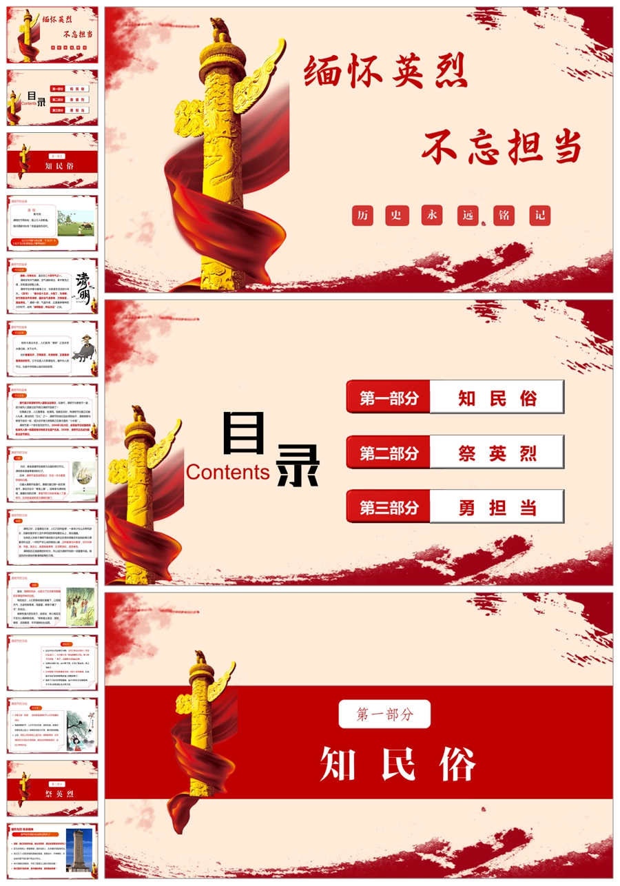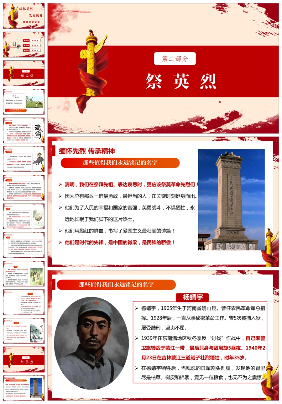 【5760】节日班会 0405清明节《缅怀英烈不忘担当》班会课件