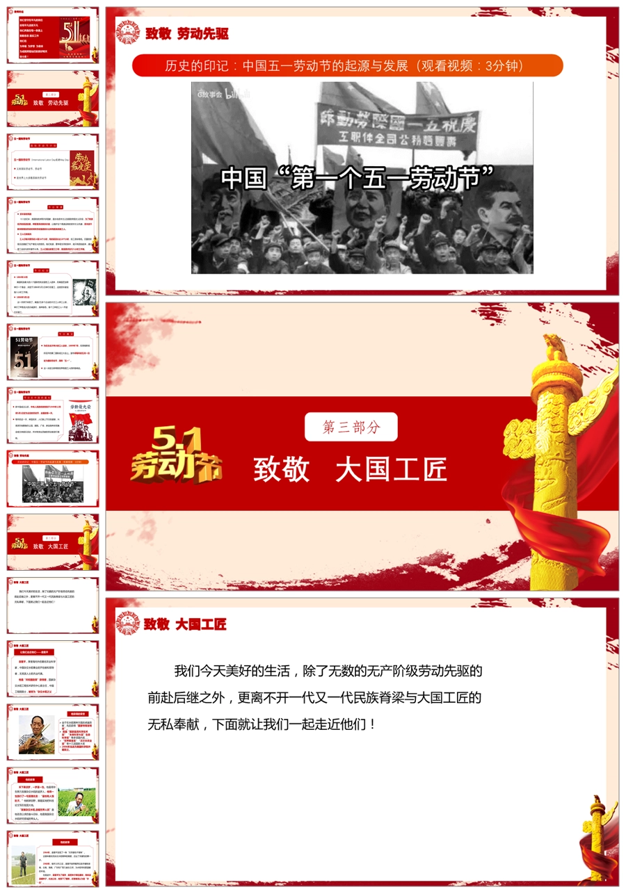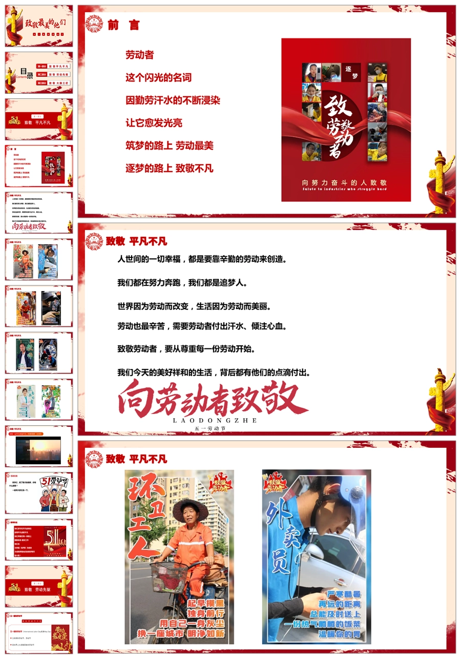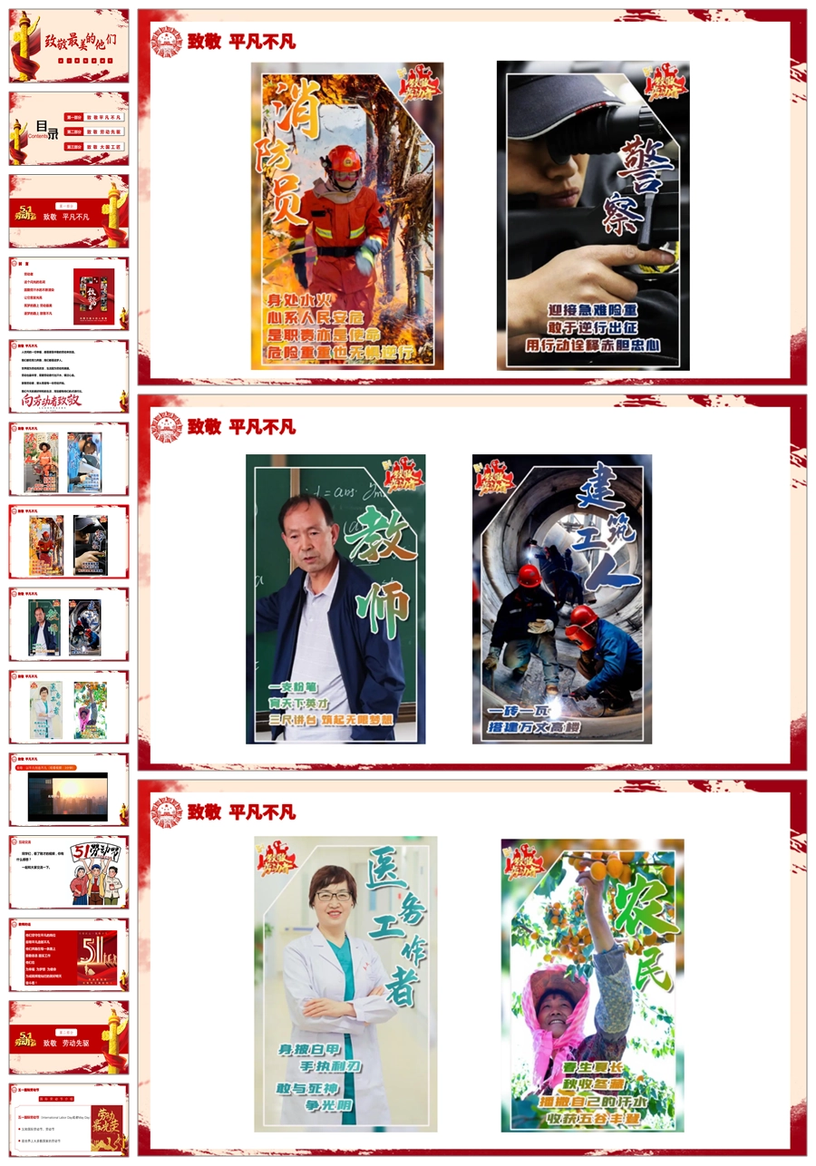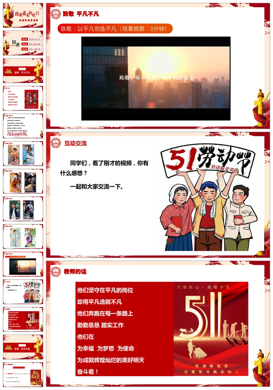 【5763】节日班会 0501劳动节《五一致敬最美的他们》课件ppt课件+视频