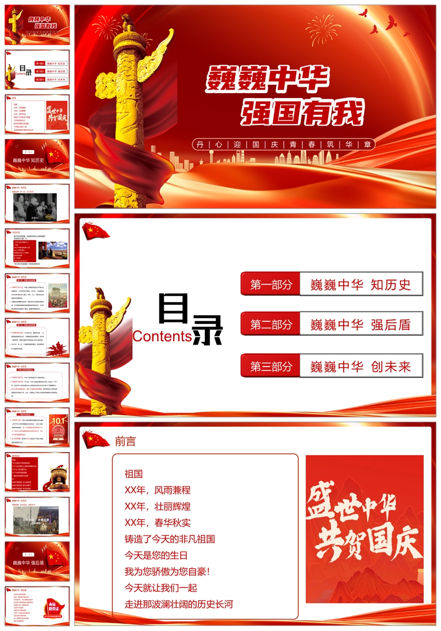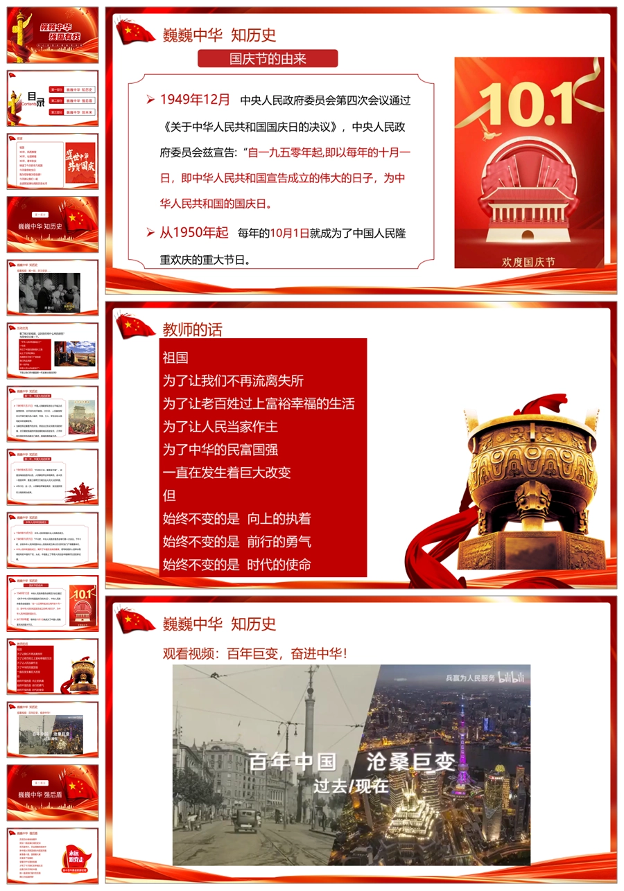 【5771】节日班会 1001国庆节《巍巍中华强国有我》ppt课件+视频